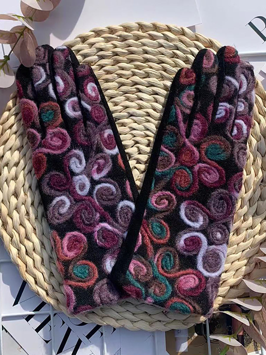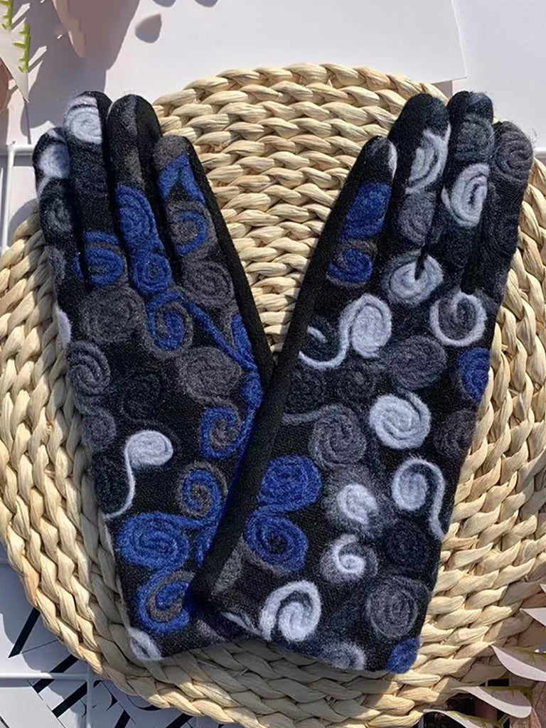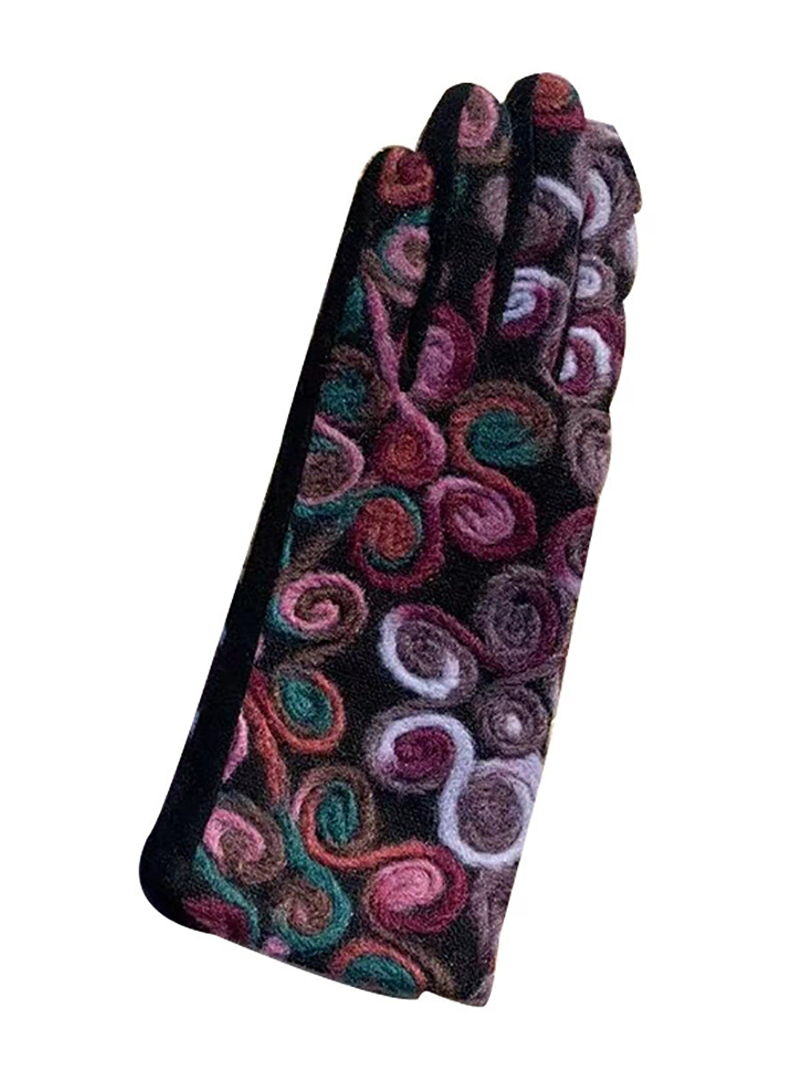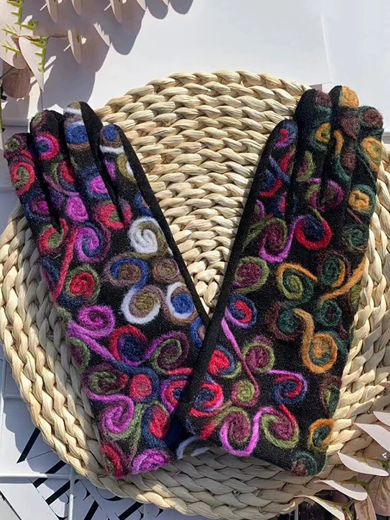 Dámské teplé cyklistické rukavice s retro výšivkou