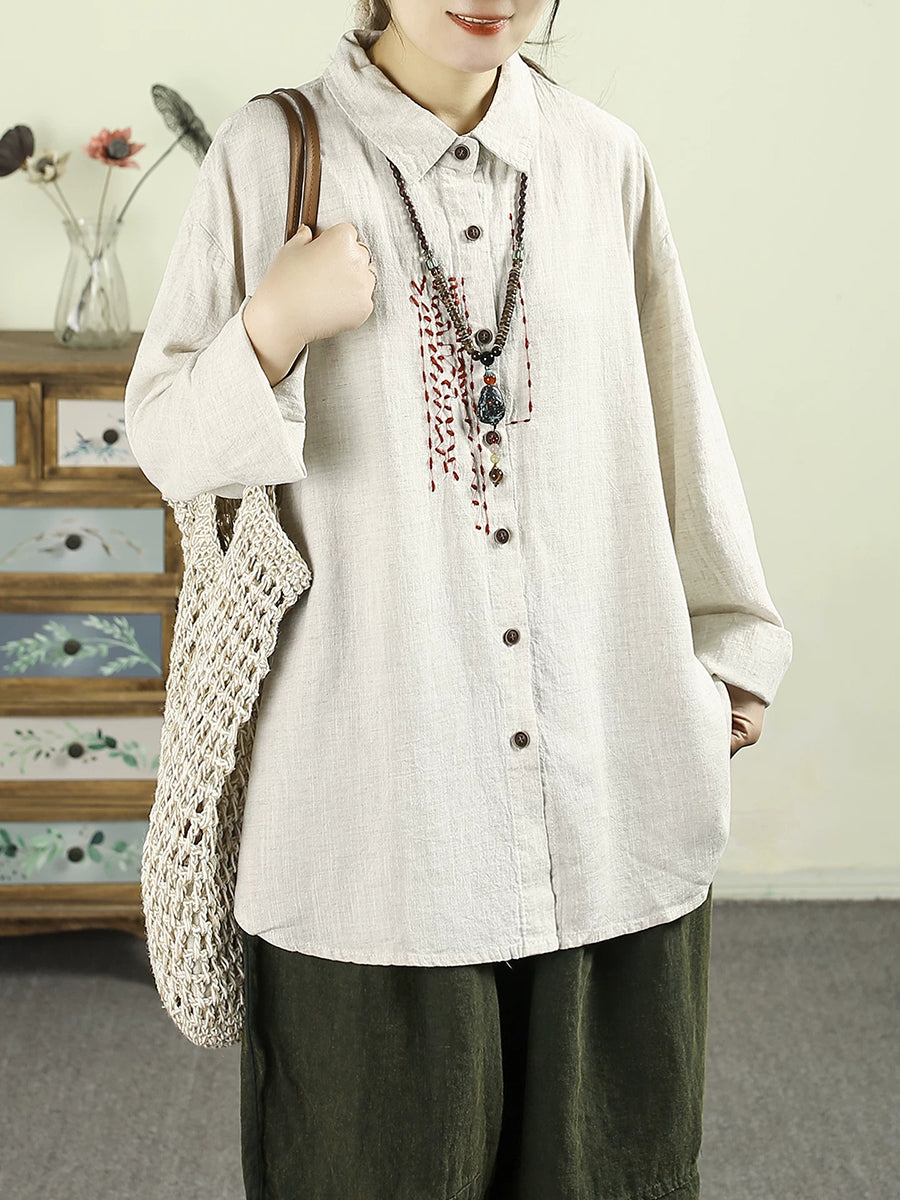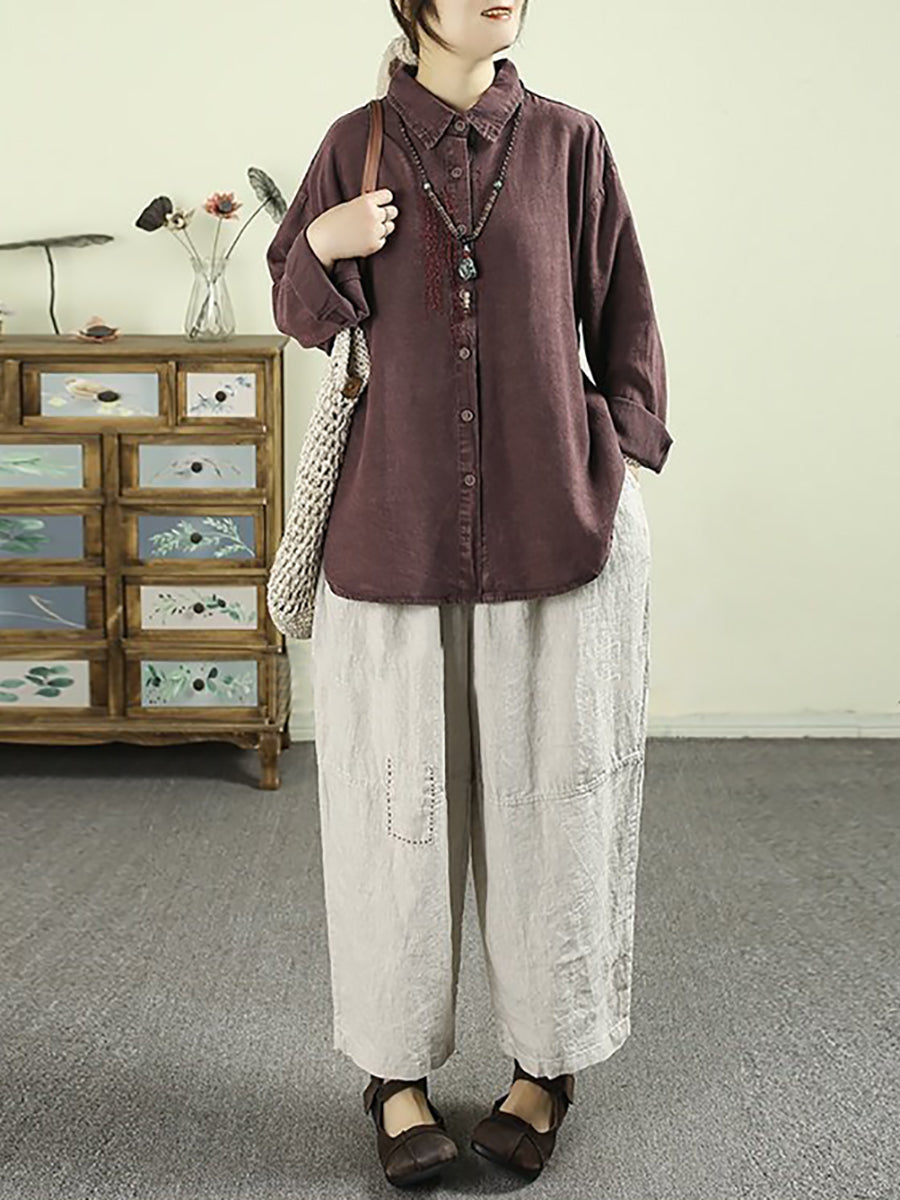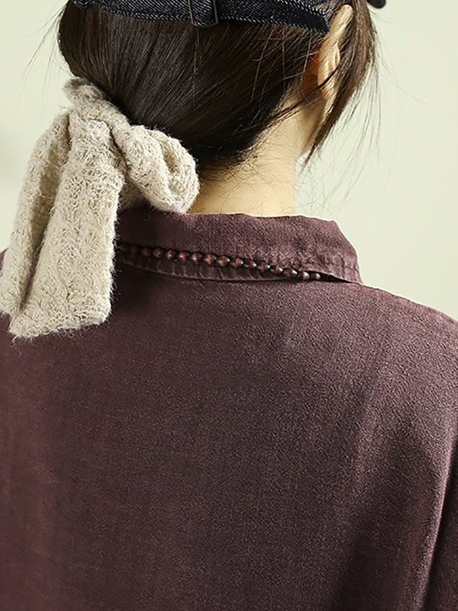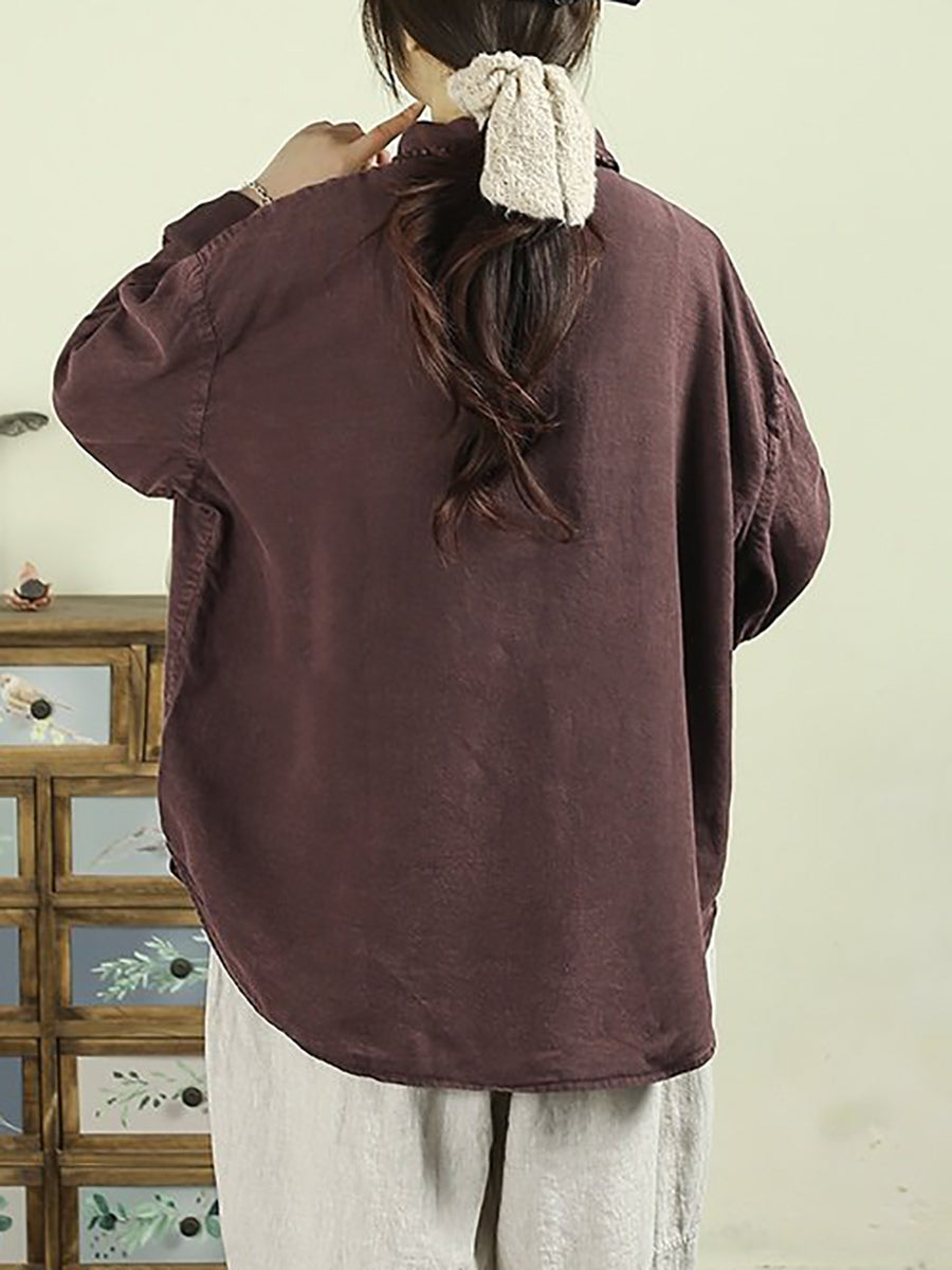 Dámská retro jarní košile s odkládacím límcem, 100% lněný vzor