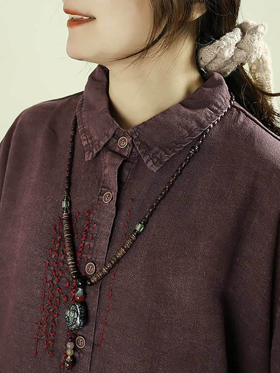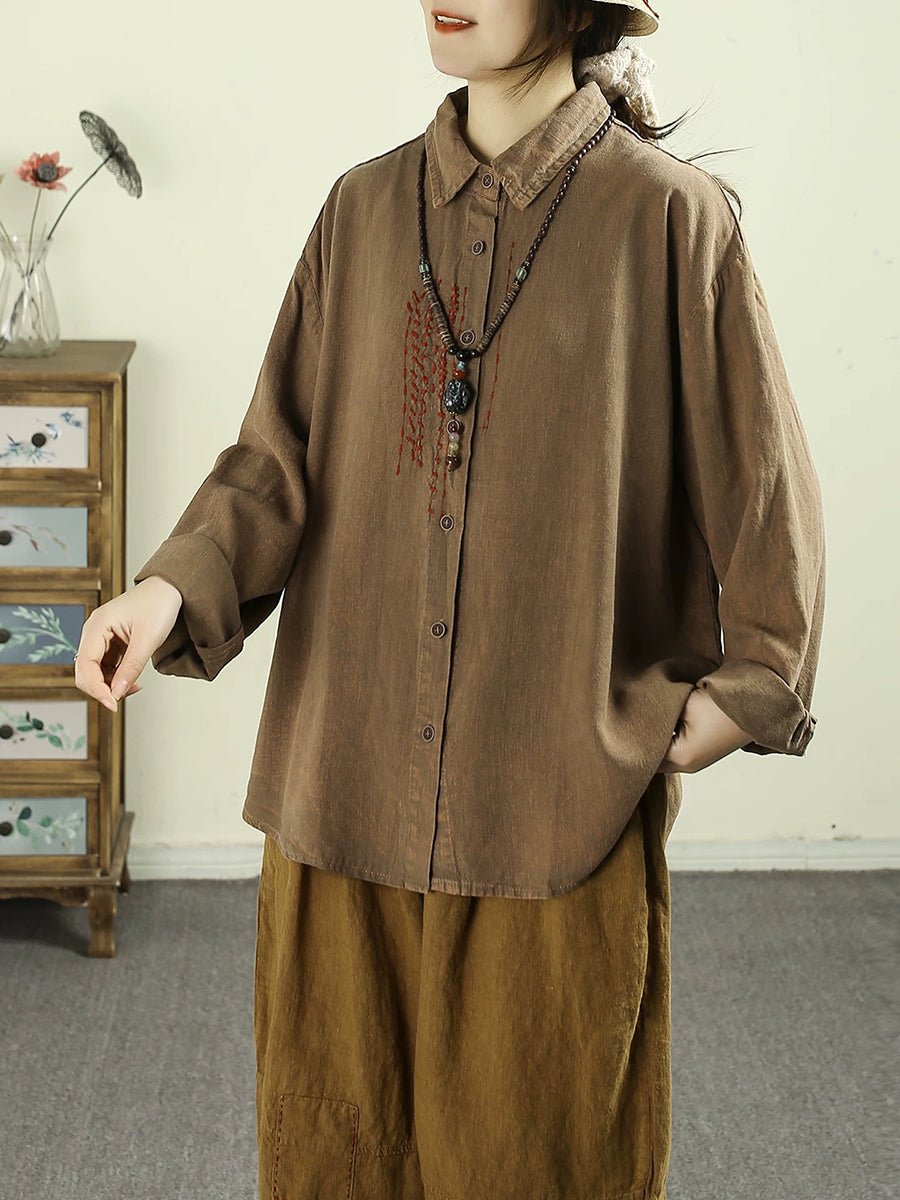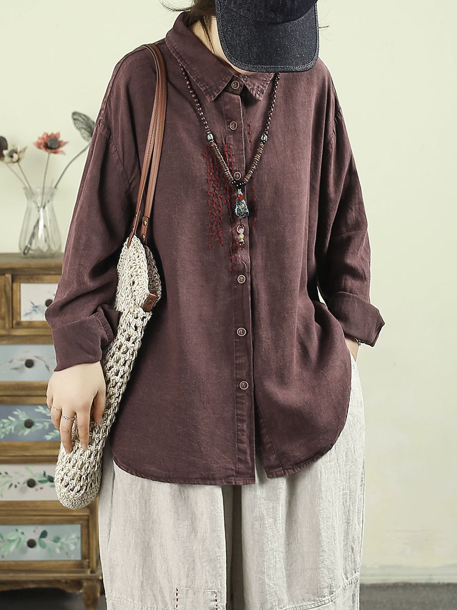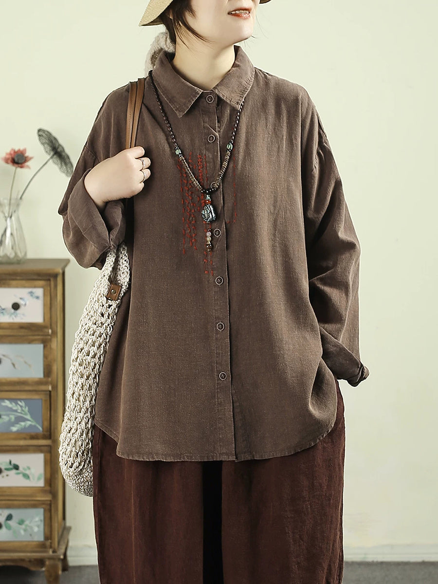Dámská retro jarní košile s odkládacím límcem, 100% lněný vzor