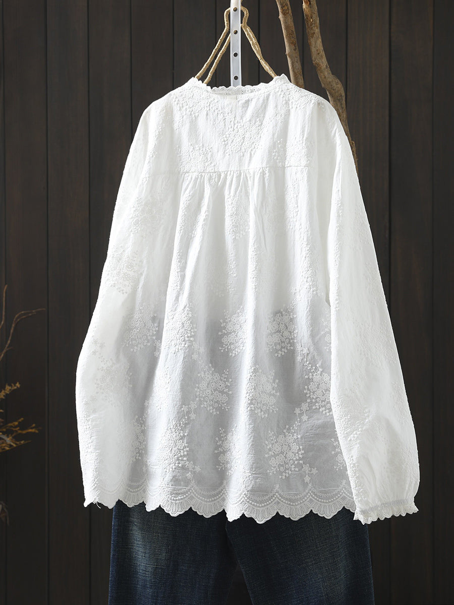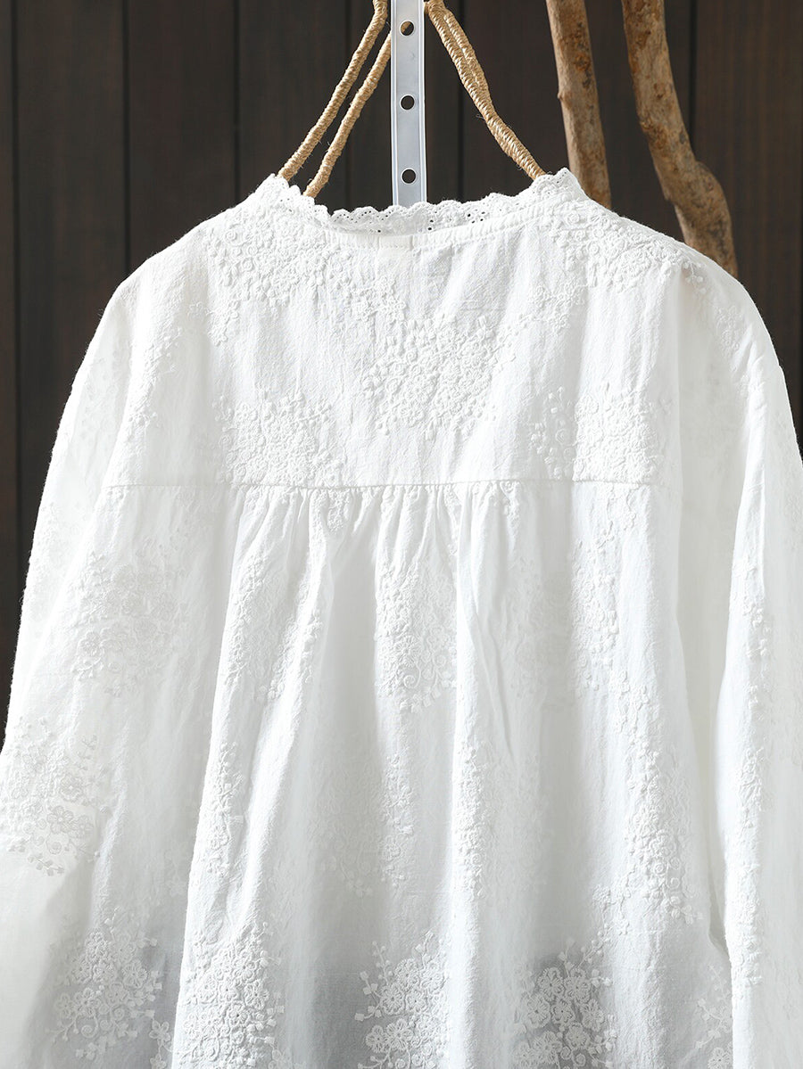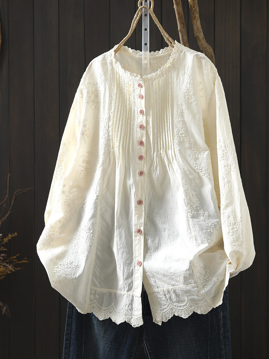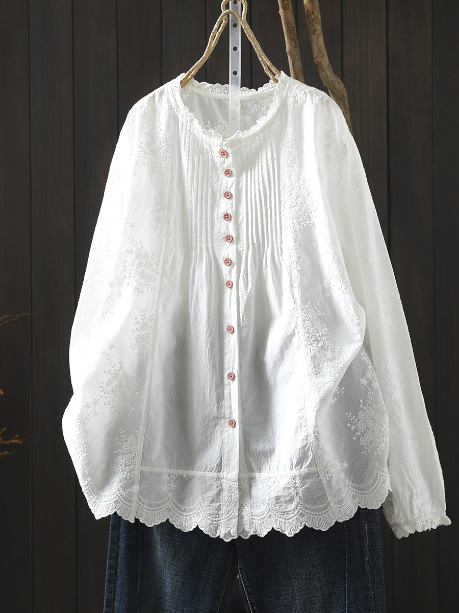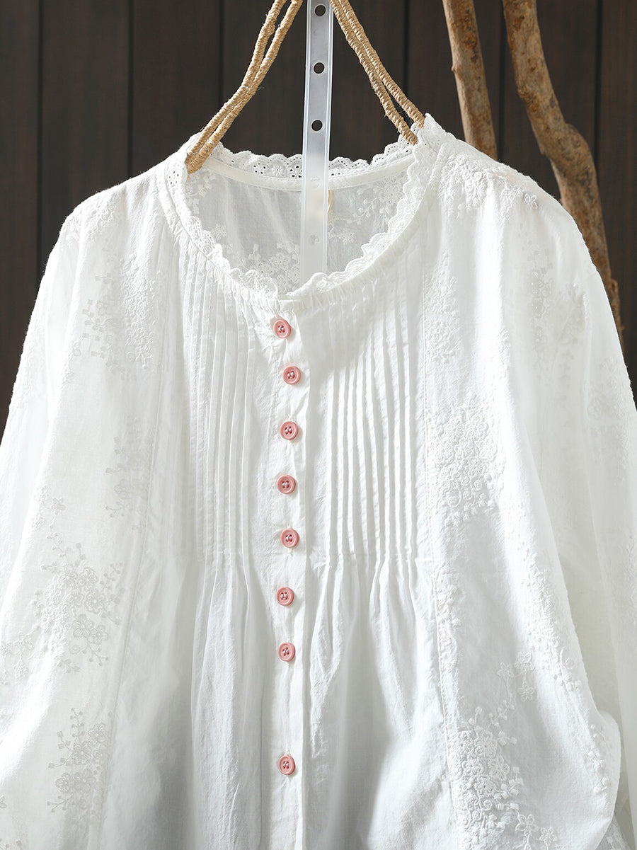Dámská jarní umělecká výšivka, nařasená košile ze 100% bavlny
