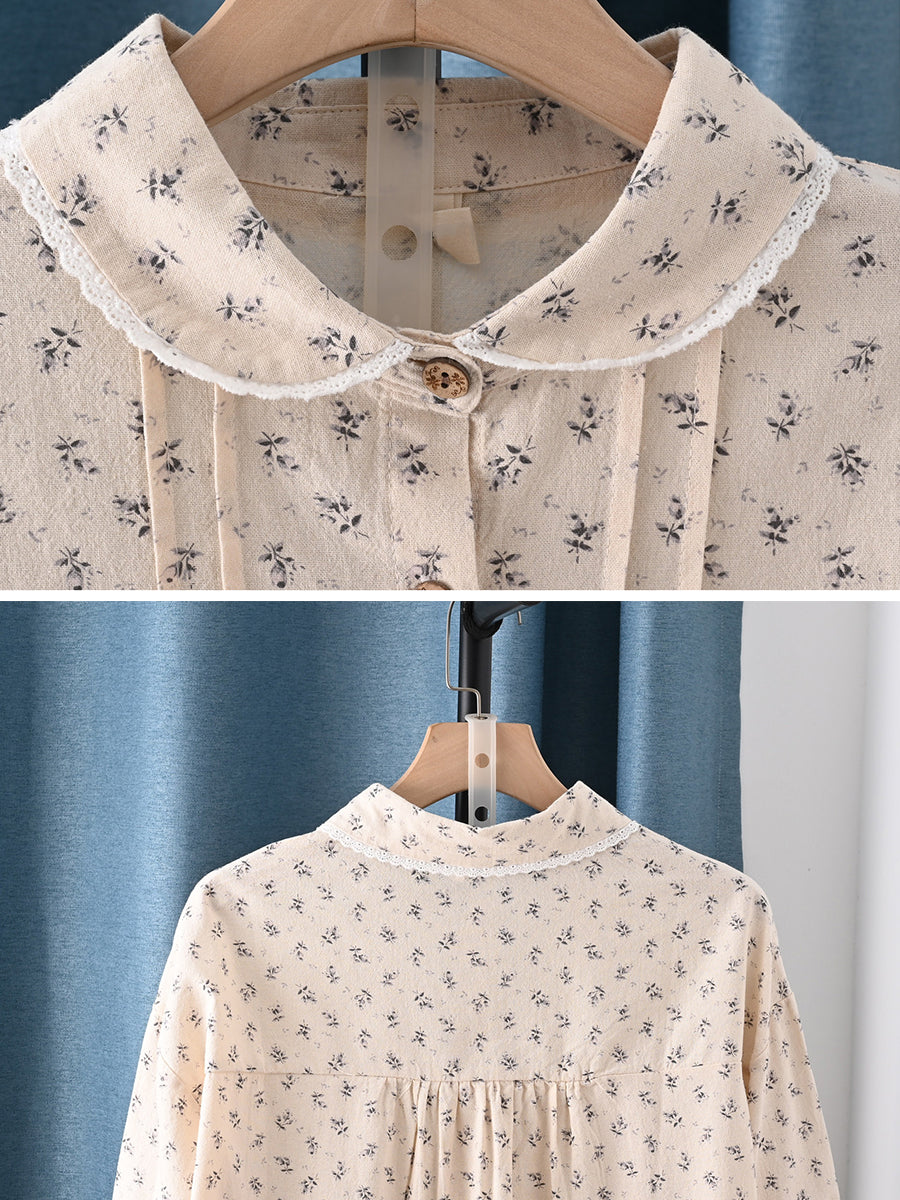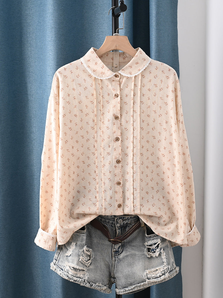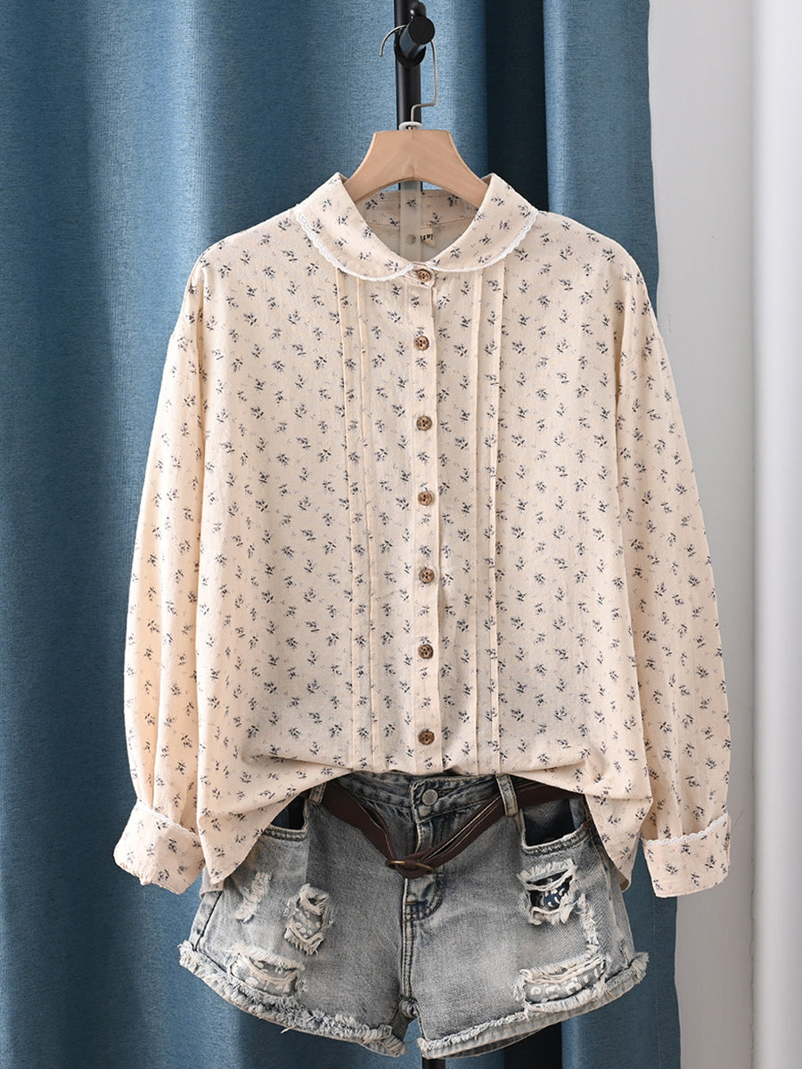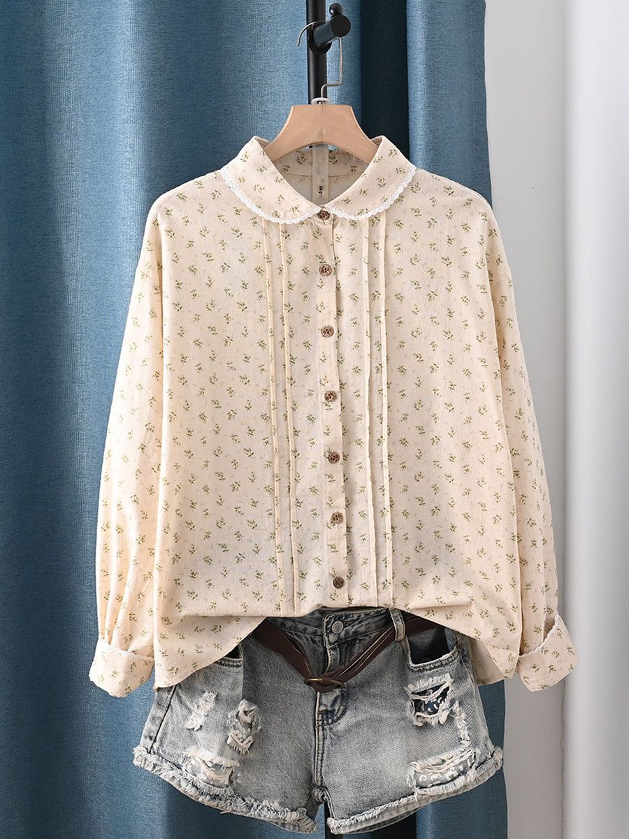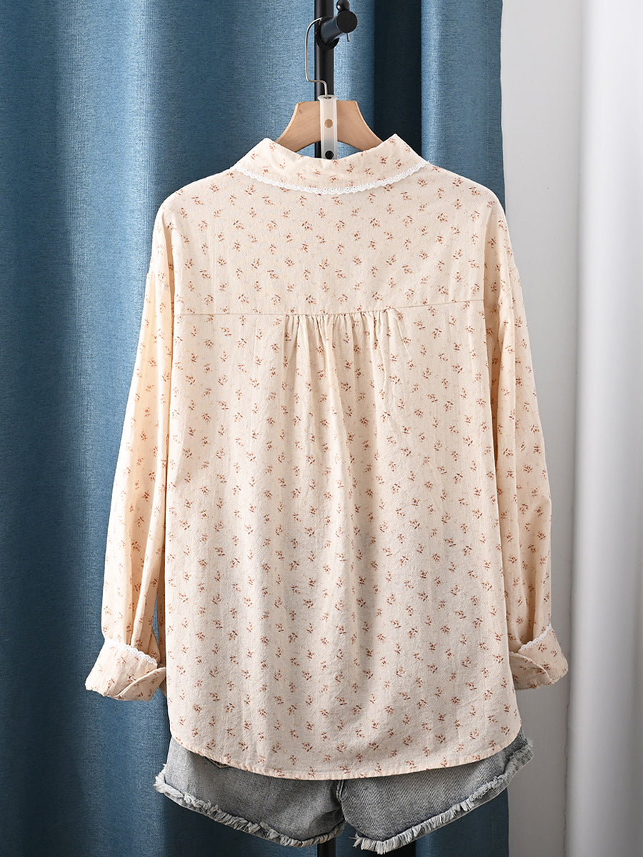 Dámská jarní umělecká květinová košile ze 100% bavlny s odkládacím límcem