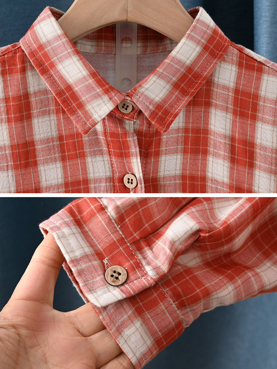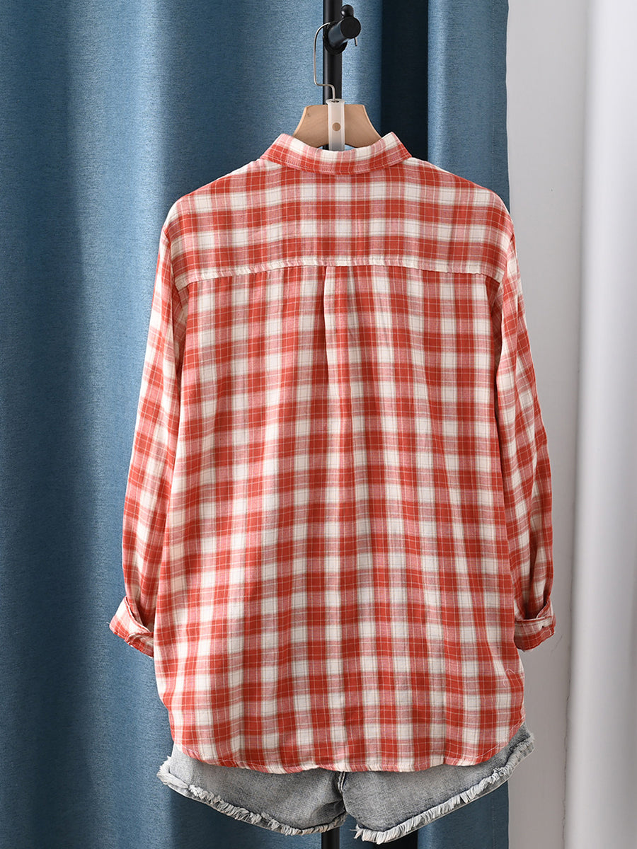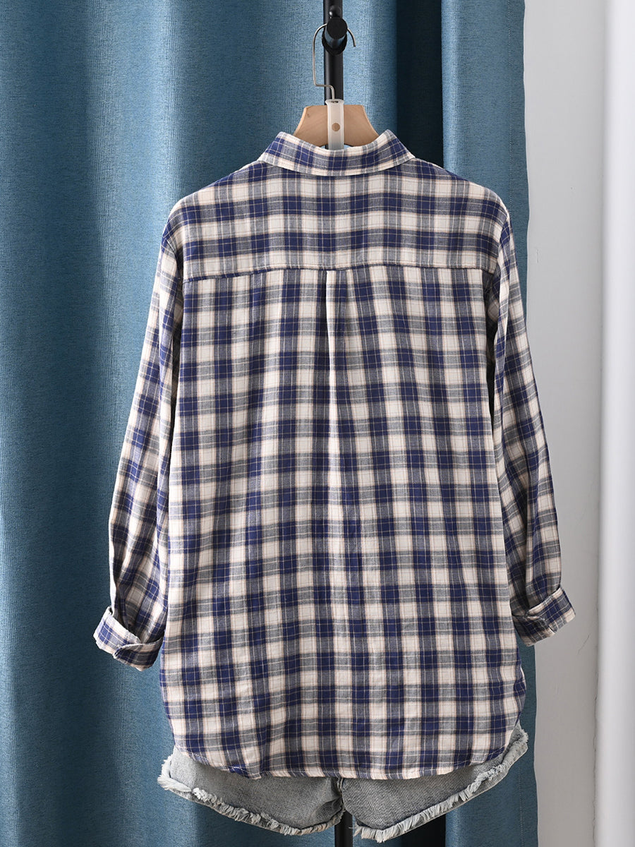 Dámská jarní umělecká kostkovaná košile s odkládacím límcem, 100% bavlna