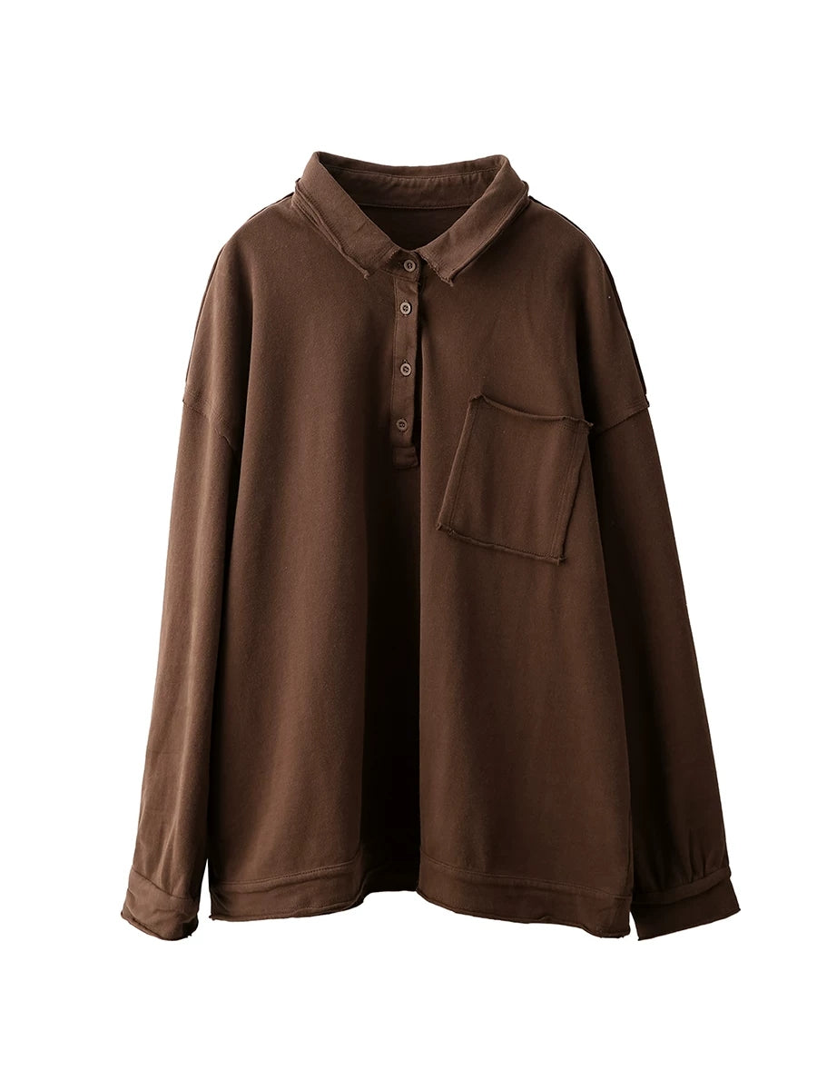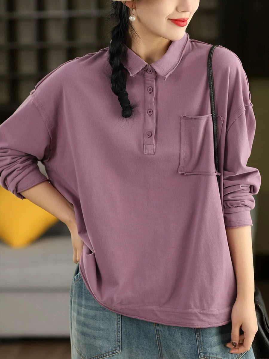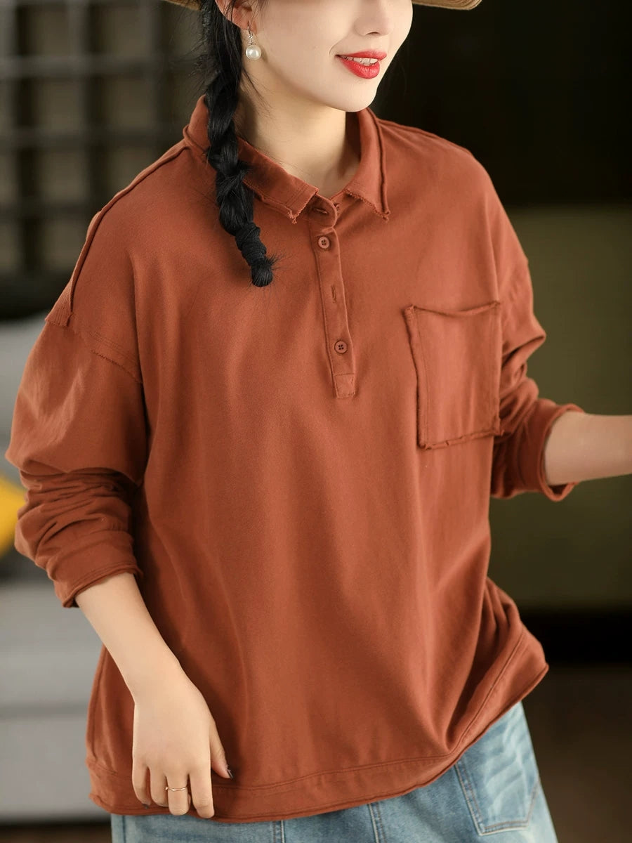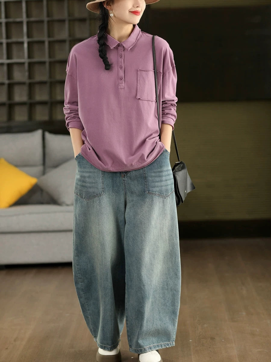 Dámská jarní umělecká čistě barevná bavlněná halenka s odkládacím límcem