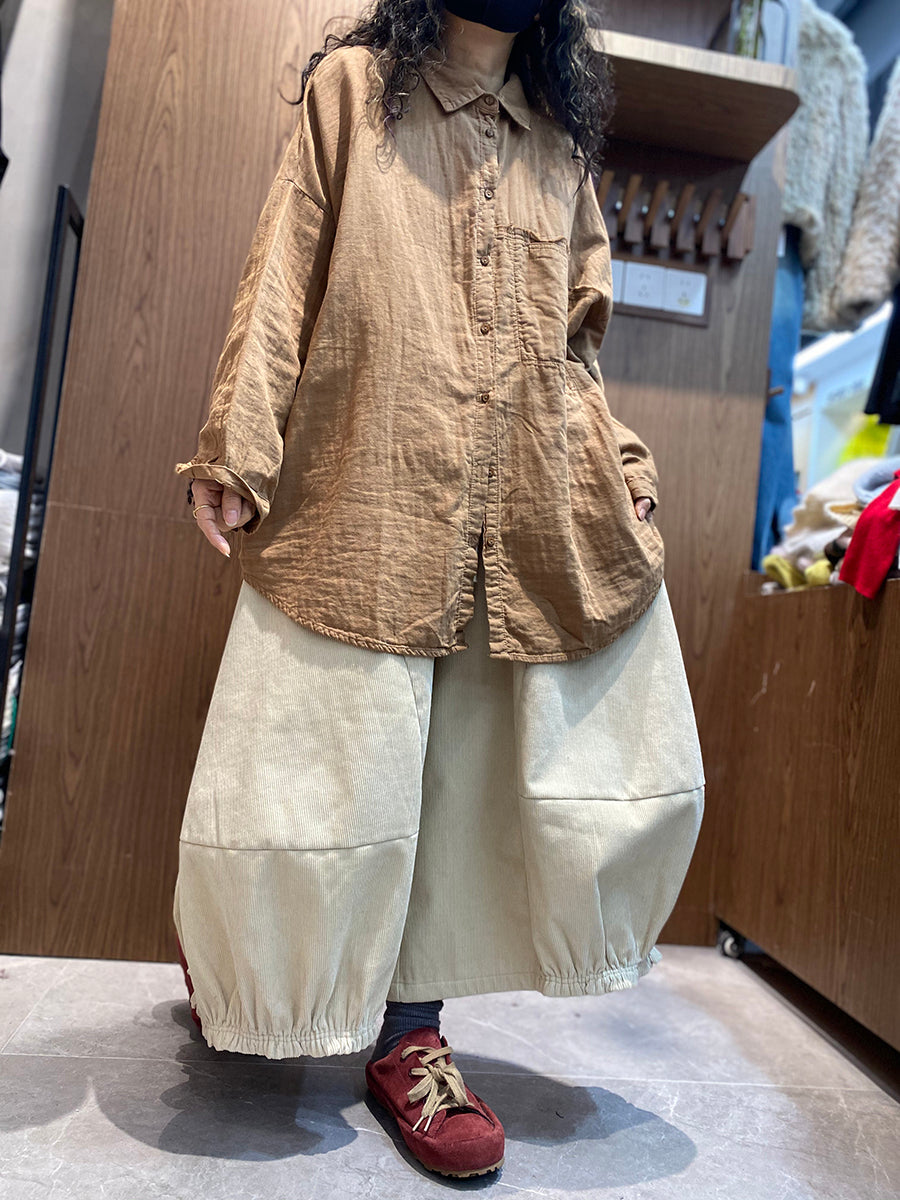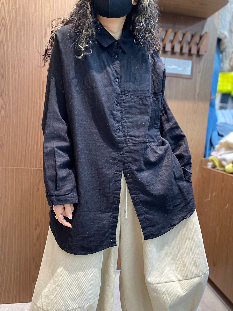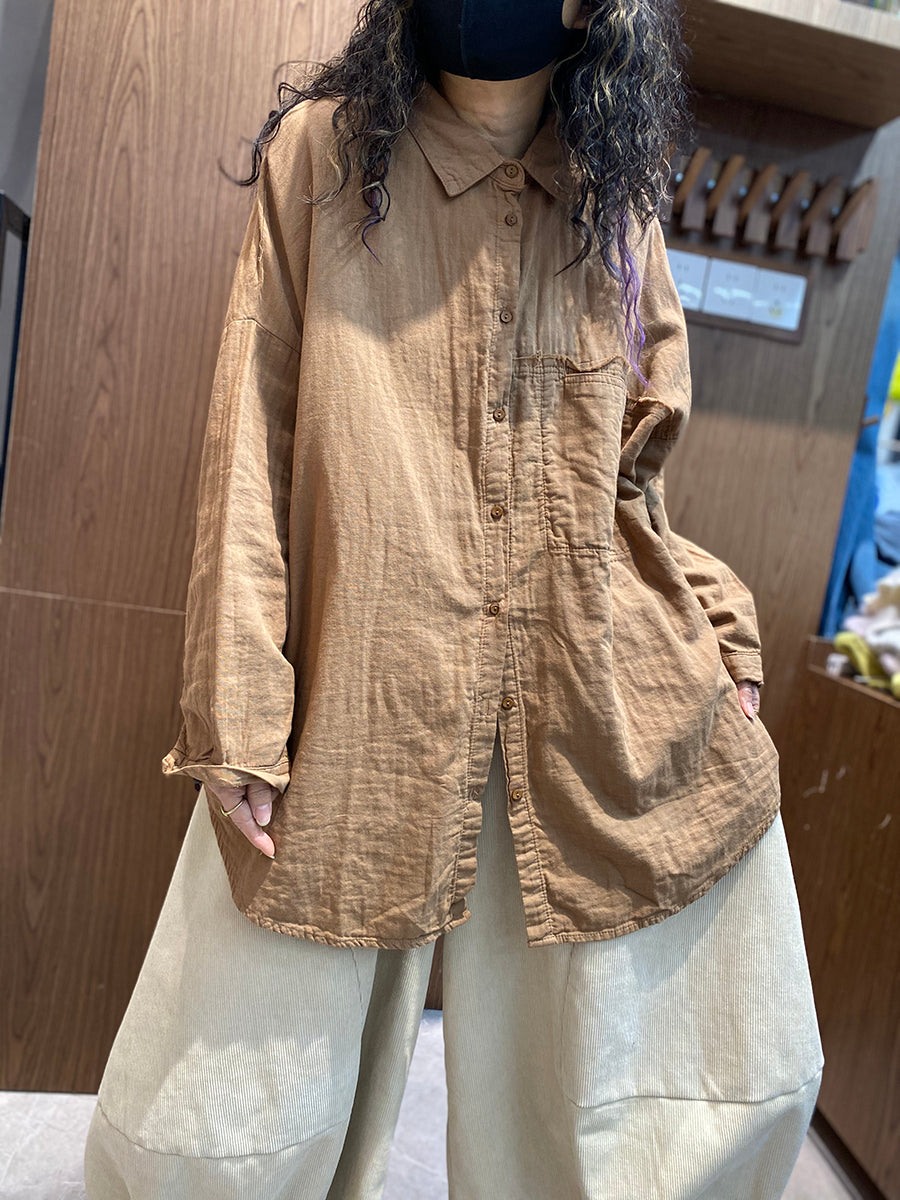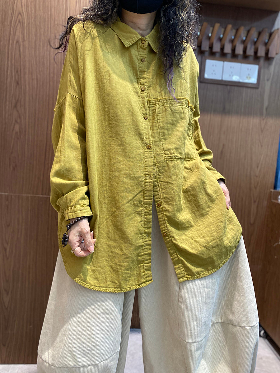 Dámská jarní umělecká košile v čistých barvách s odkládacím límcem