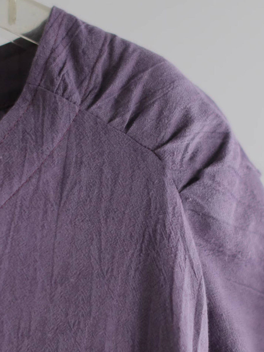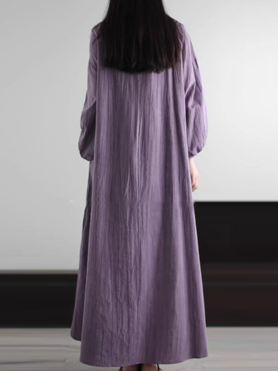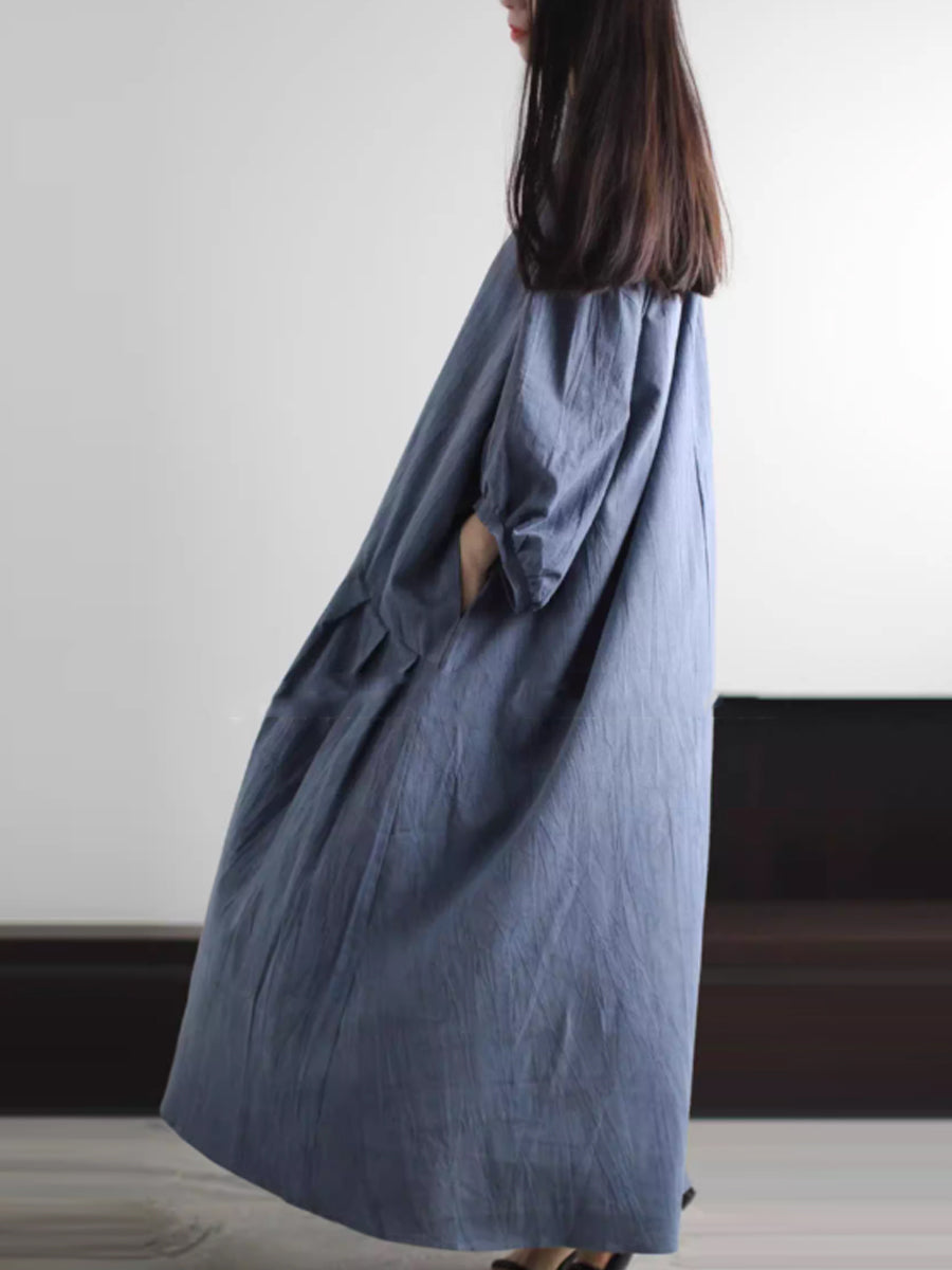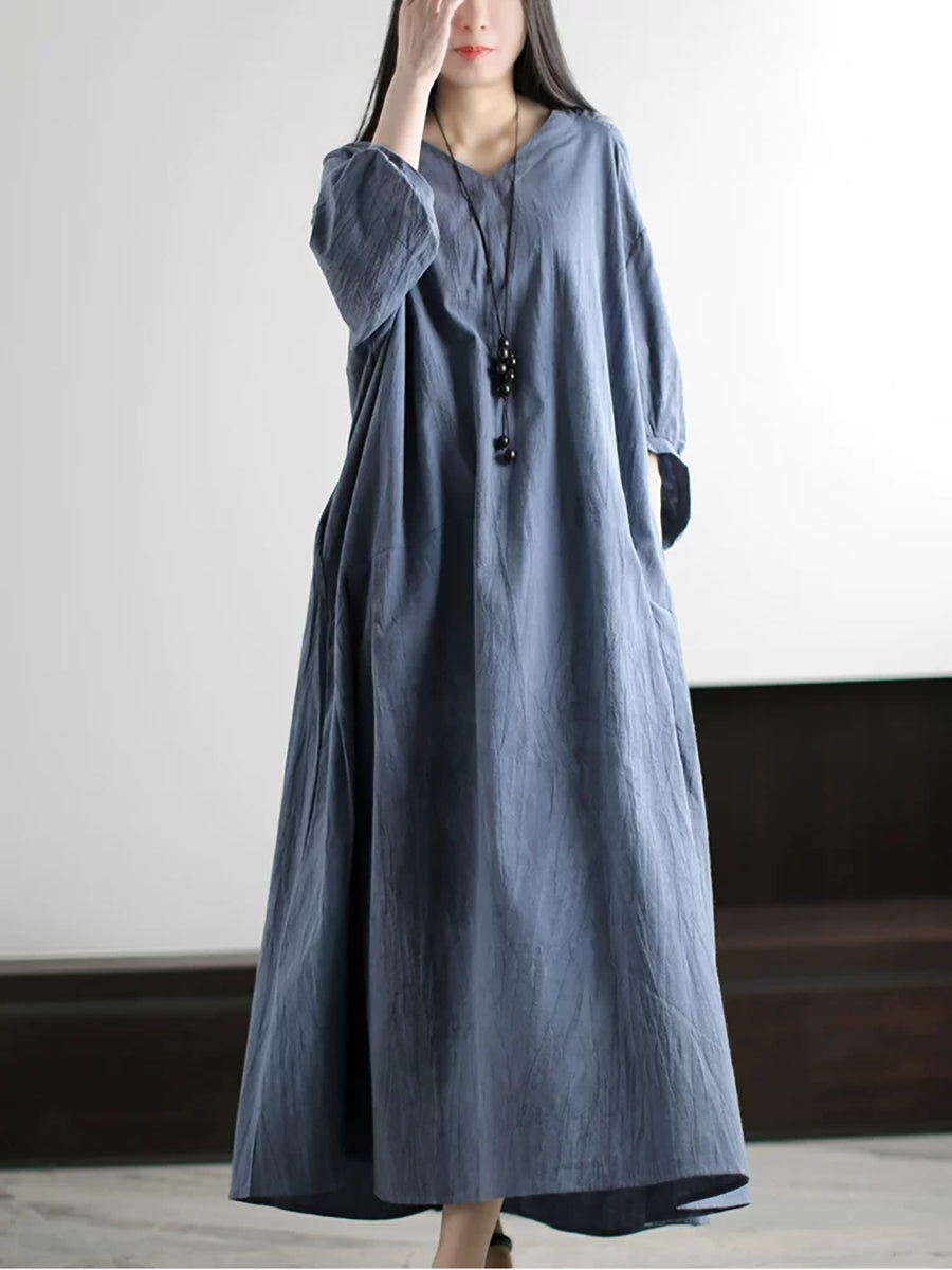 Dámské jarní umělecké čisté barevné lněné šaty s výstřihem do V