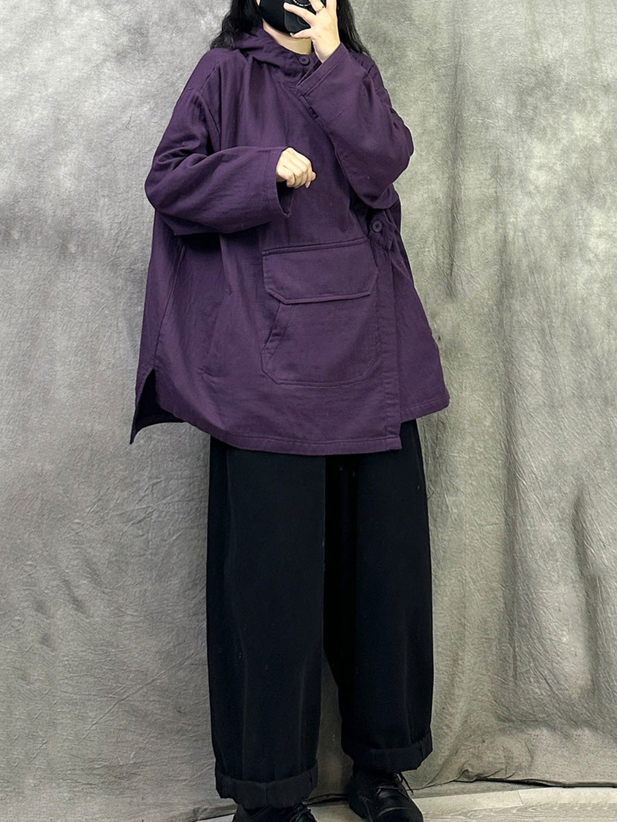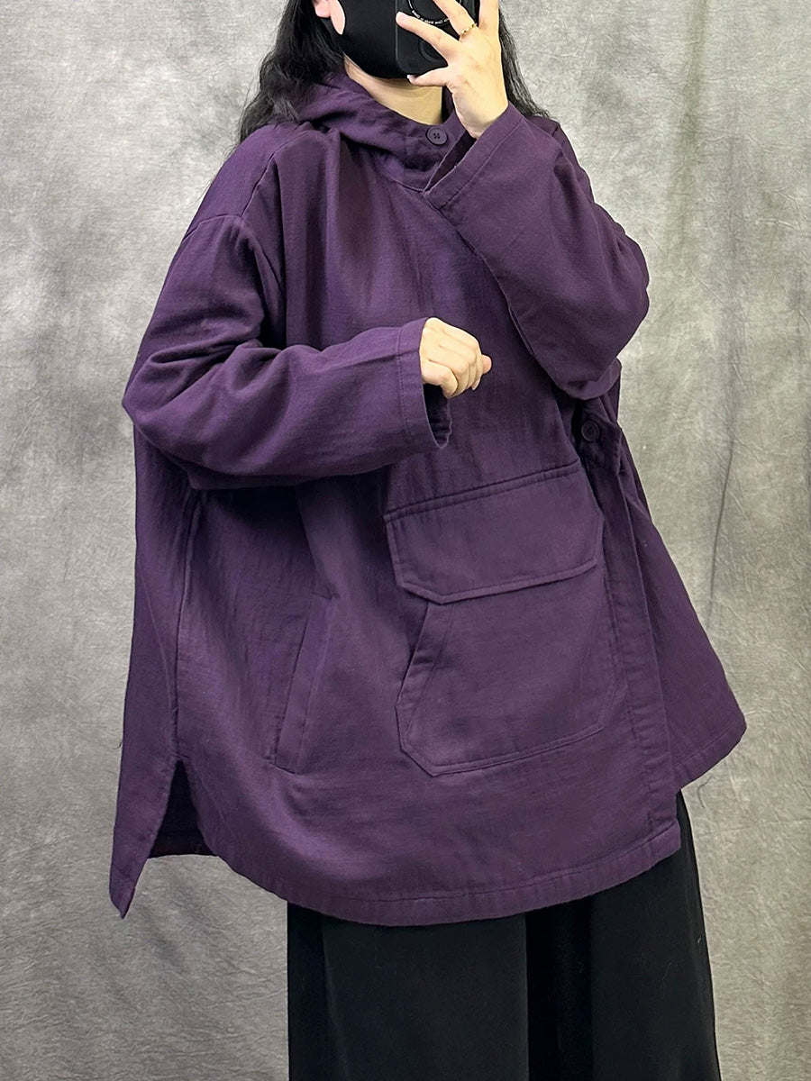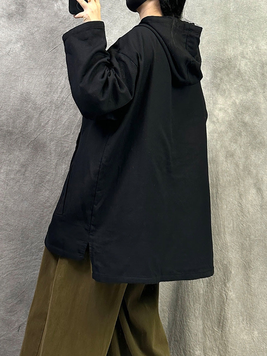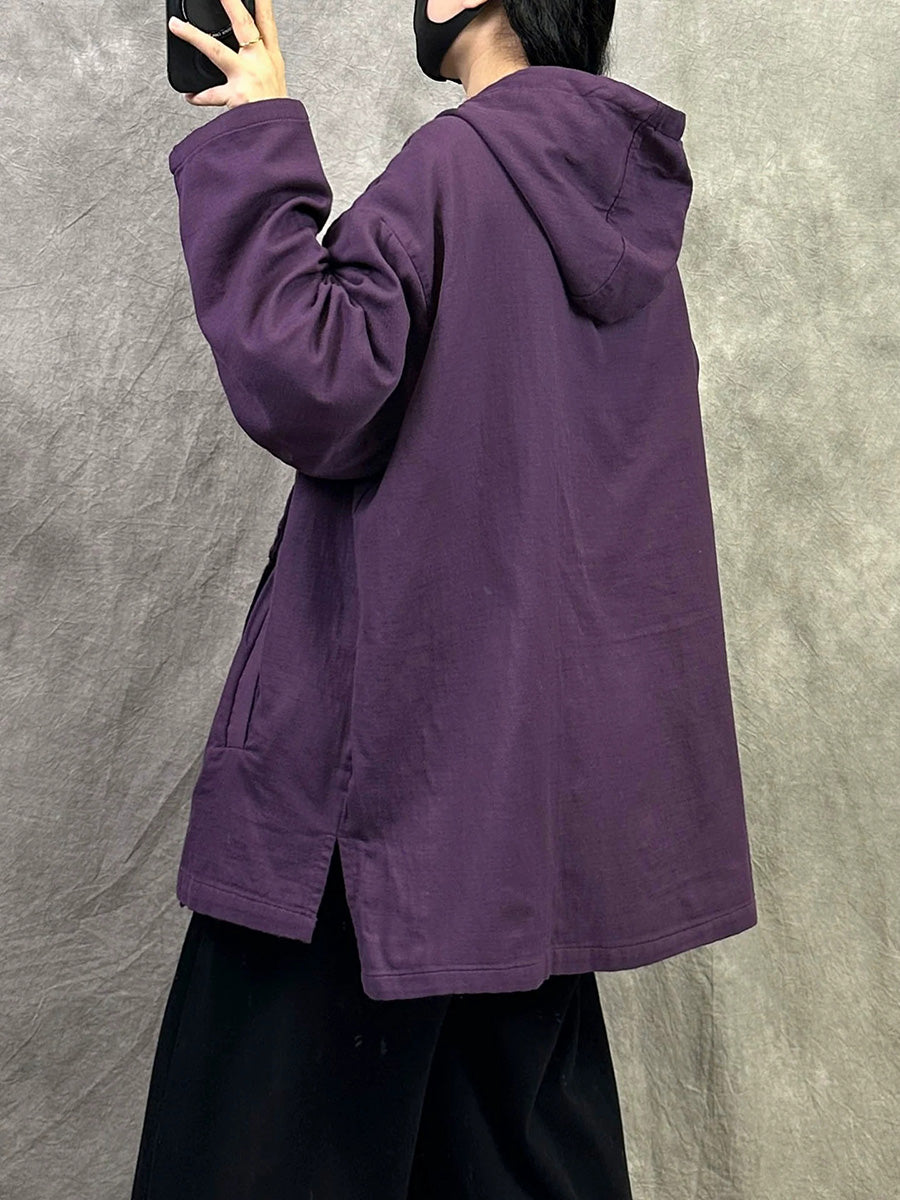 Dámská jarní ležérní bavlněná mikina s kapucí z čisté barvy