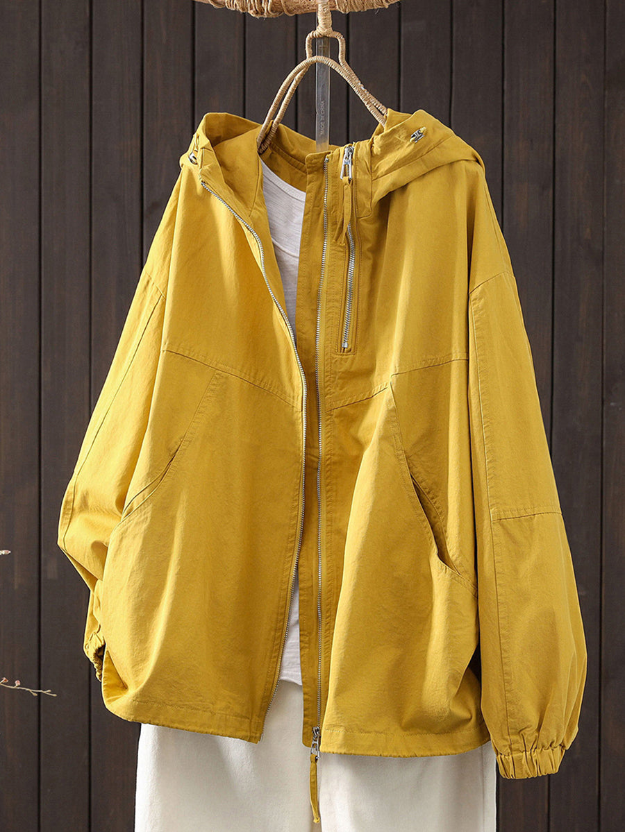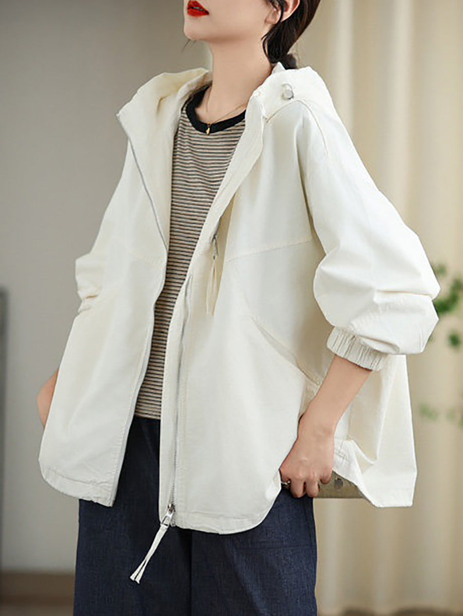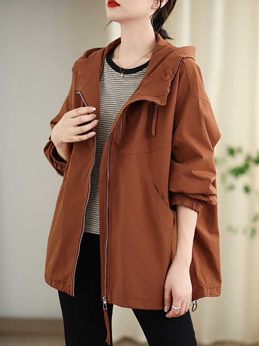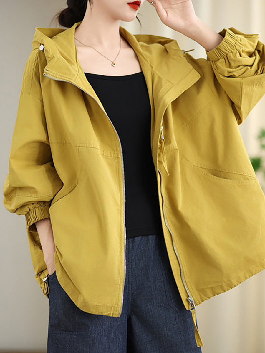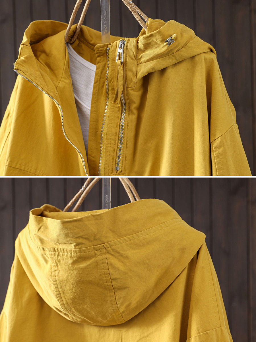 Dámský jarní ležérní čistě barevný kabát s kapucí ze 100% bavlny
