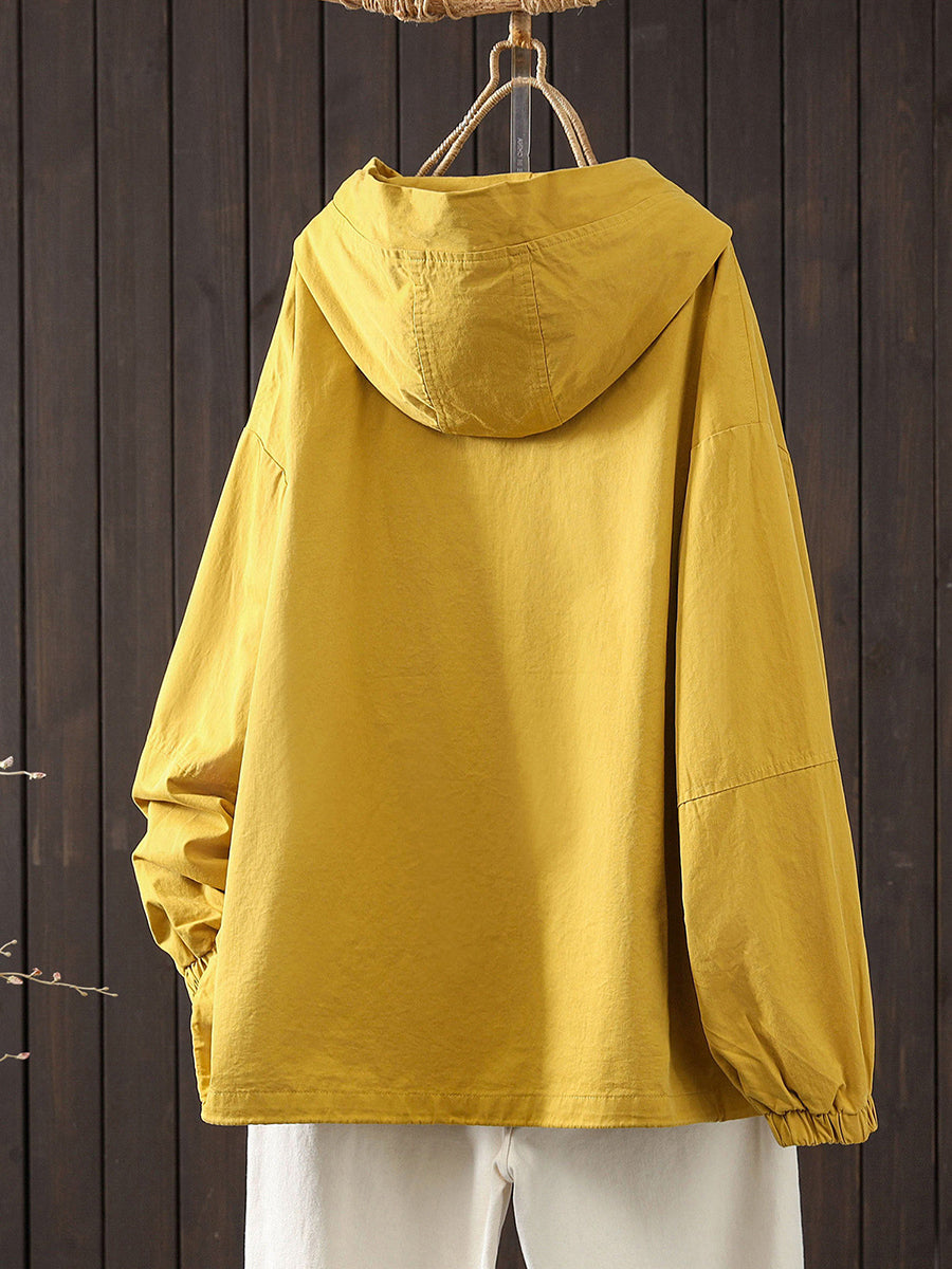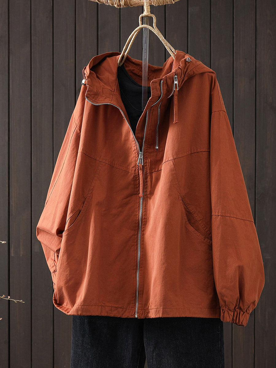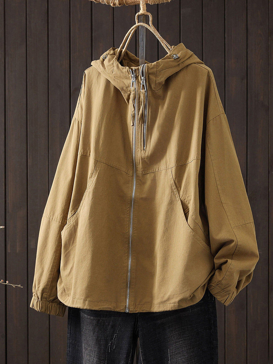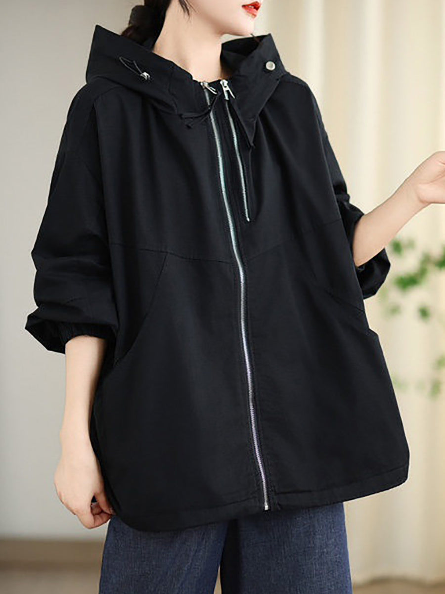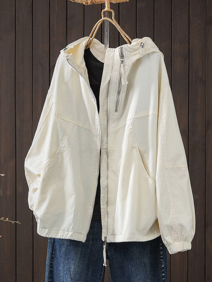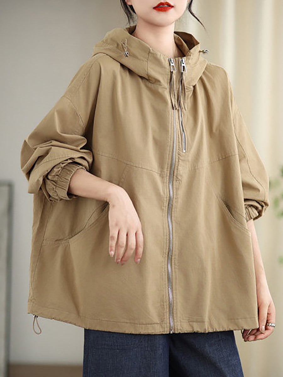 Dámský jarní ležérní čistě barevný kabát s kapucí ze 100% bavlny