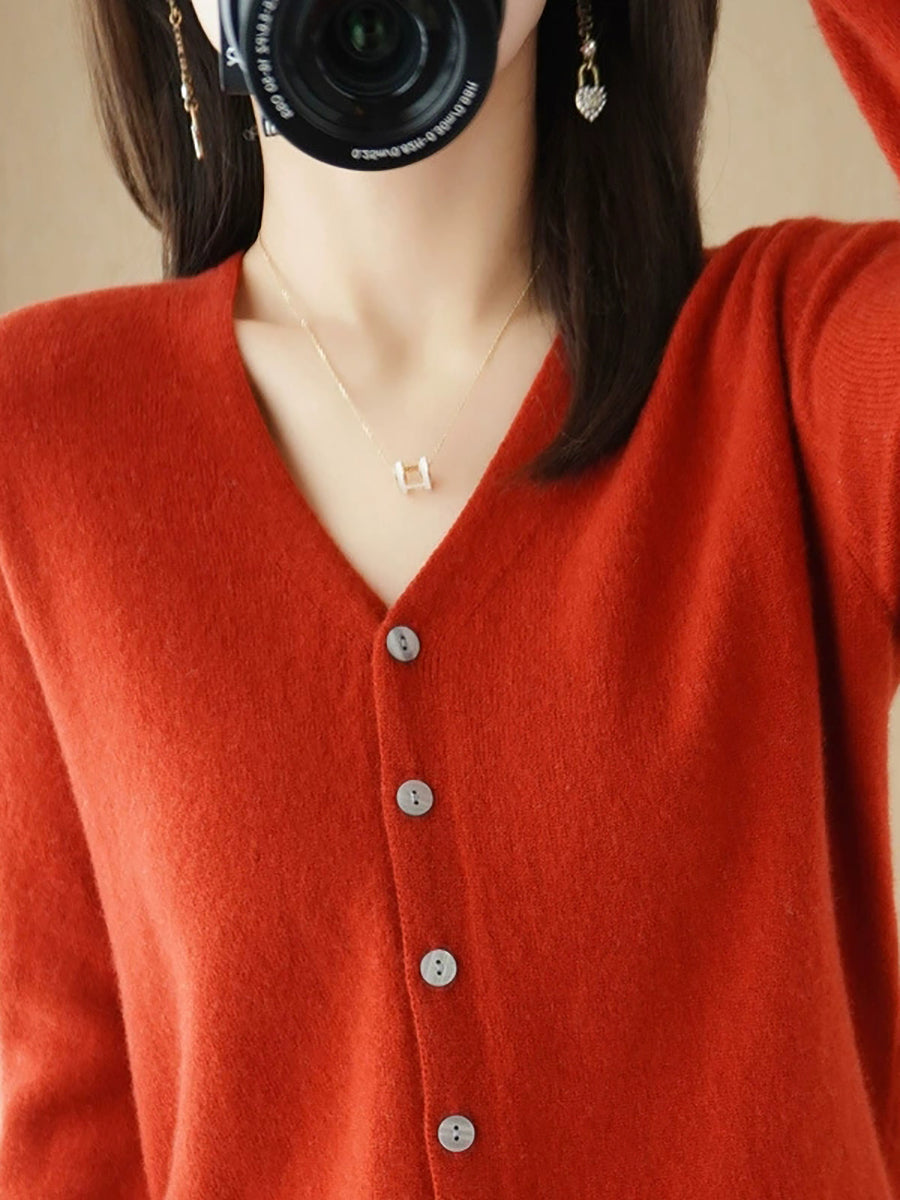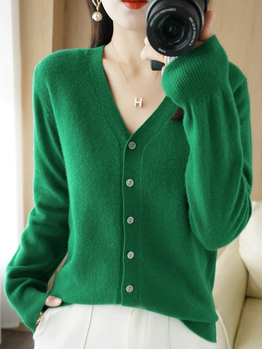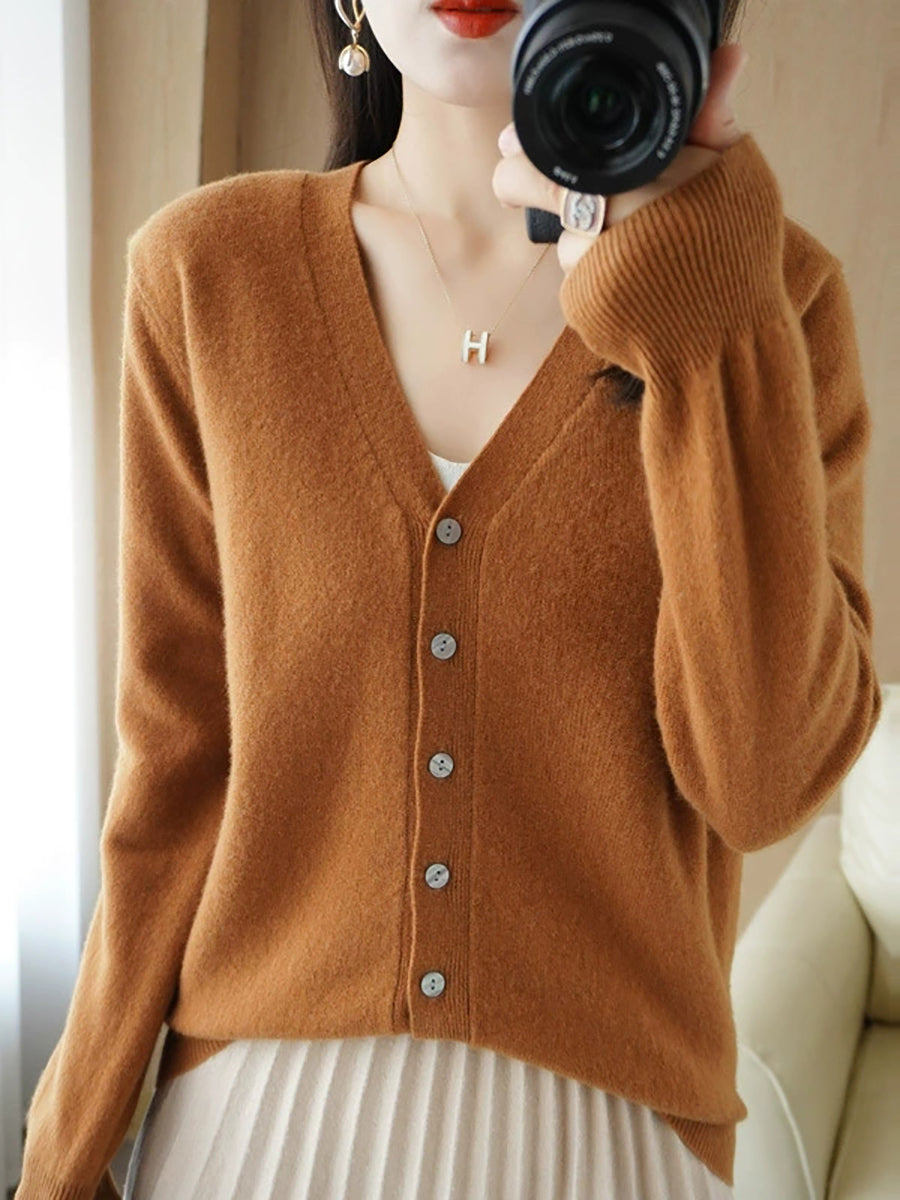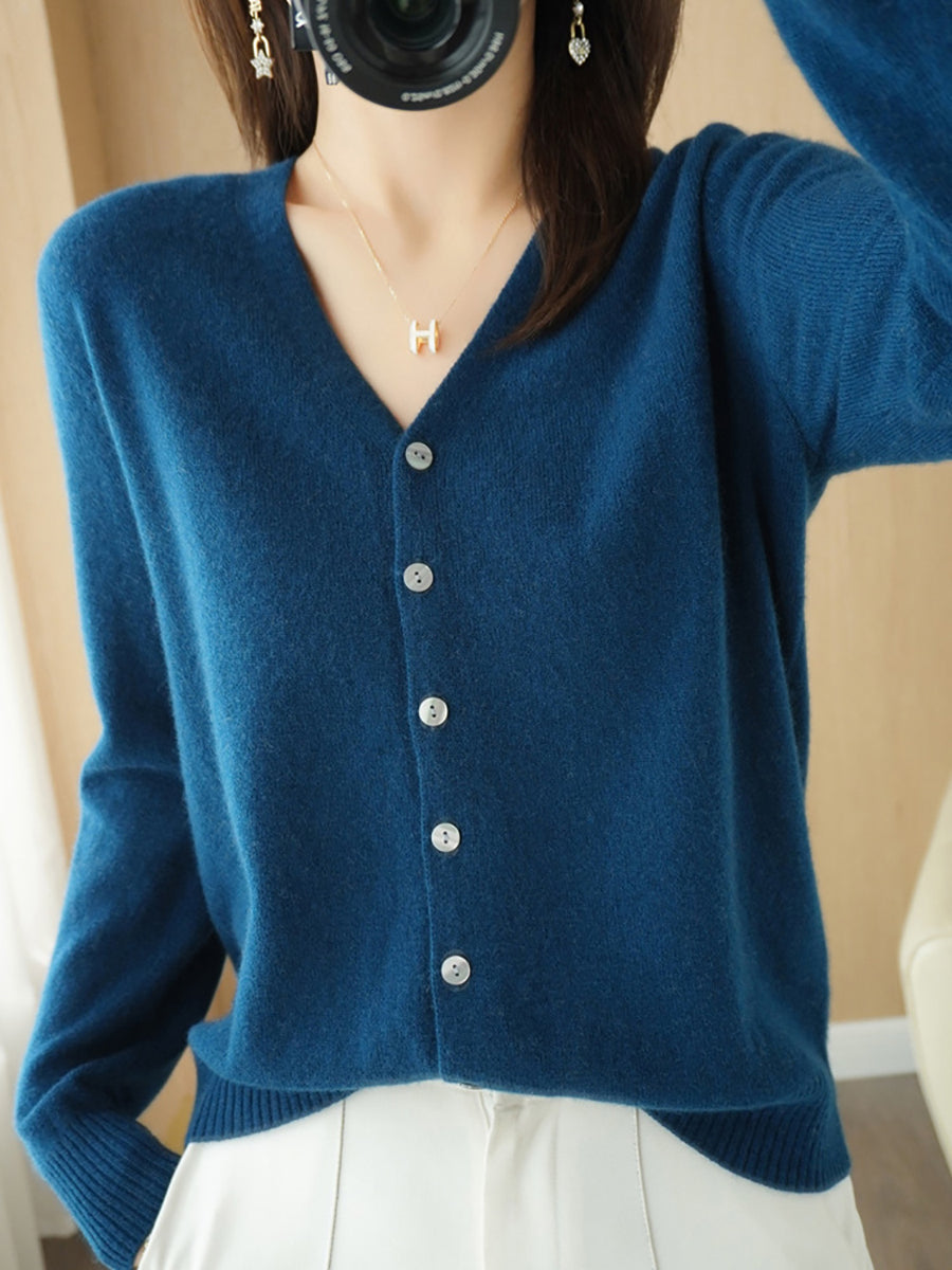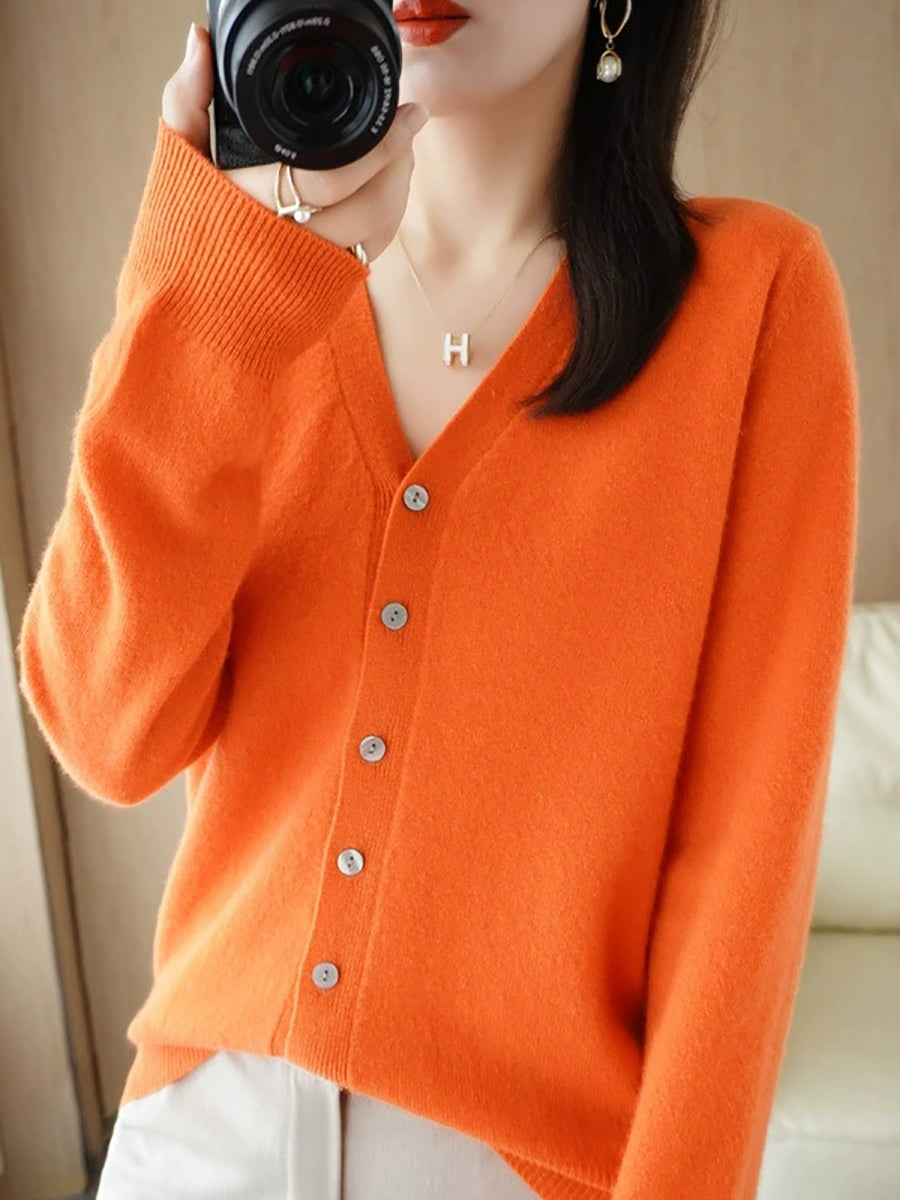 Dámský jarní ležérní čistě barevný svetr s výstřihem do V