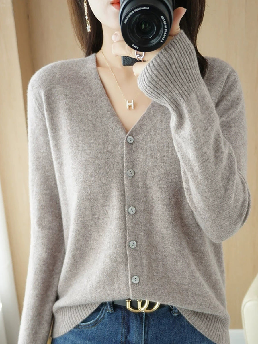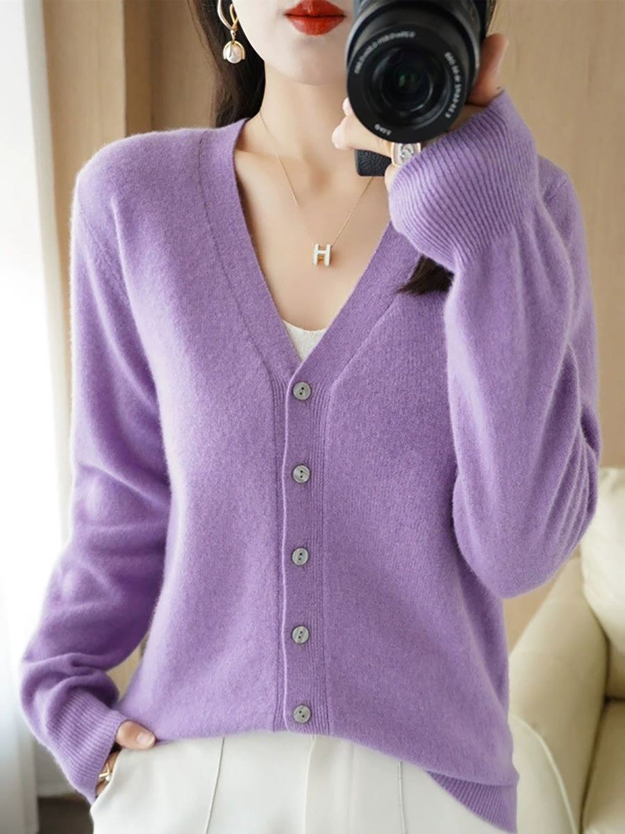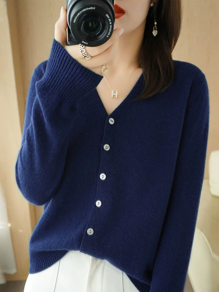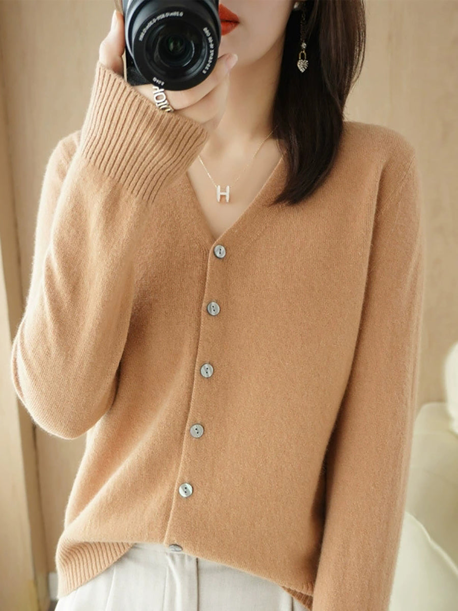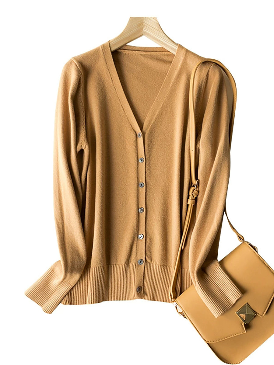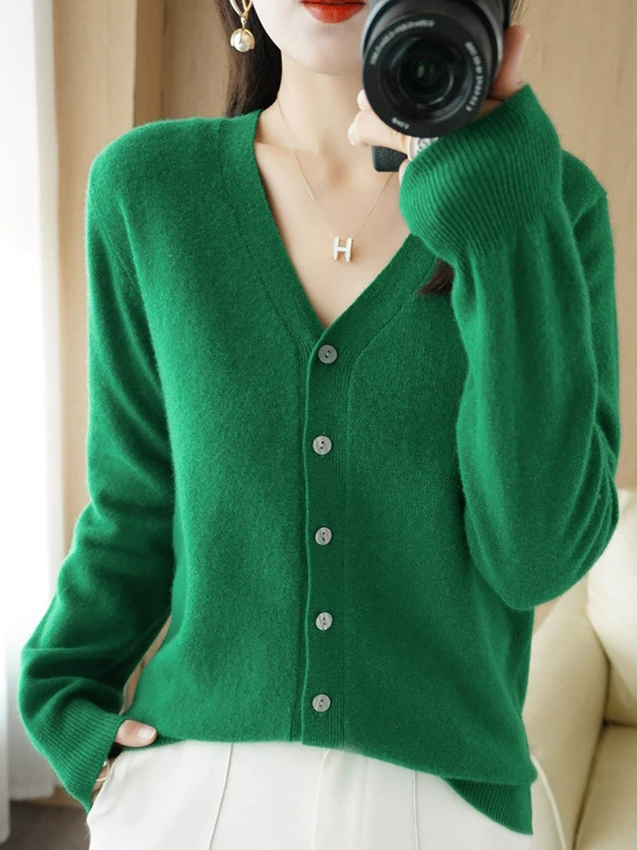 Dámský jarní ležérní čistě barevný svetr s výstřihem do V