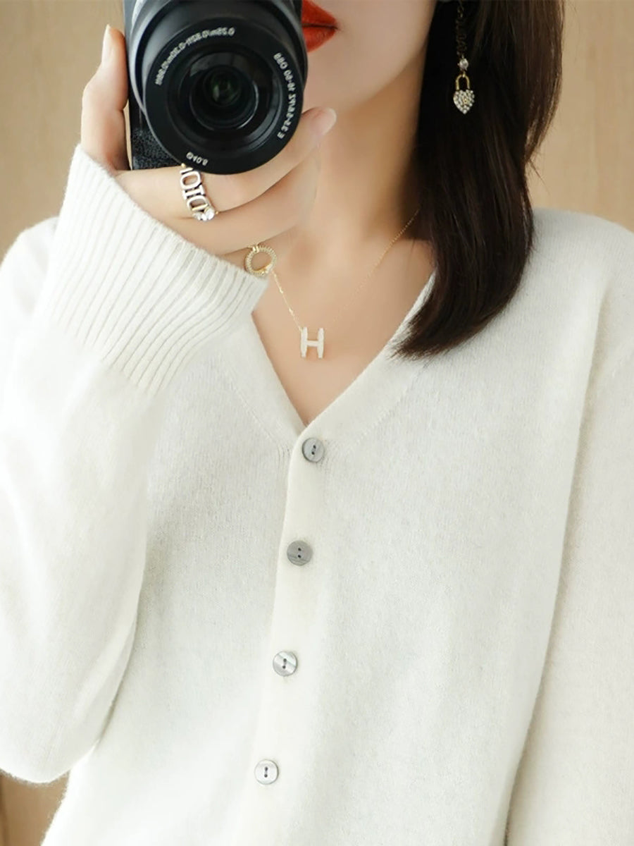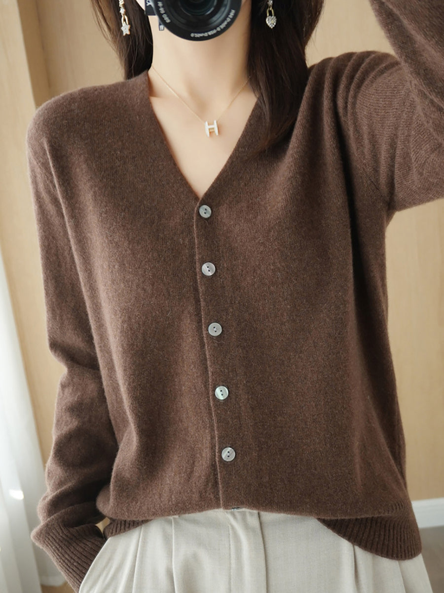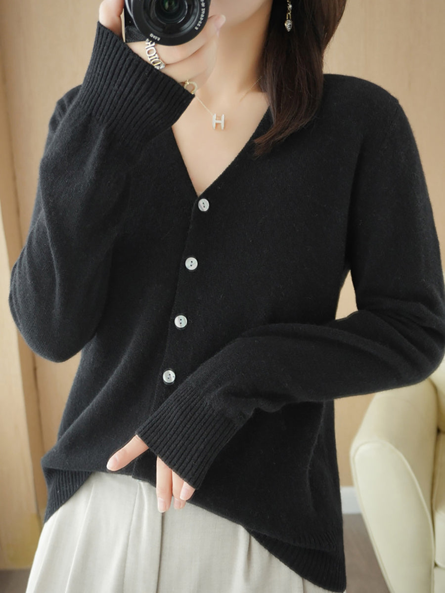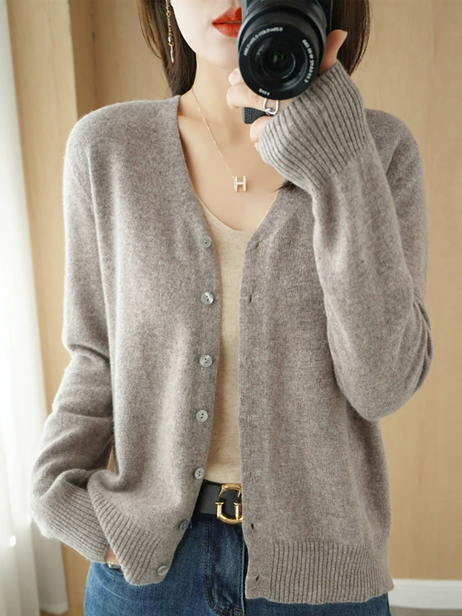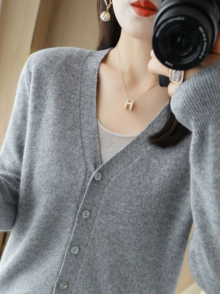 Dámský jarní ležérní čistě barevný svetr s výstřihem do V