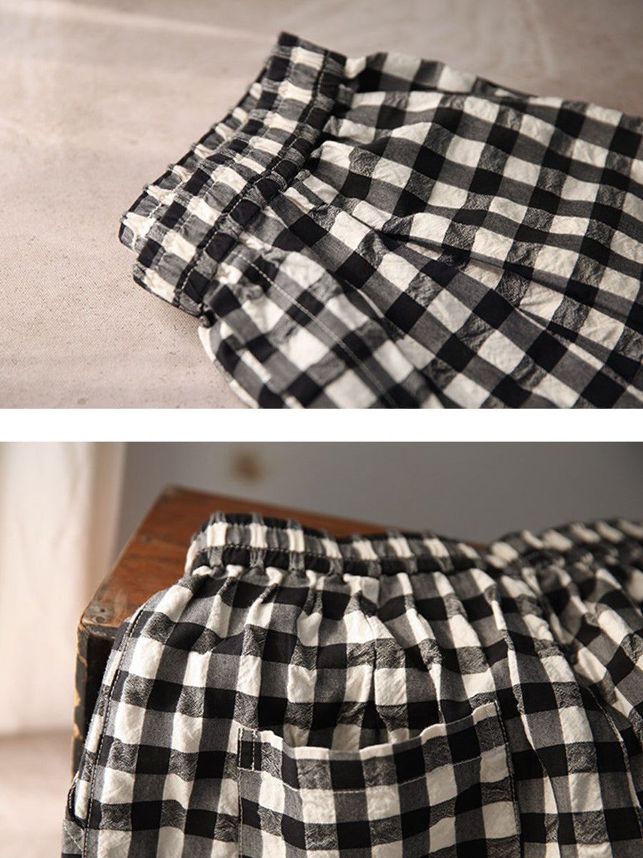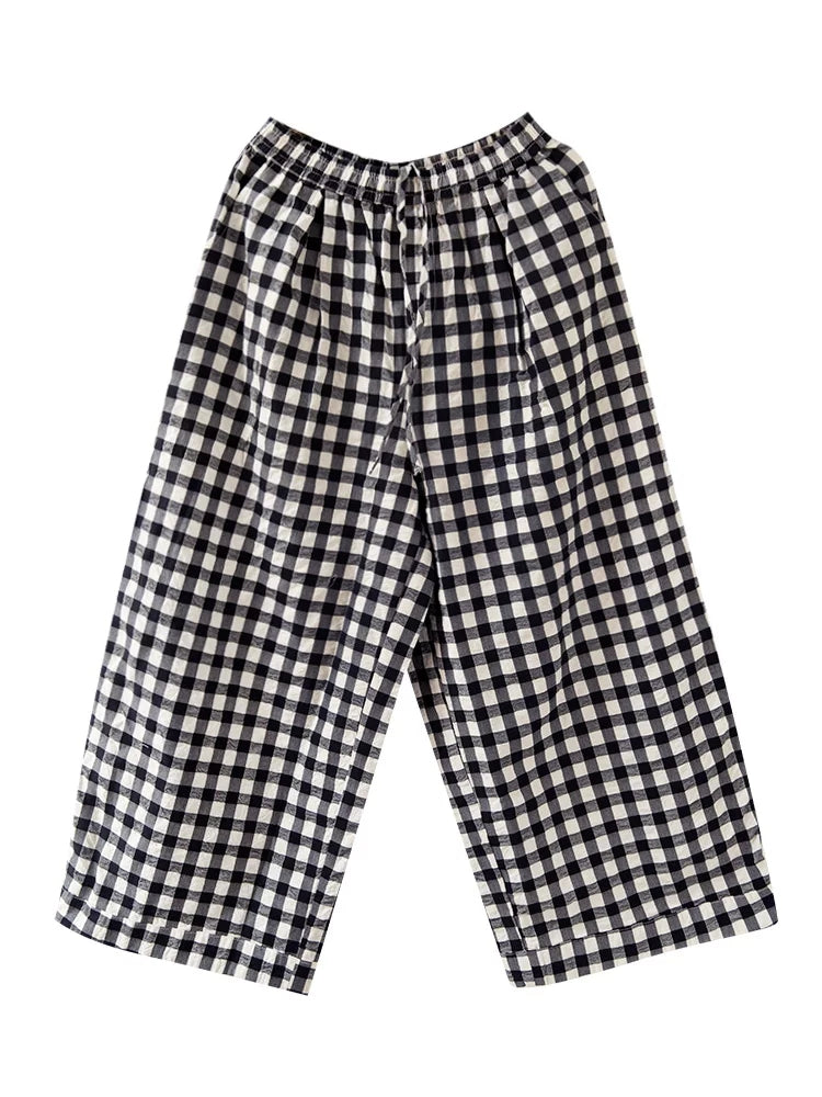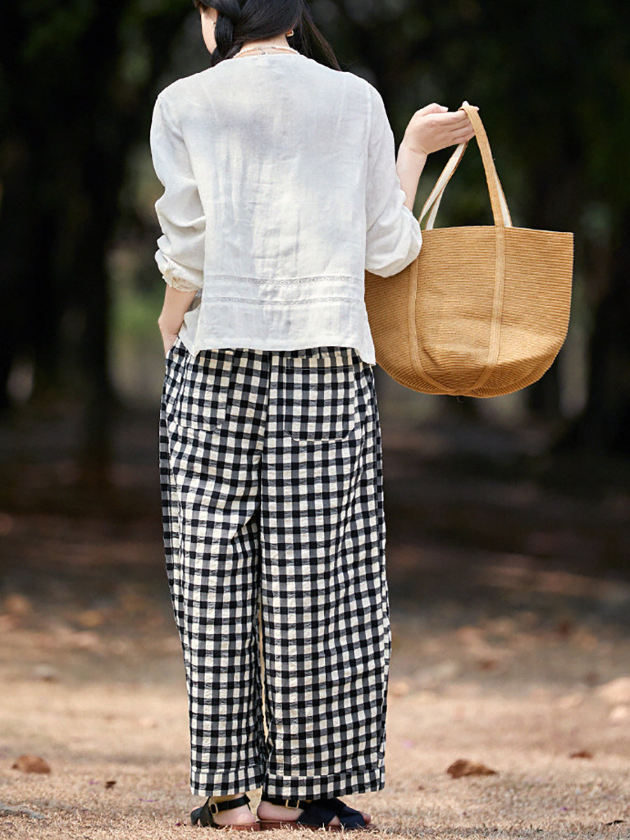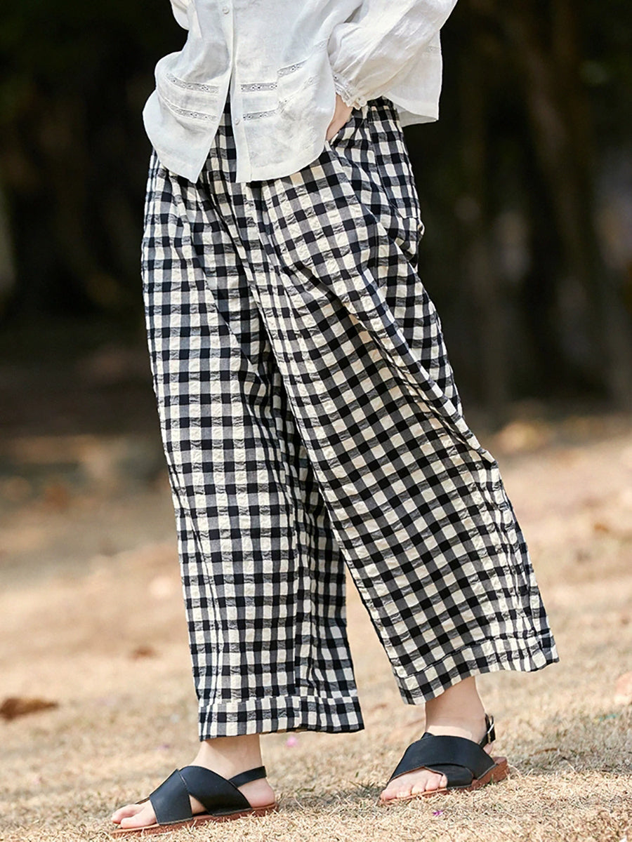 Dámské jarní kostkované kalhoty ze 100% bavlny