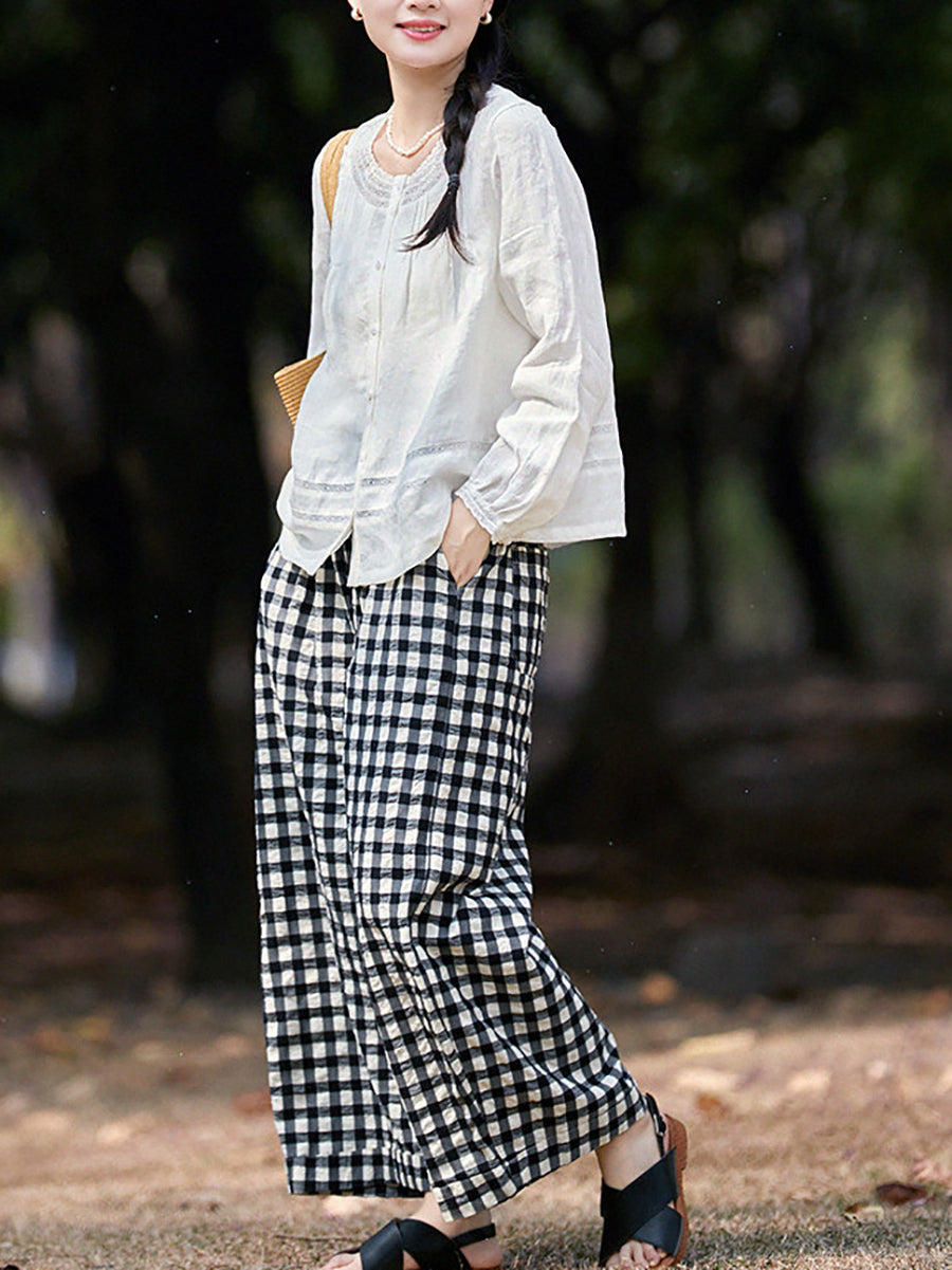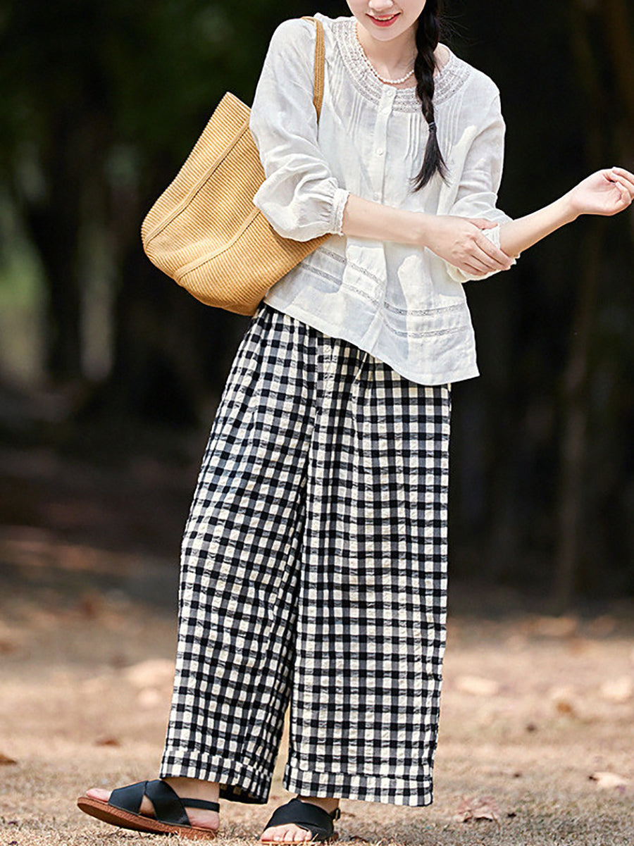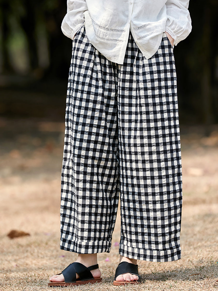 Dámské jarní kostkované kalhoty ze 100% bavlny
