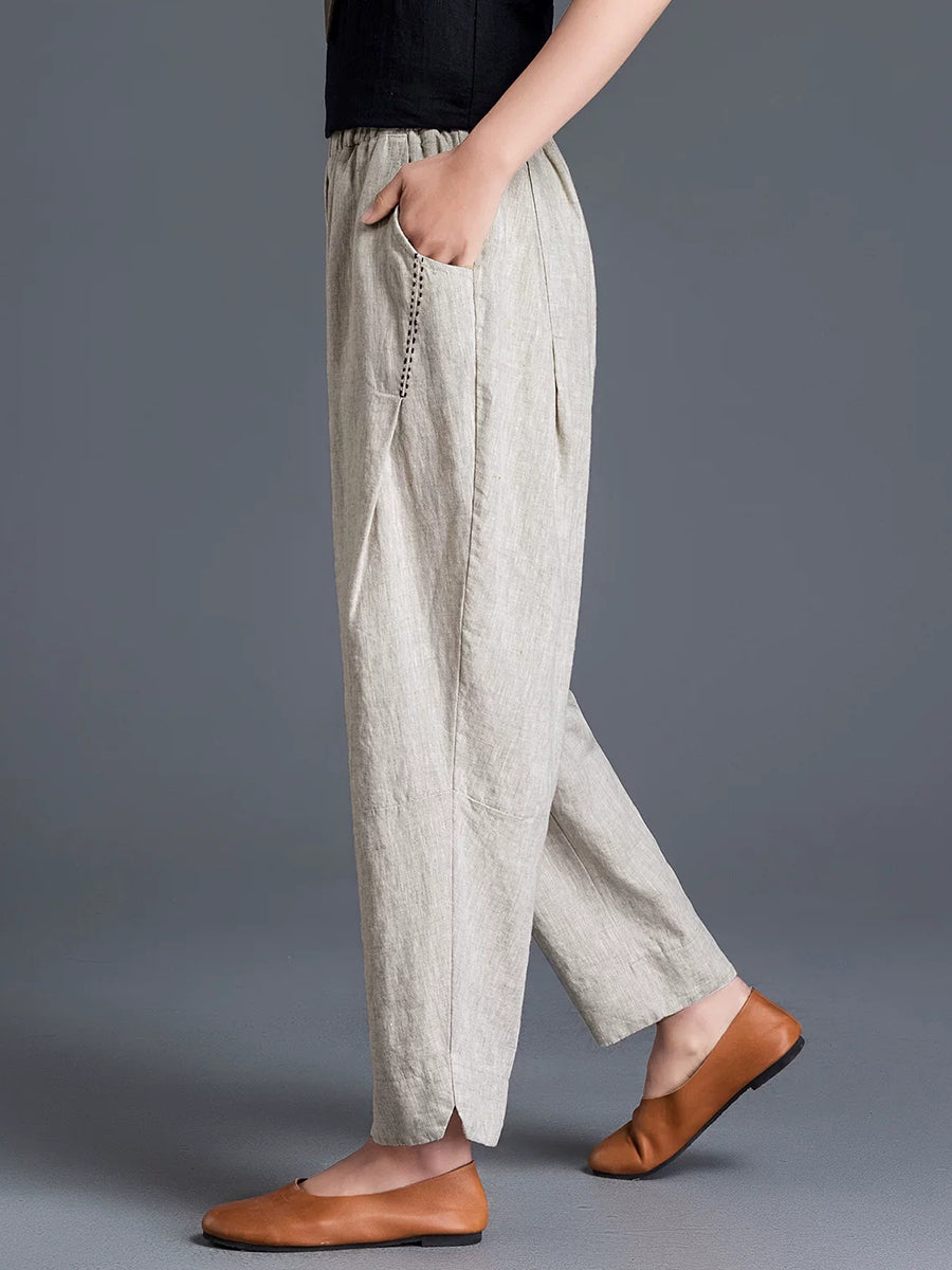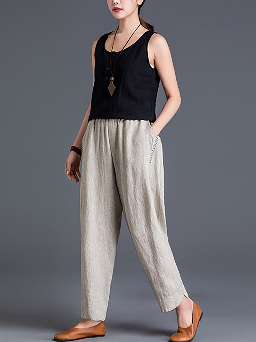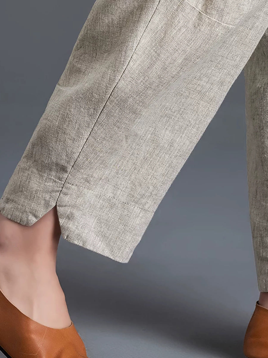 Dámské jarní harémové kalhoty z čisté barvy z bavlny a lnu