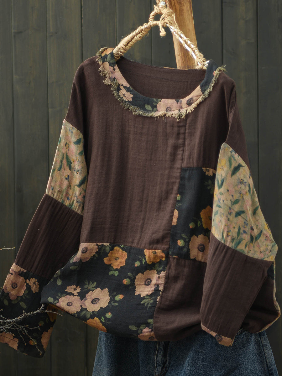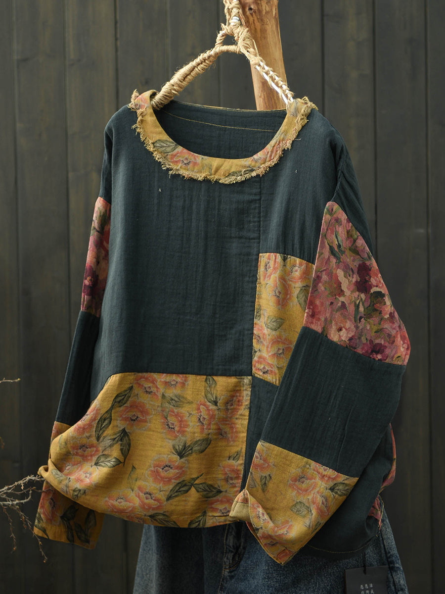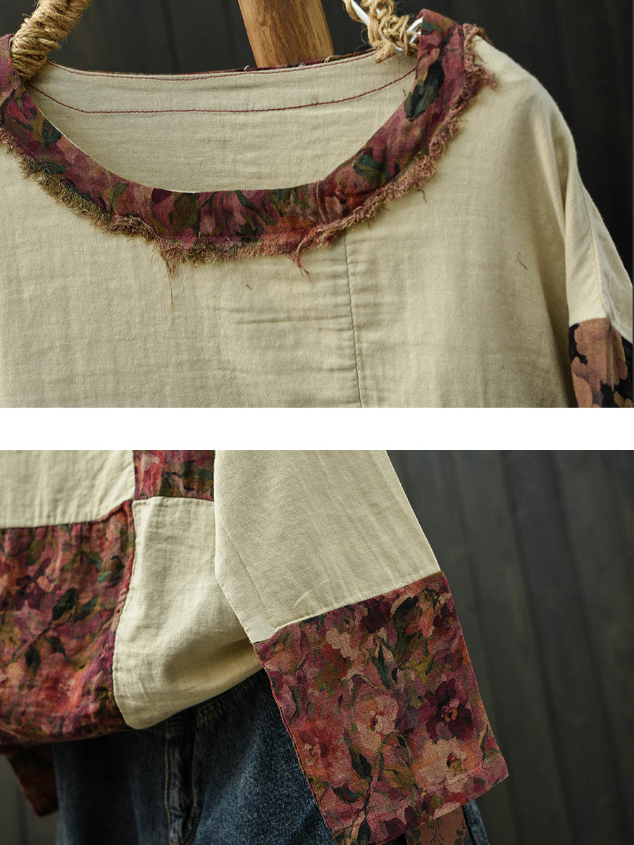 Dámské jarní retro bavlněné tričko s květinovým vzorem
