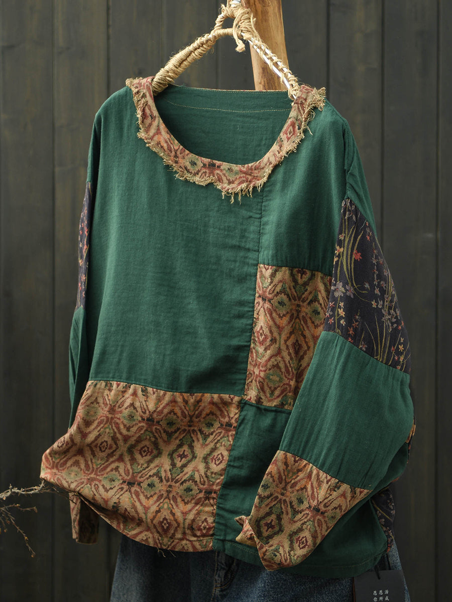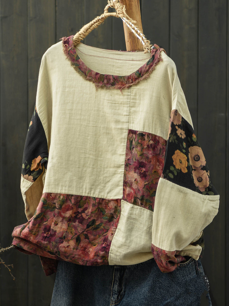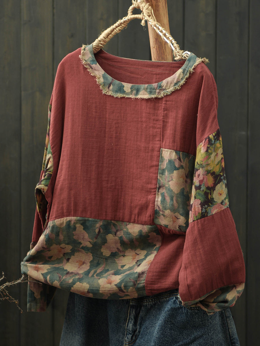 Dámské jarní retro bavlněné tričko s květinovým vzorem