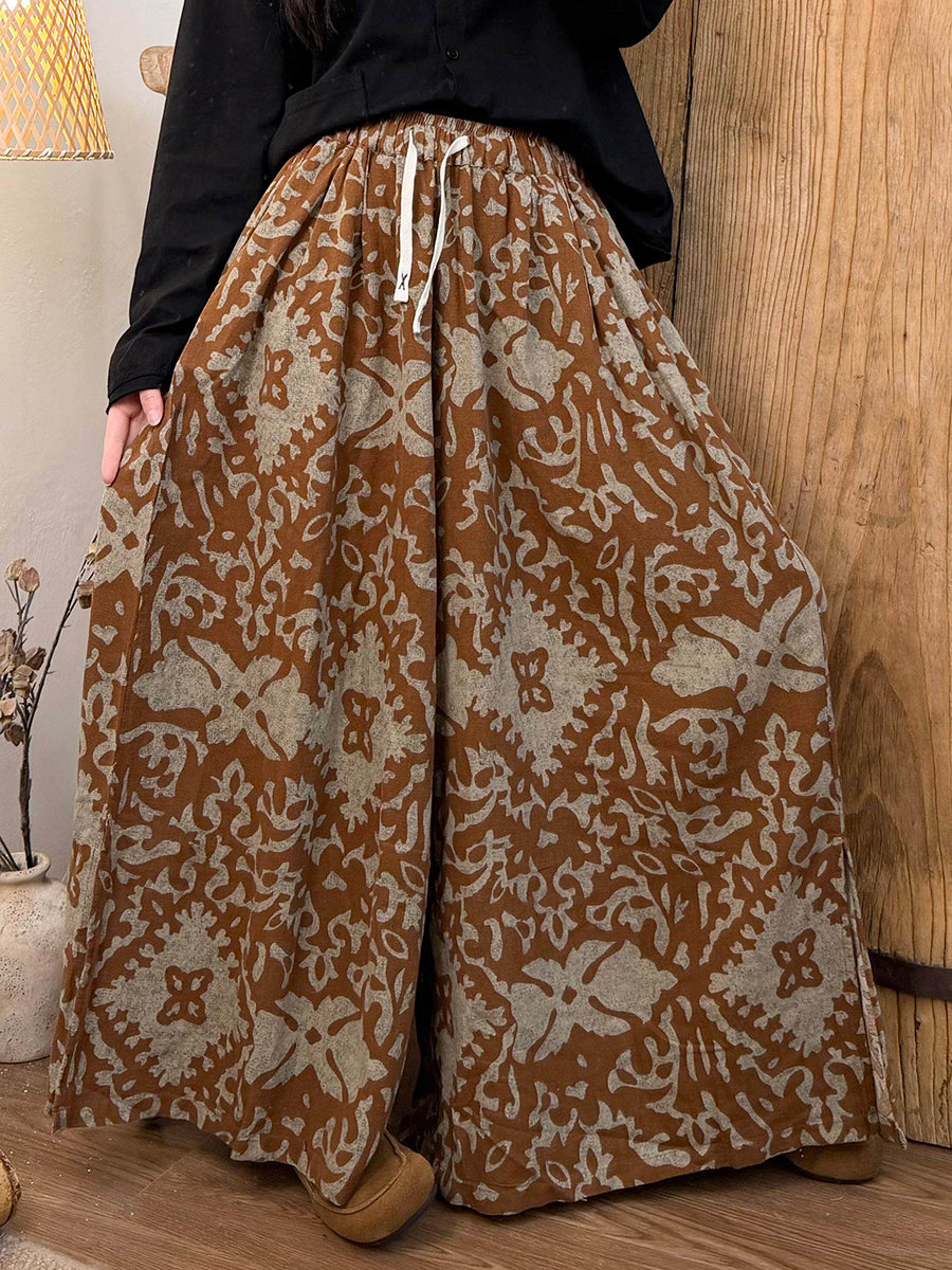 Dámské jarní retro květinové kalhoty s širokými nohavicemi