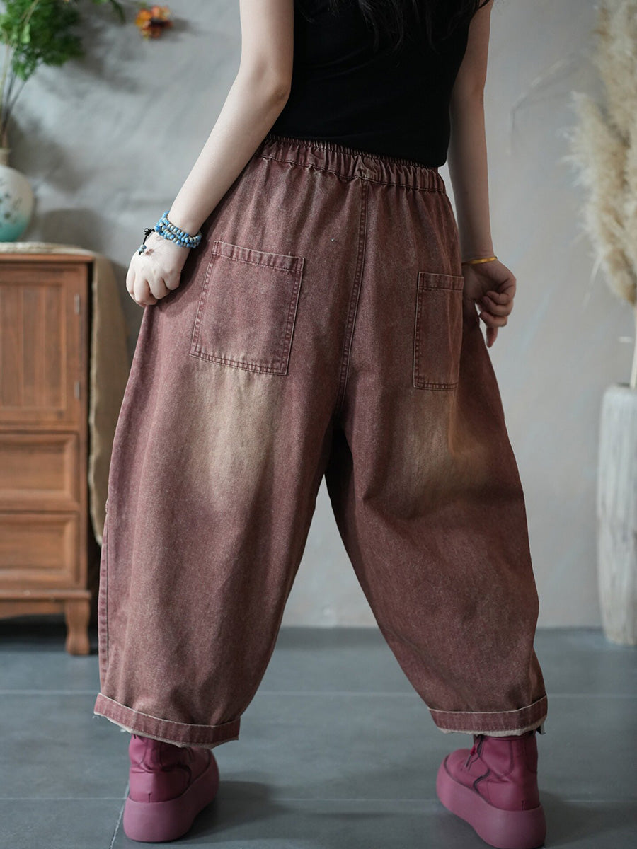 Dámské jarní retro čisté barevné džínové harémové kalhoty