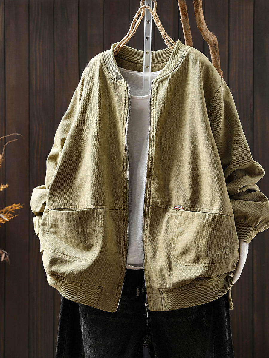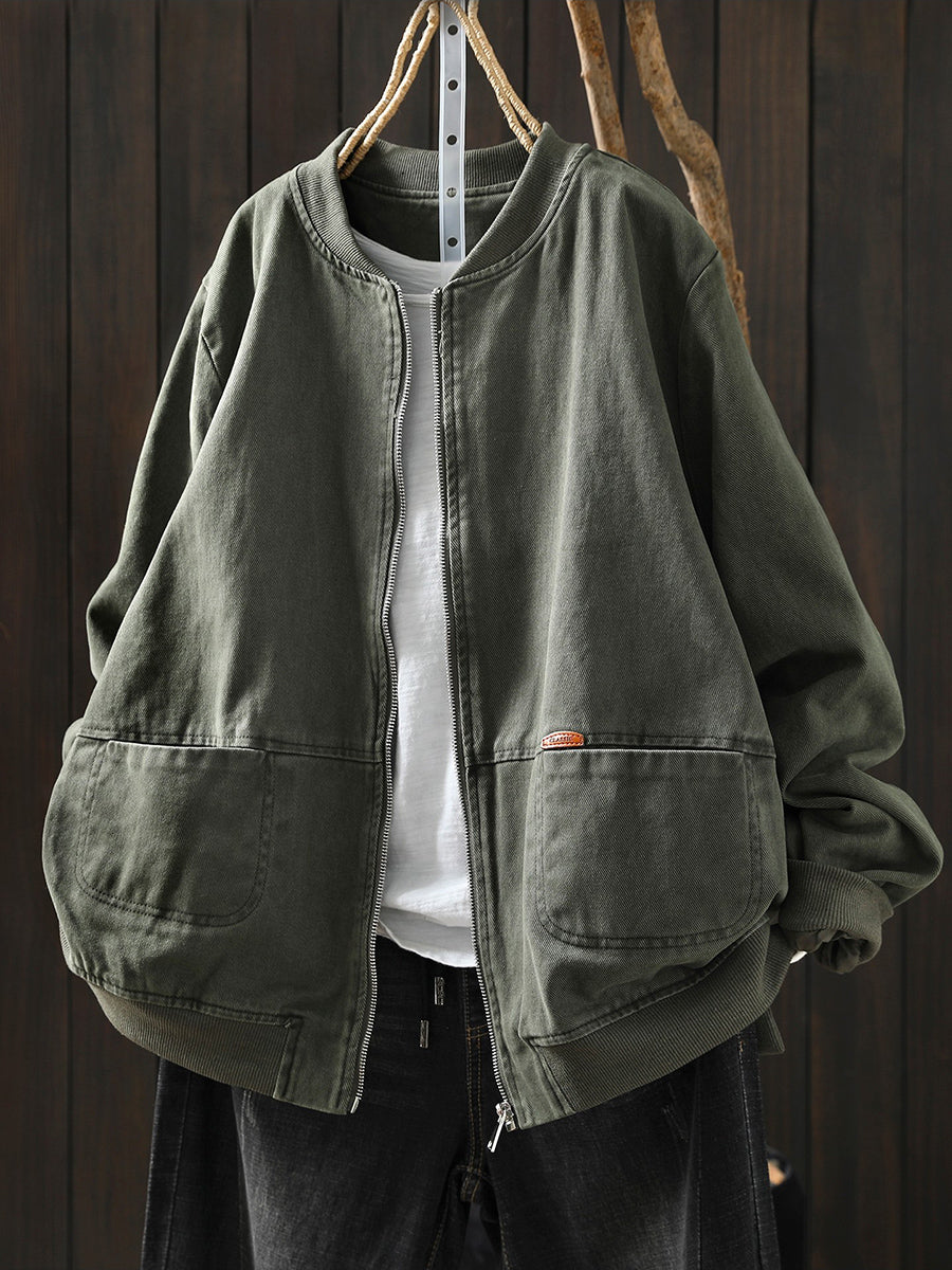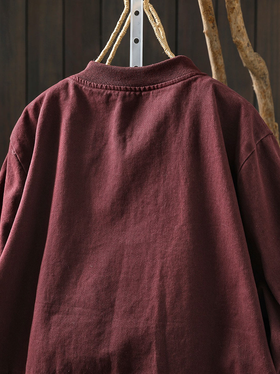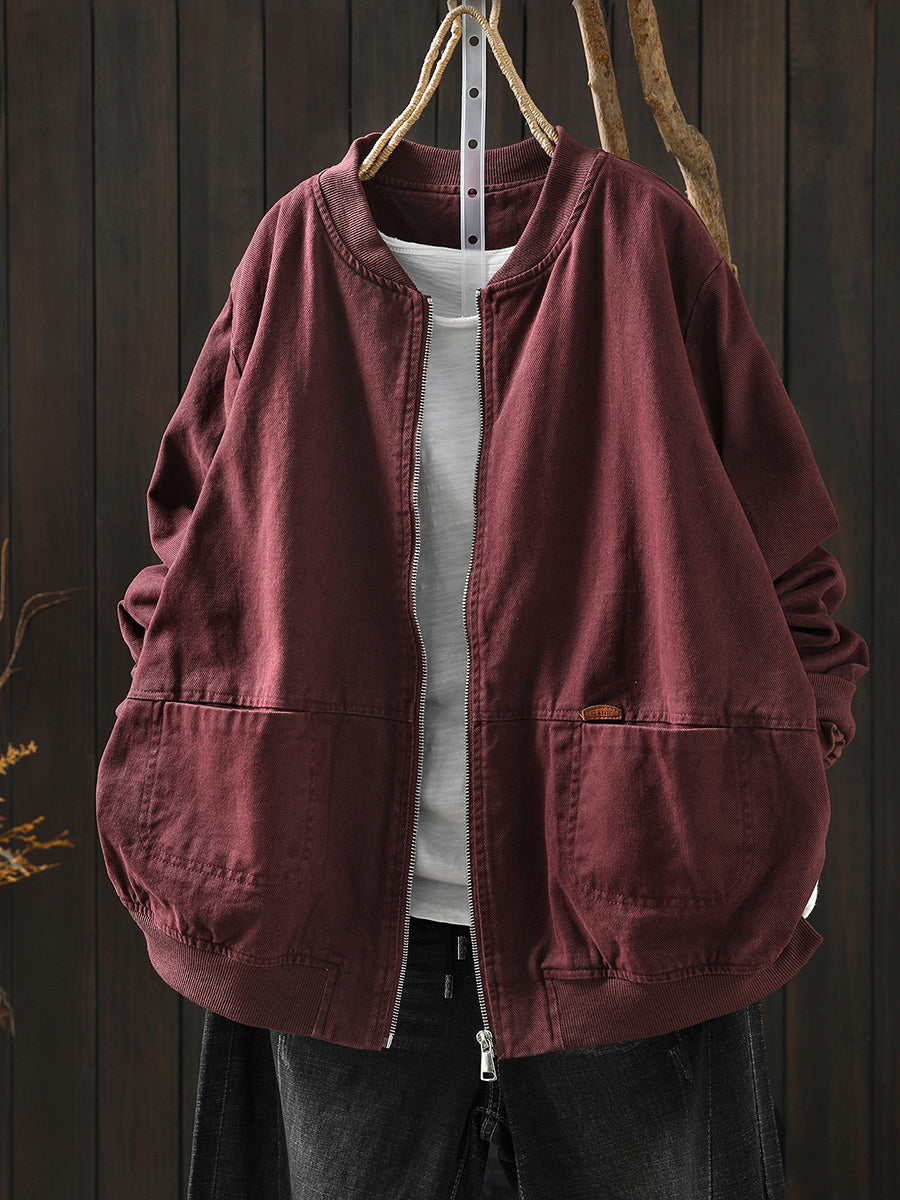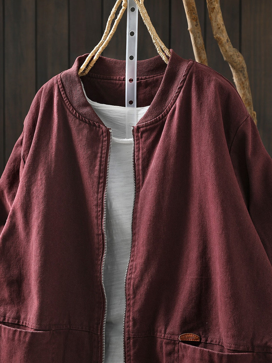 Dámská jarní retro bunda s čistě barevným stojáčkem