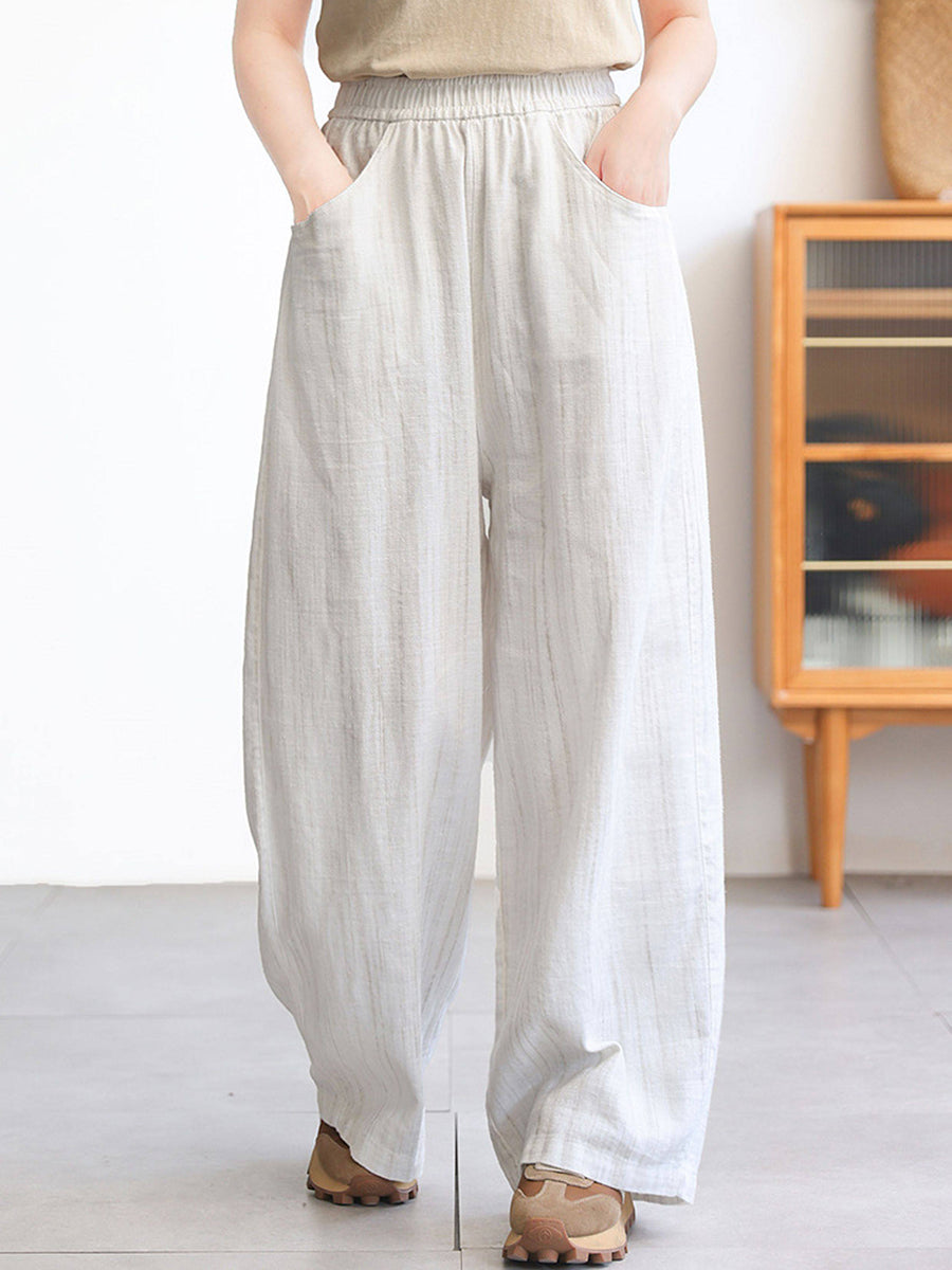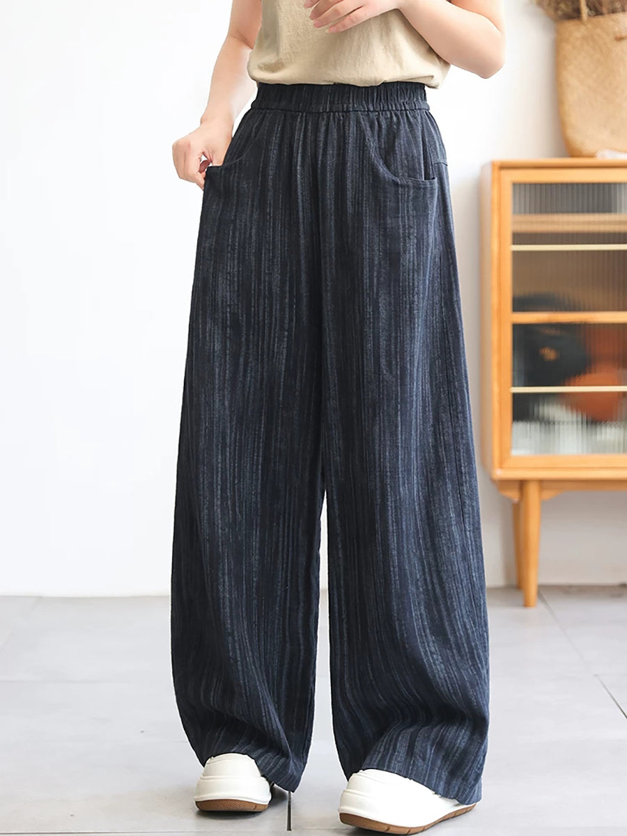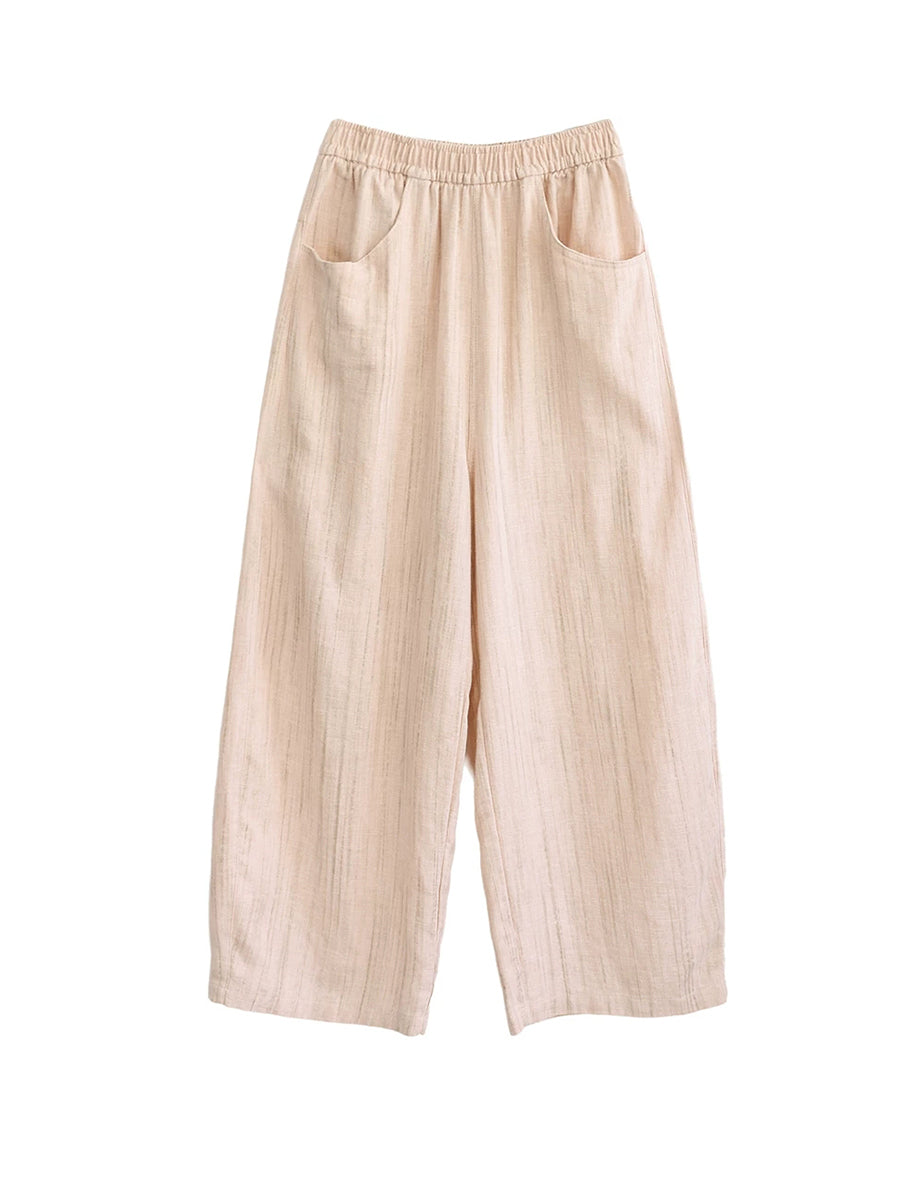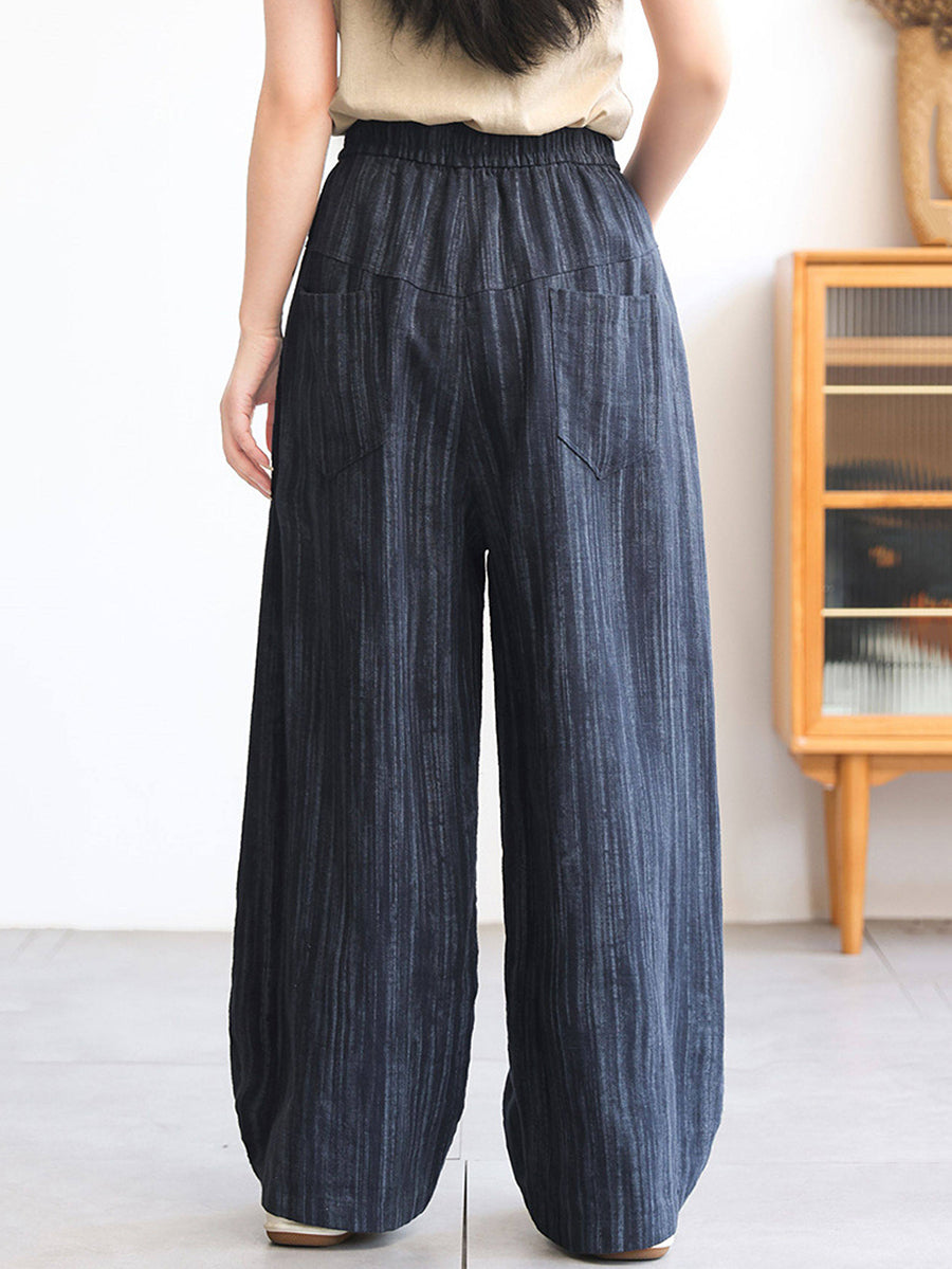 Dámské jarní pruhované rovné kalhoty ze 100% lnu