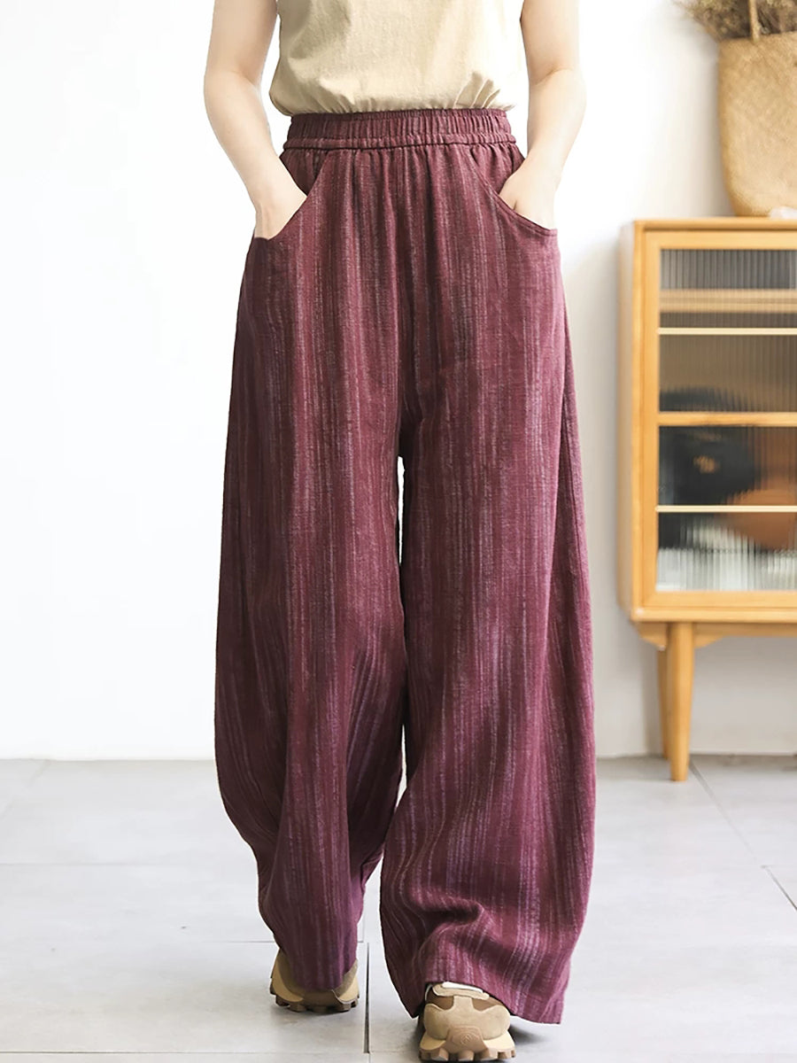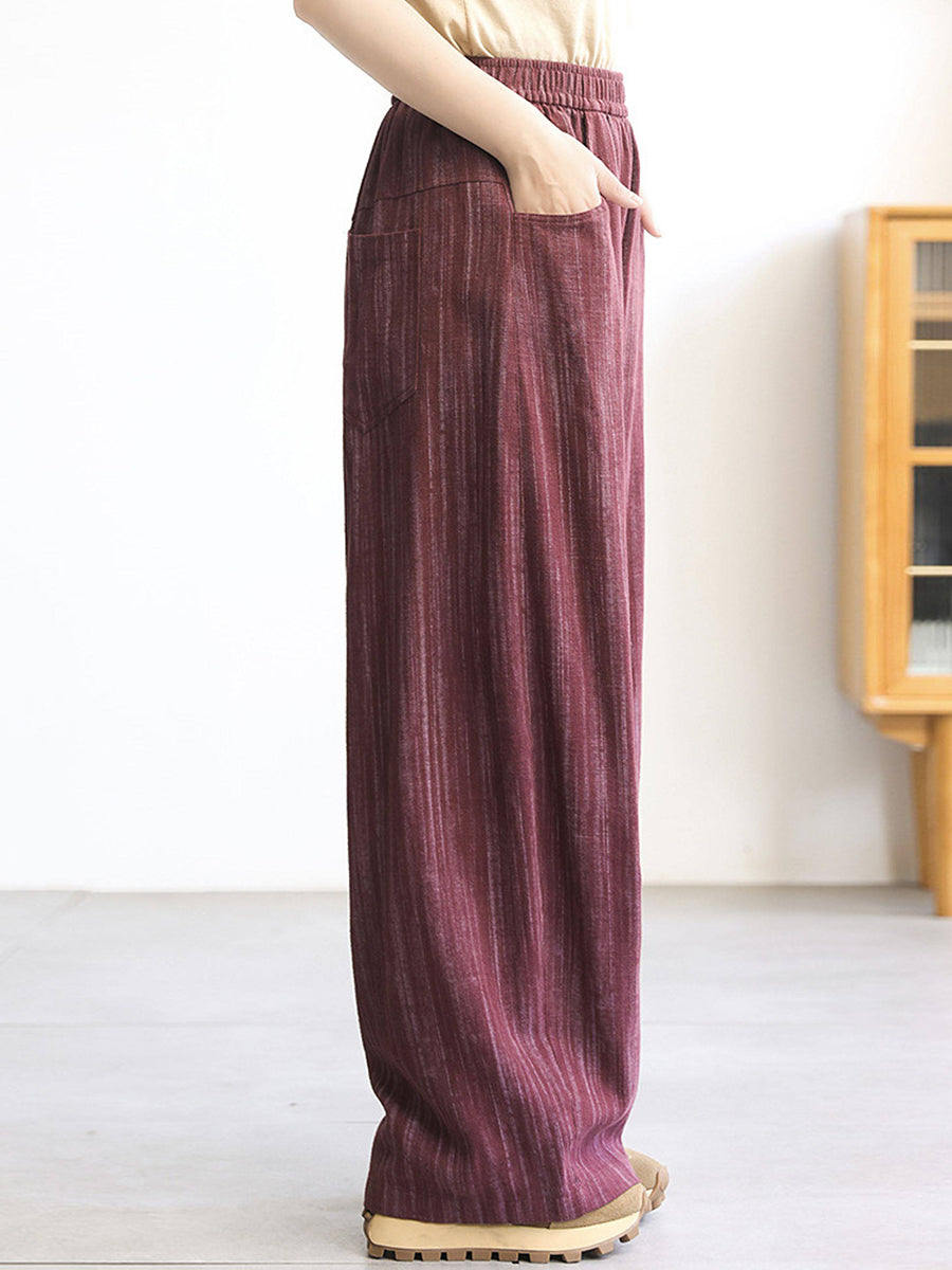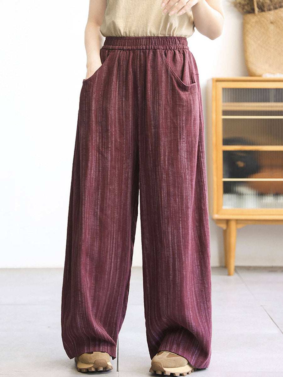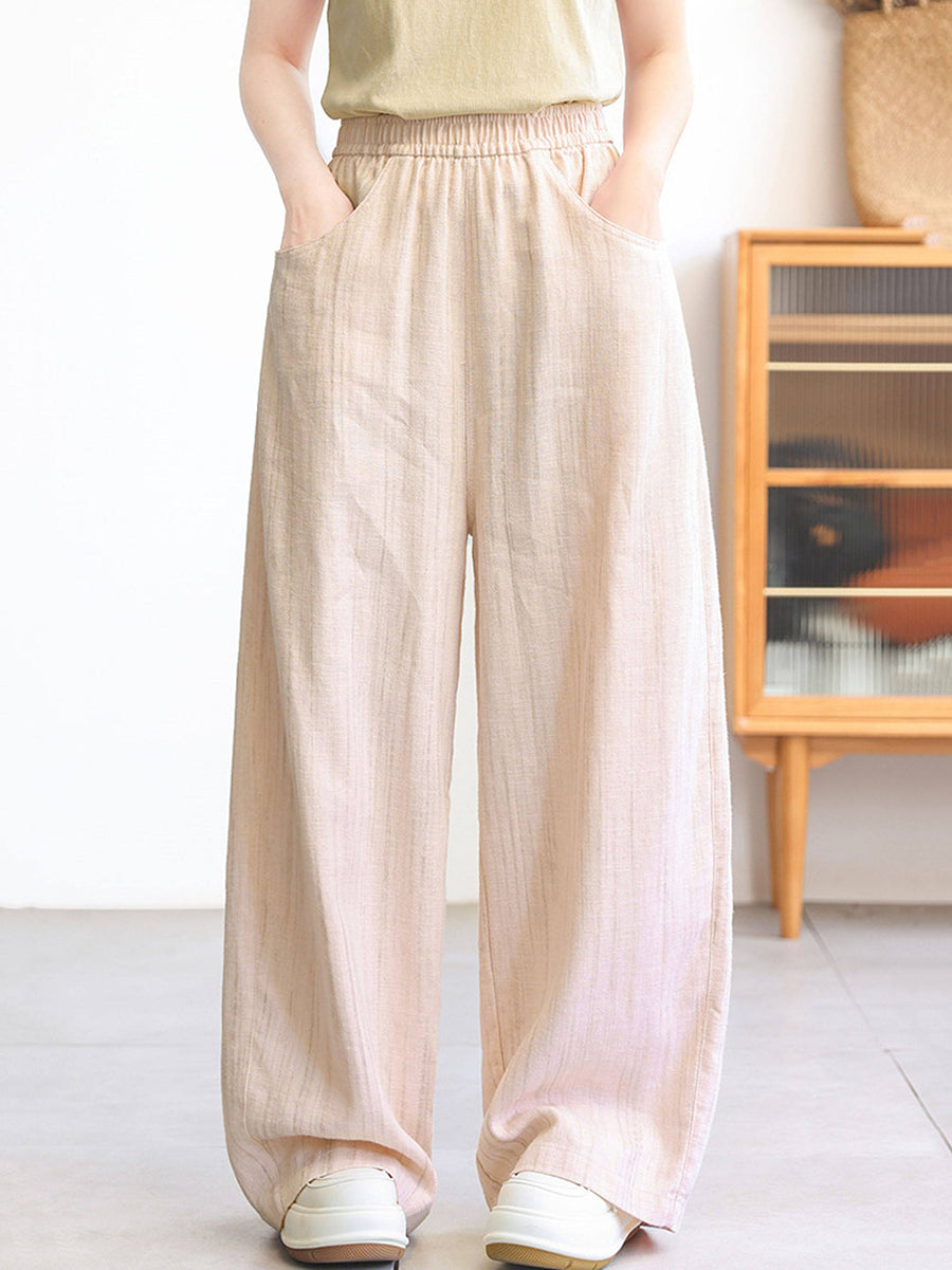 Dámské jarní pruhované rovné kalhoty ze 100% lnu