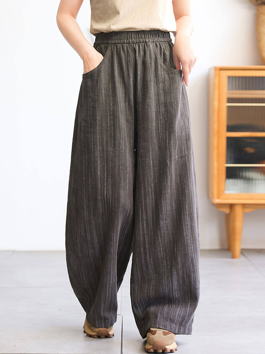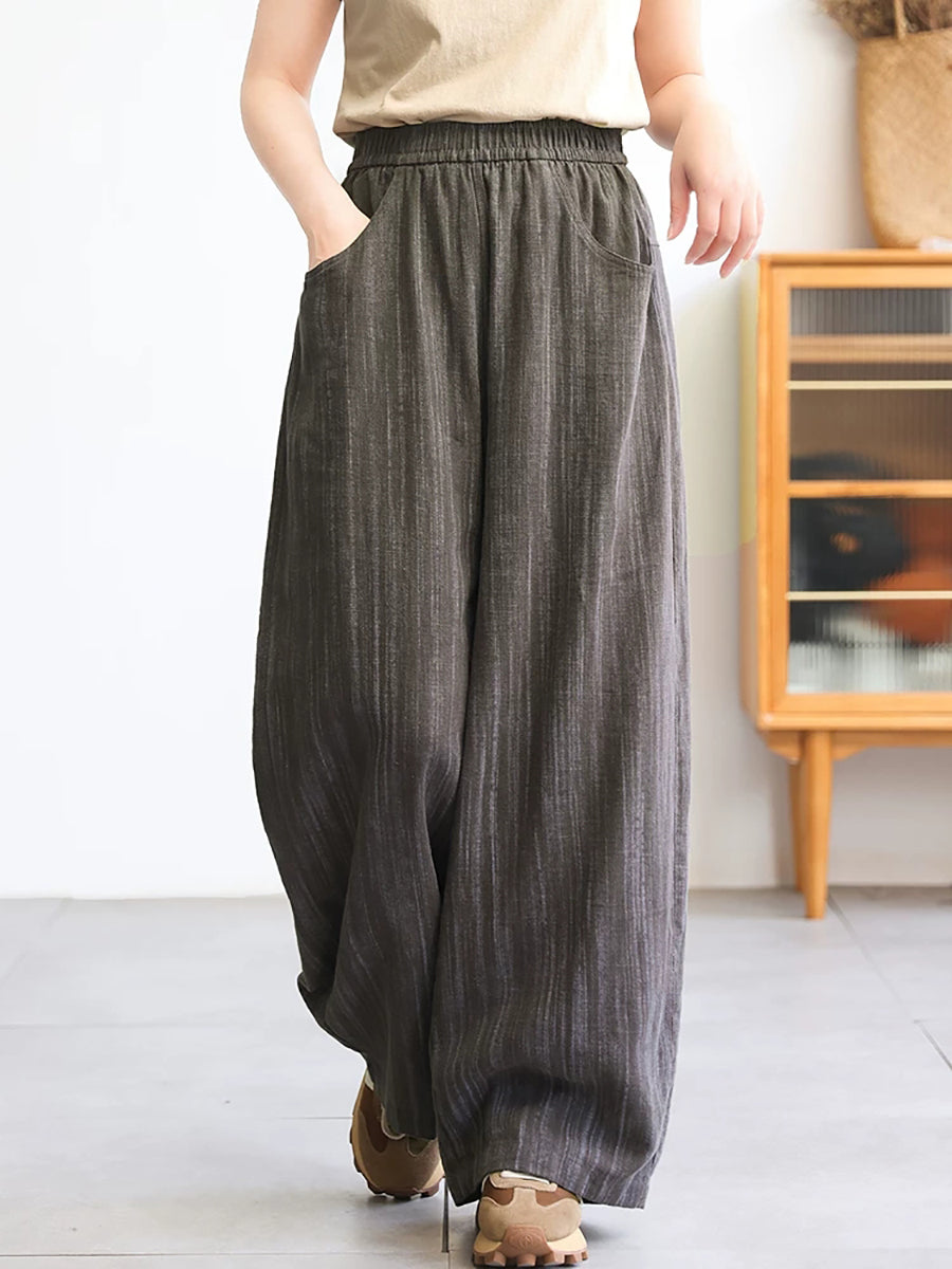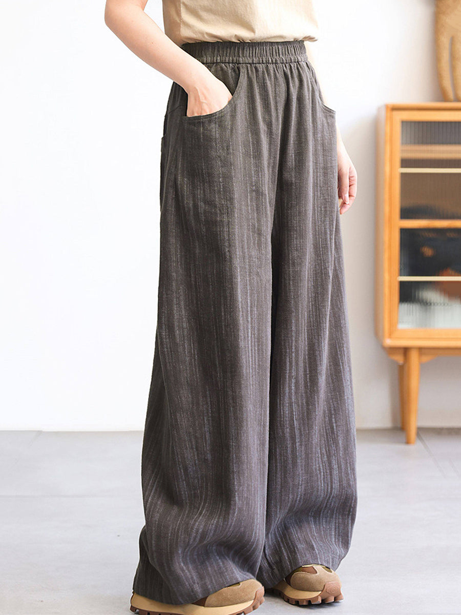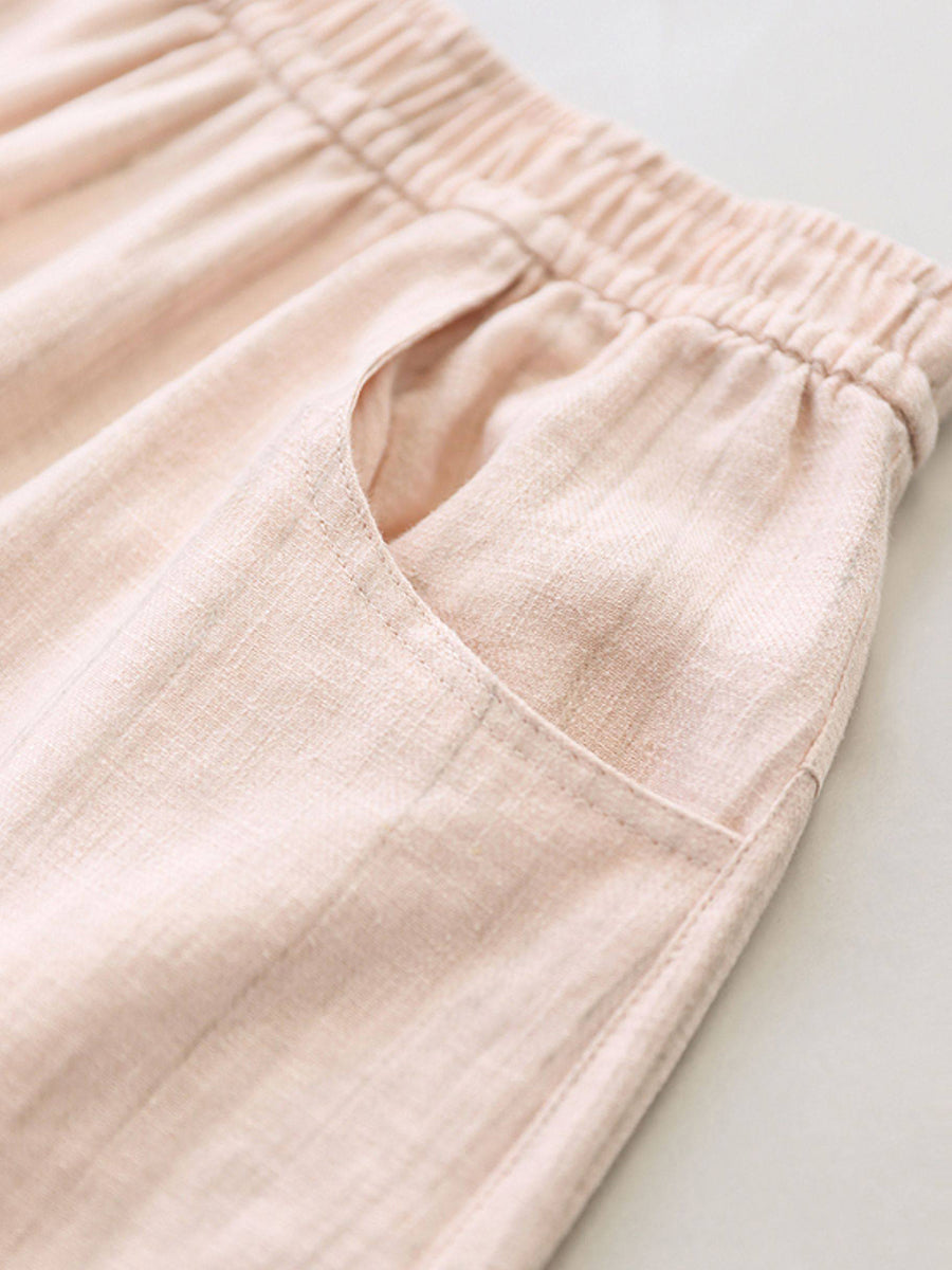 Dámské jarní pruhované rovné kalhoty ze 100% lnu