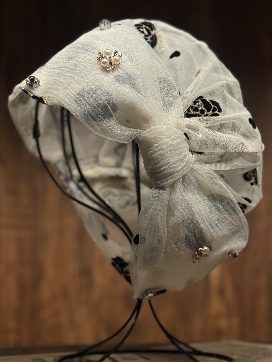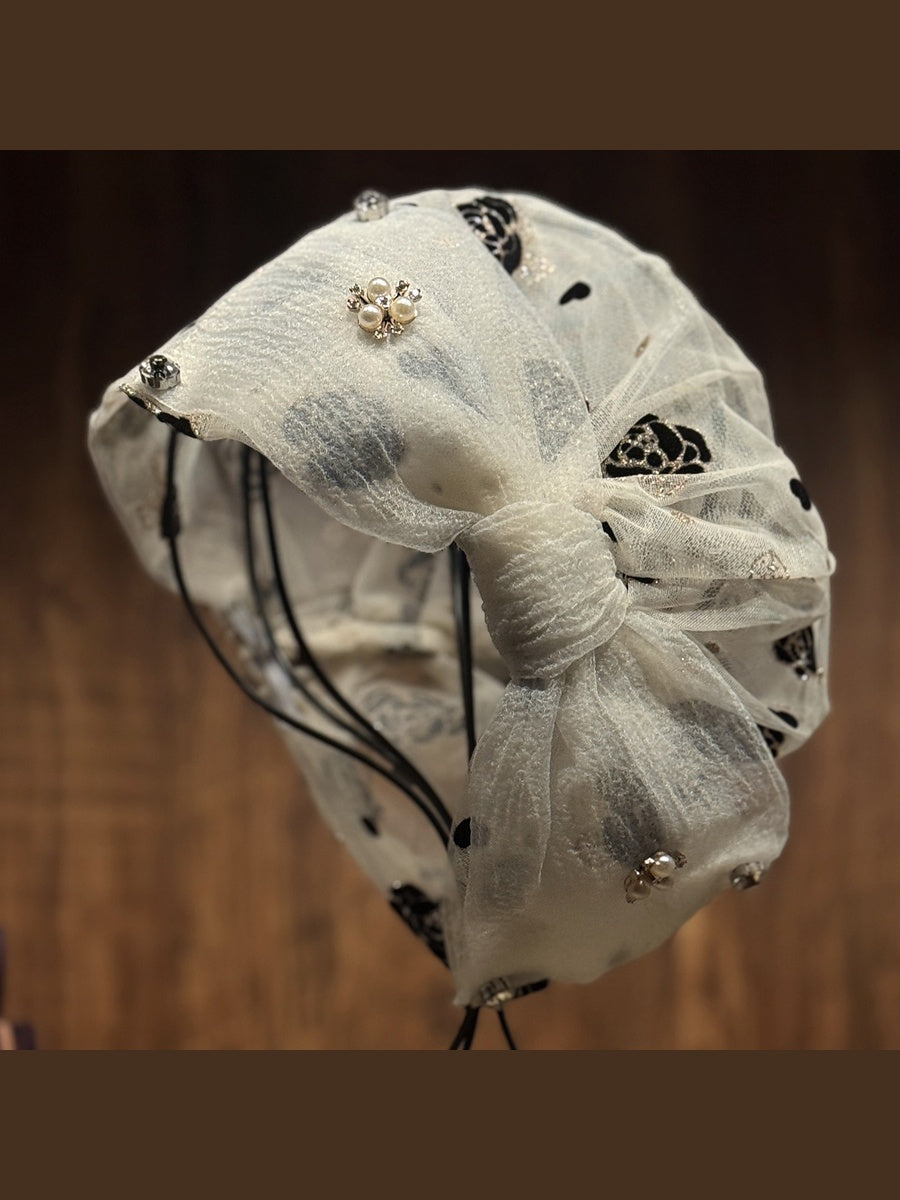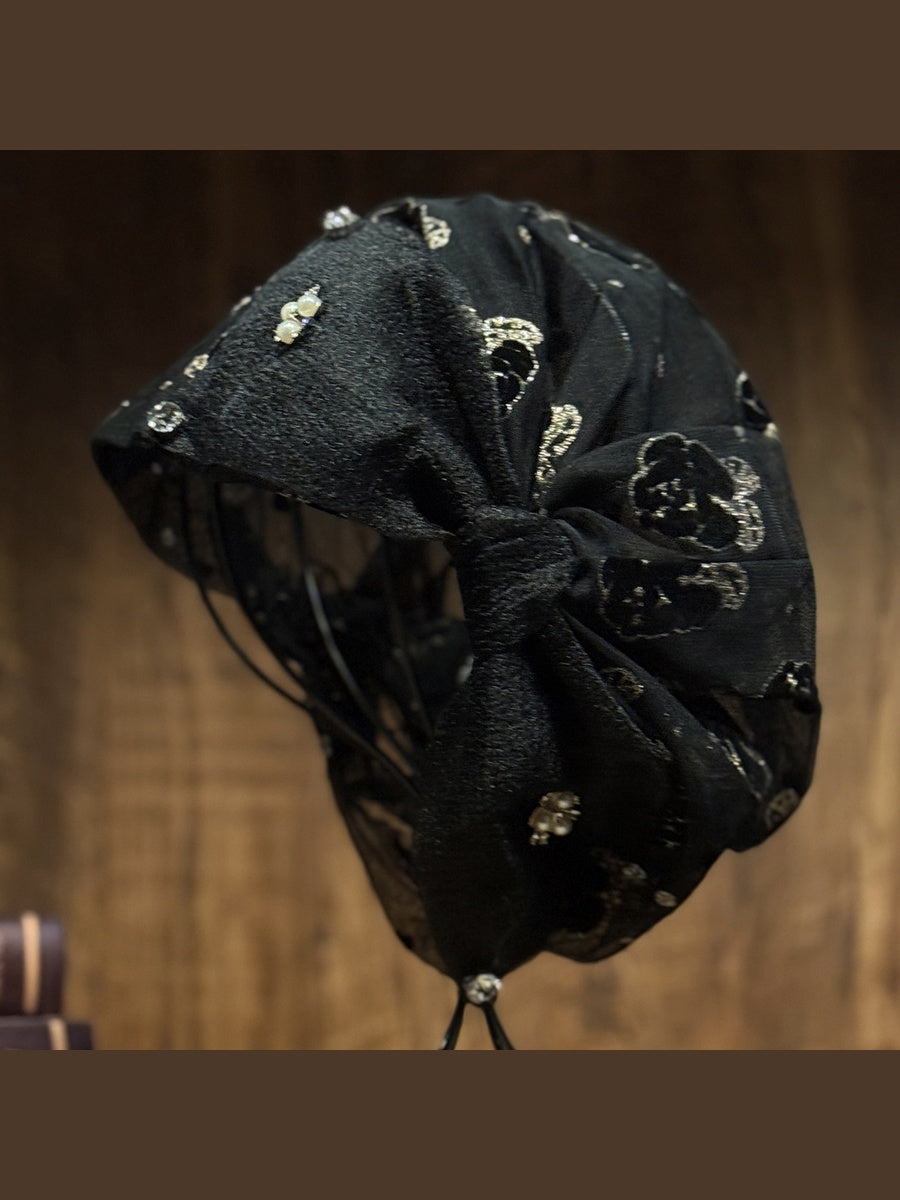 Dámská jarní a letní čepice s kamínky a květinovými korálky