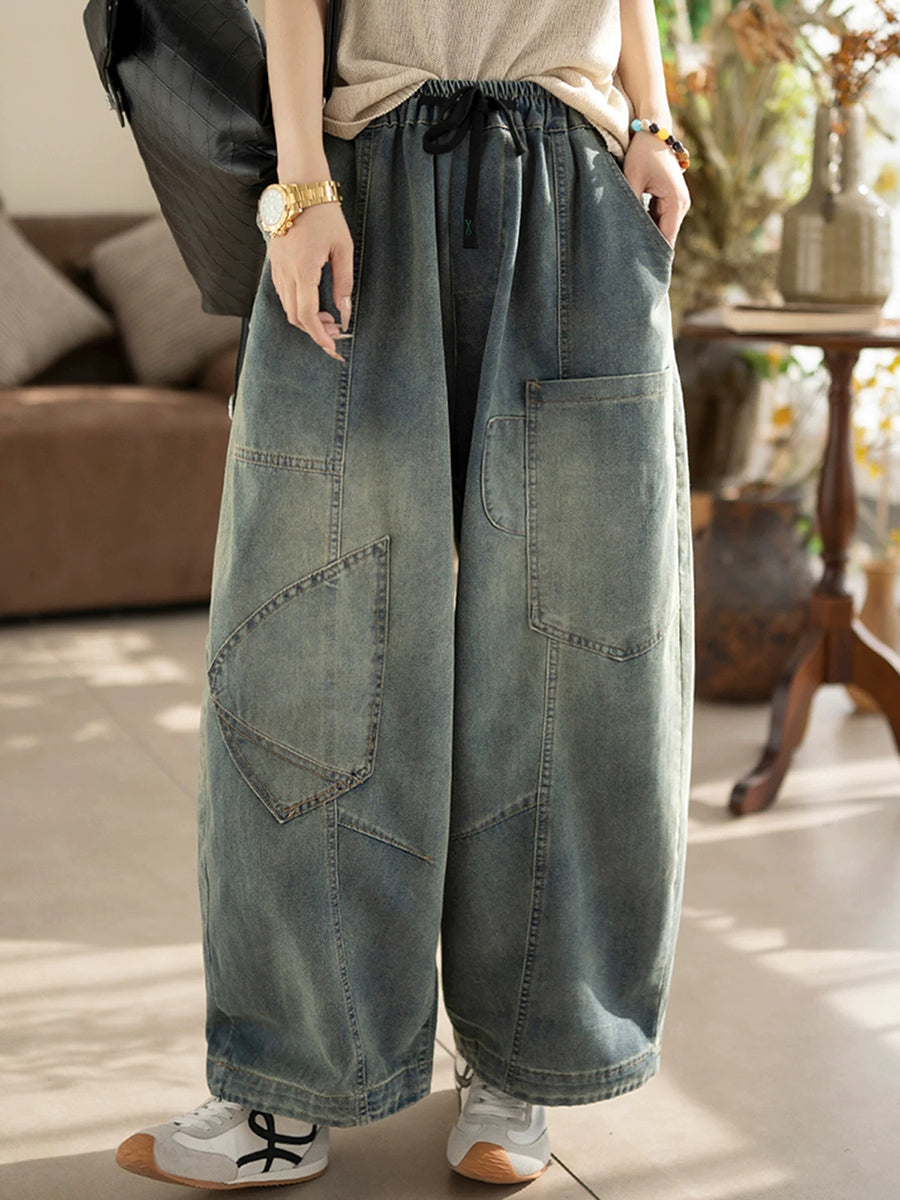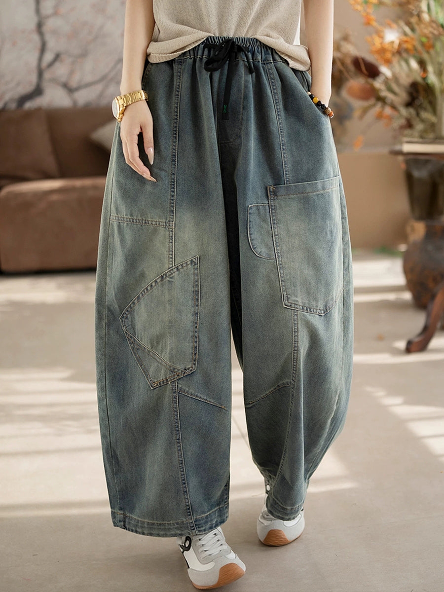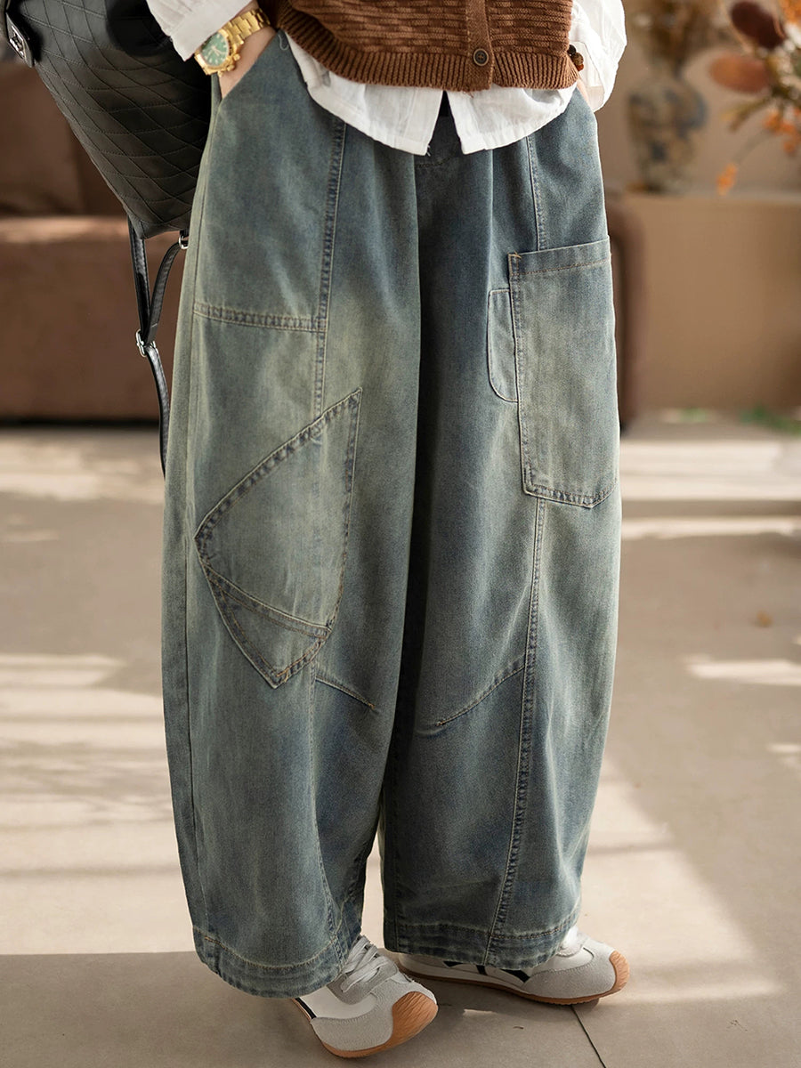 Dámské jarní vintage džínové kalhoty se splývavým vzorem