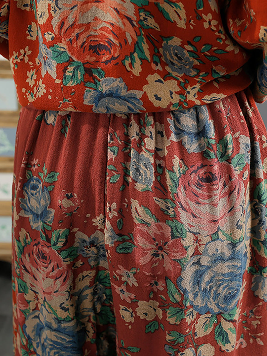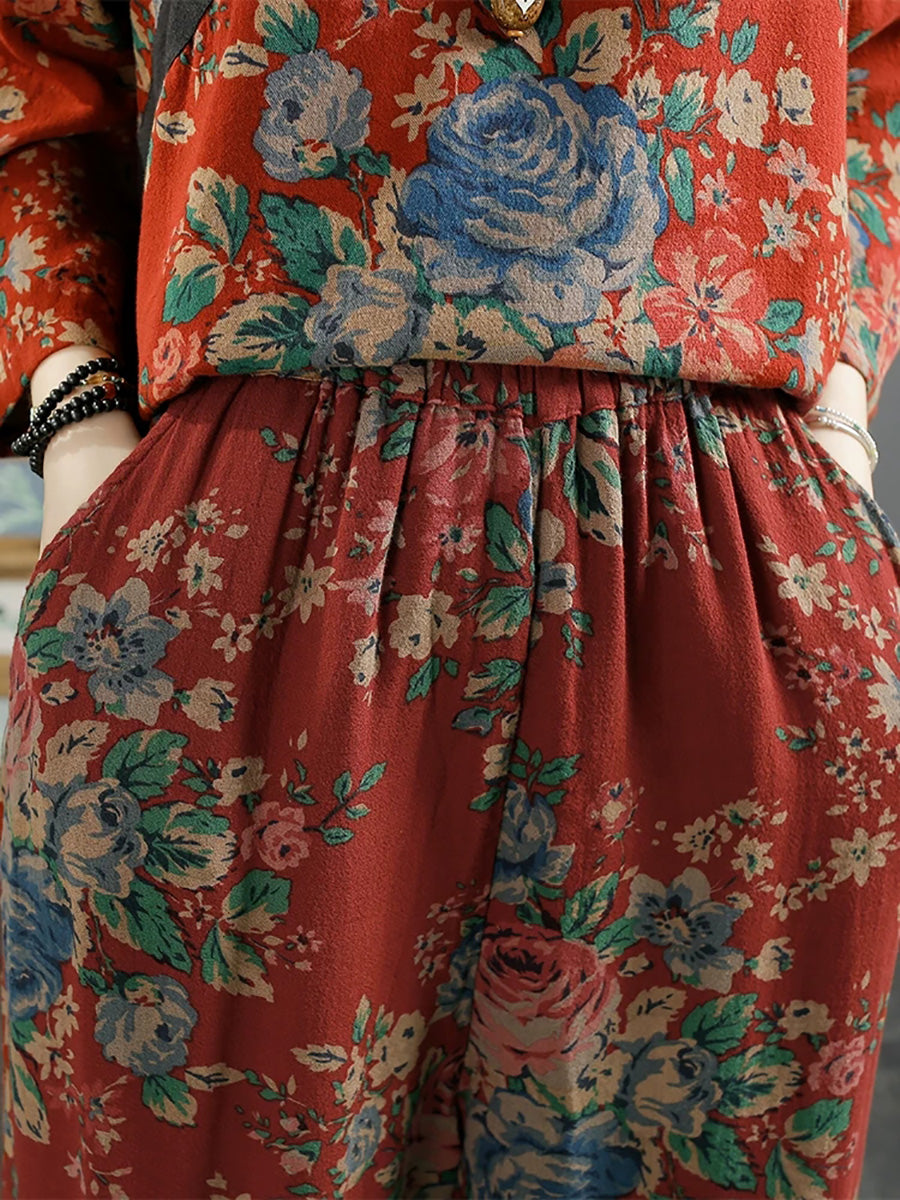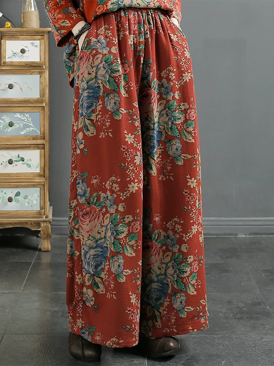 Dámské jarní vintage květinové bavlněné kalhoty se širokými nohavicemi