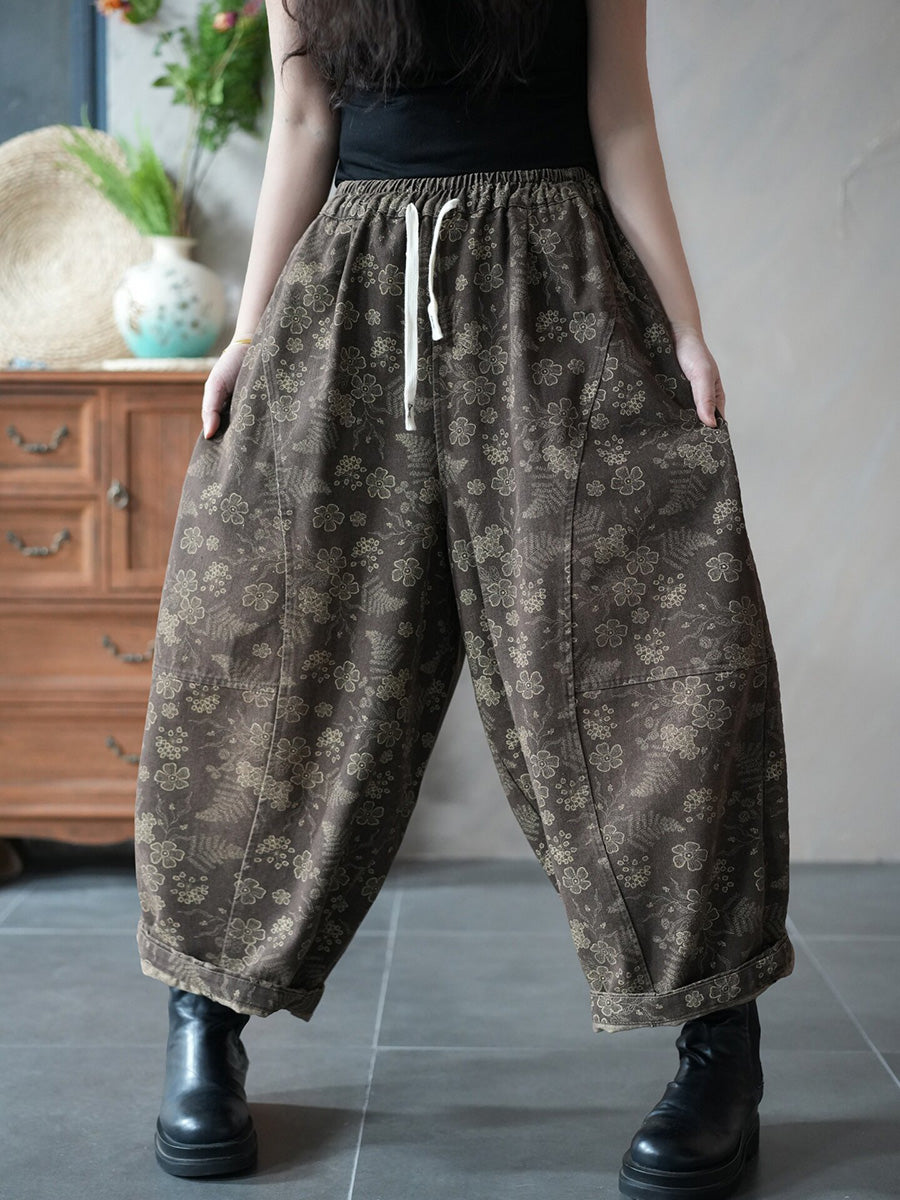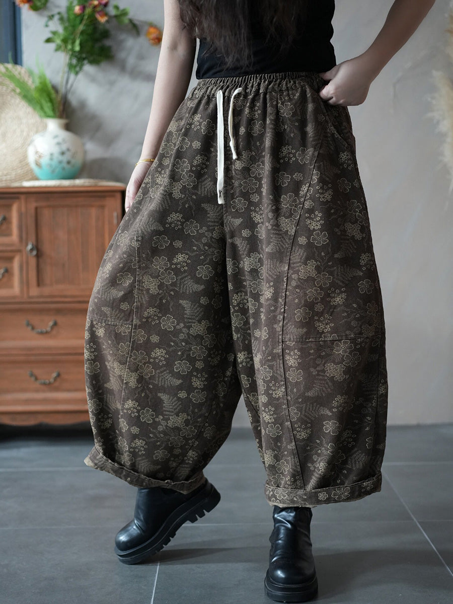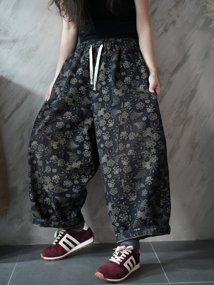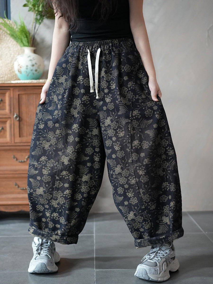 Dámské jarní vintage květinové džínové harémové kalhoty