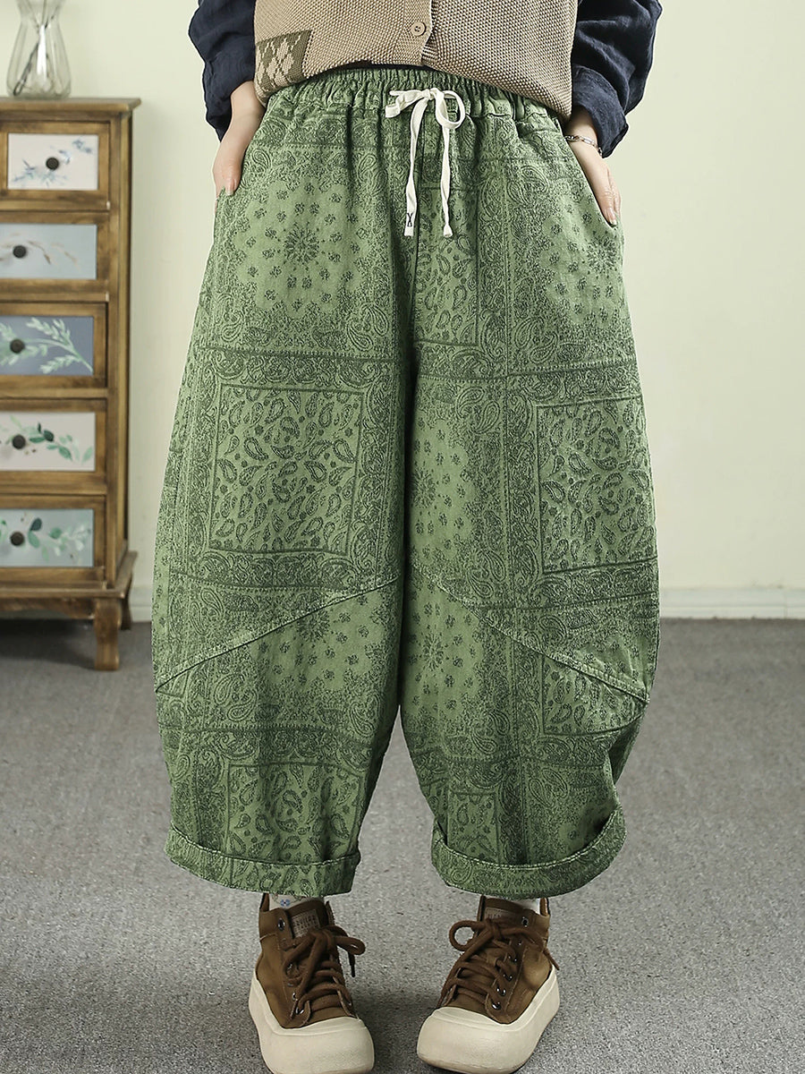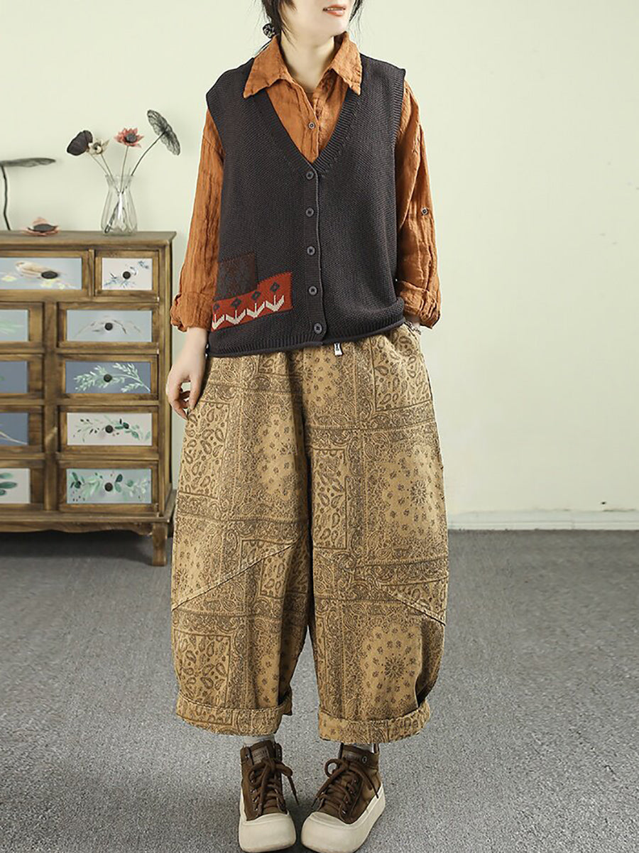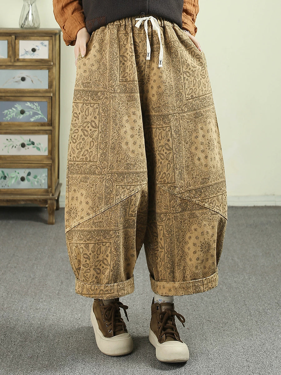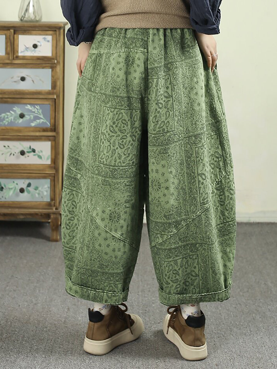 Dámské jarní vintage květinové džínové harémové kalhoty