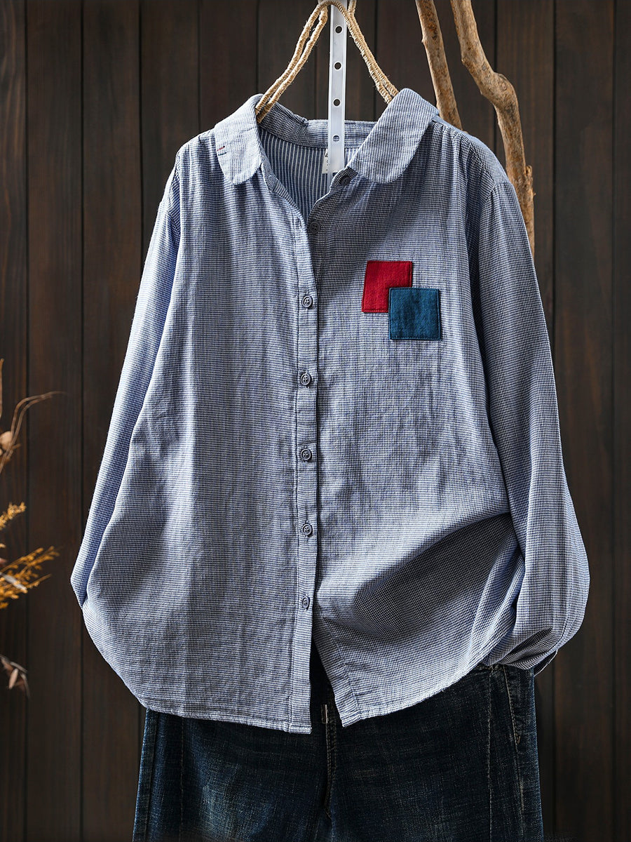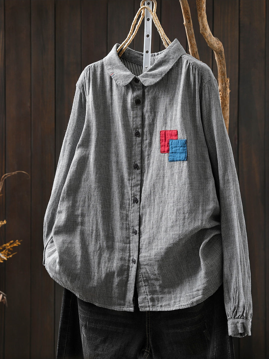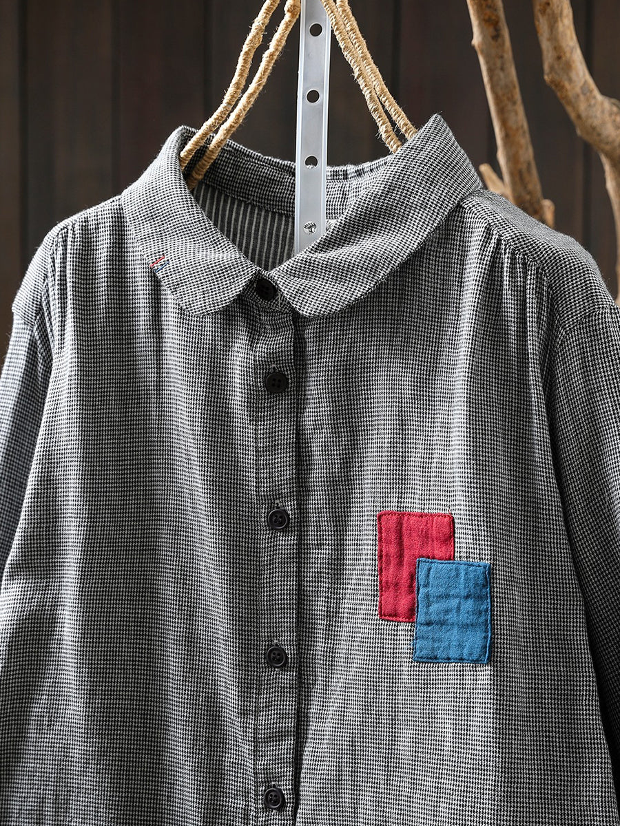 Dámské jarní vintage mřížkované patchworkové tričko ze 100% bavlny