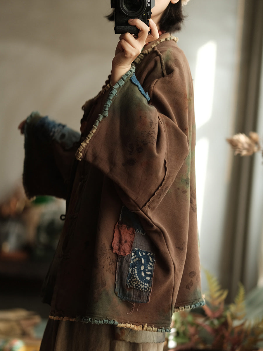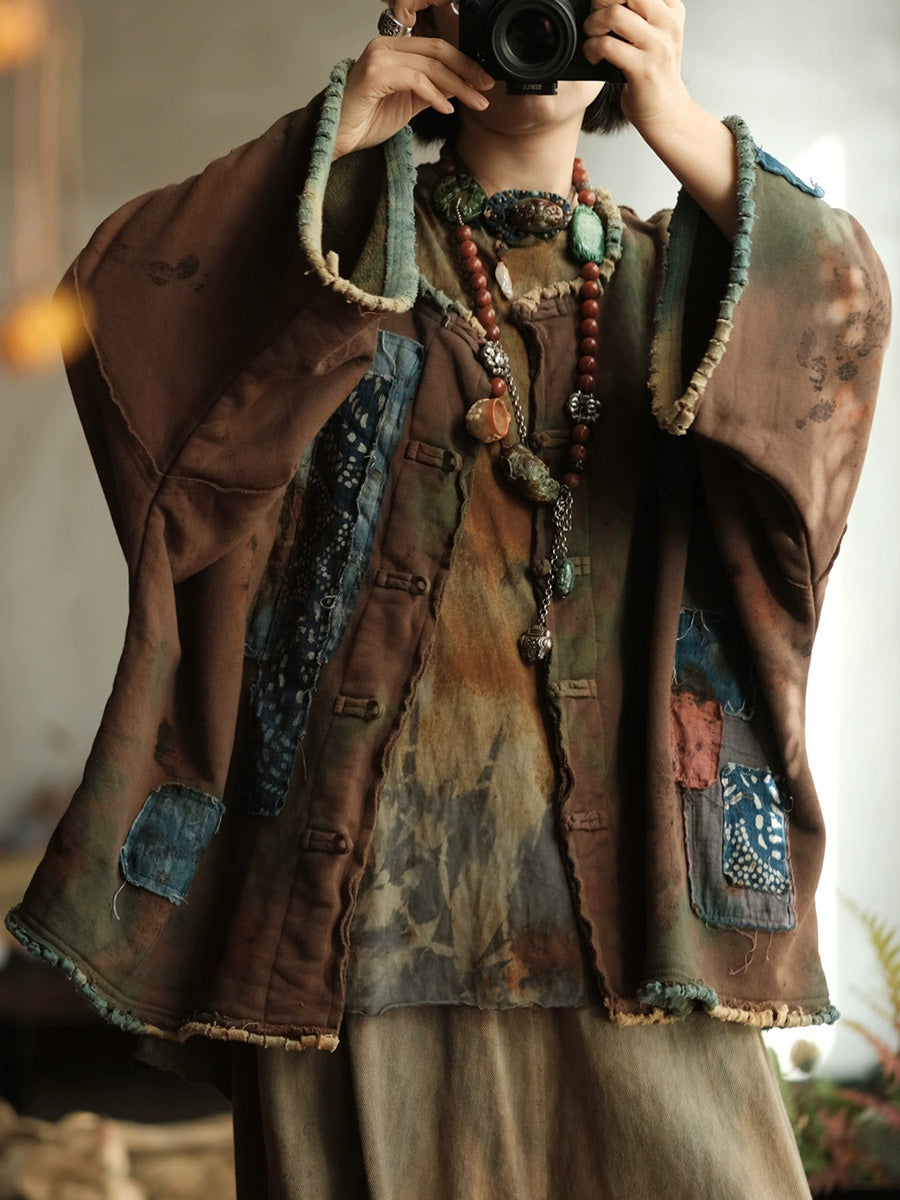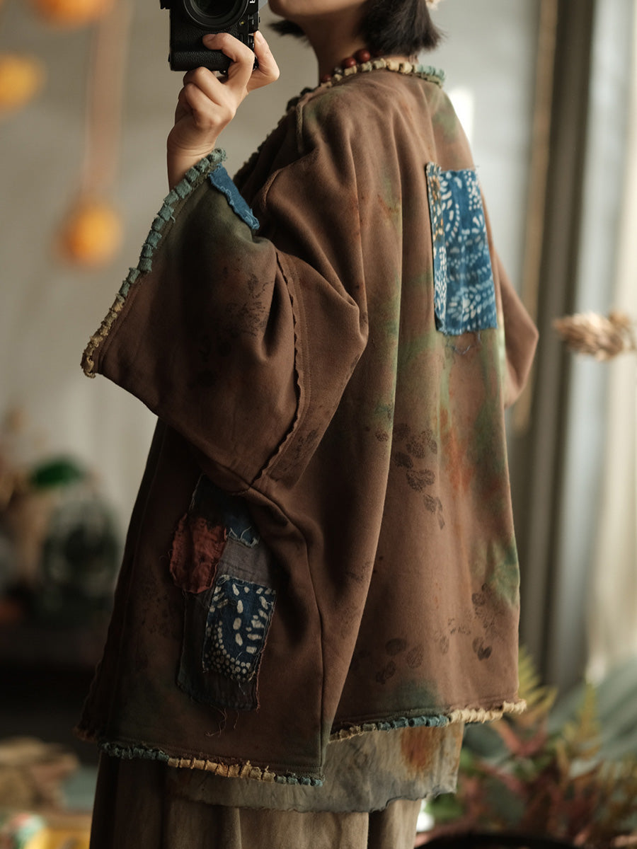 Dámský jarní vintage patchworkový kabát s výstřihem do O-neck