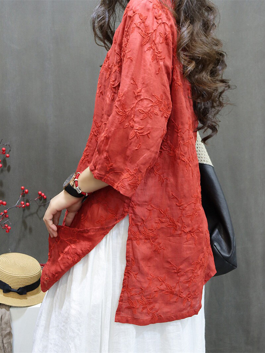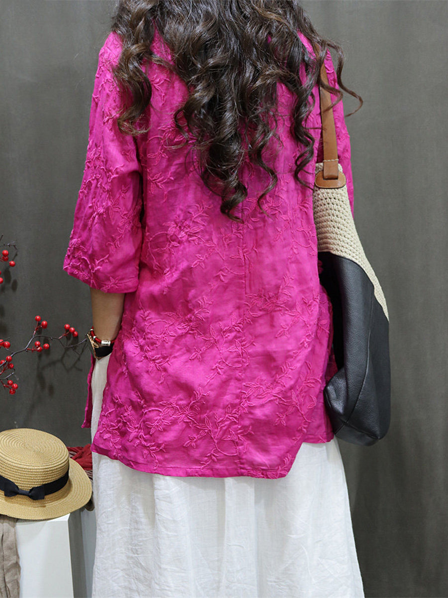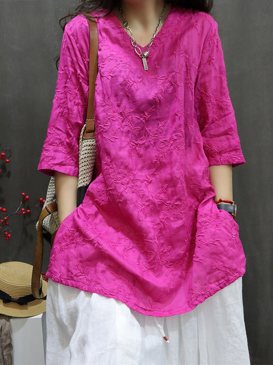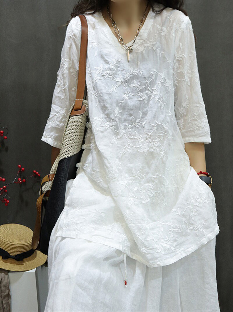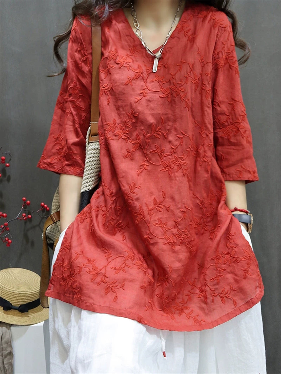 Dámská letní umělecká výšivka, 100% ramie, halenka s výstřihem do V