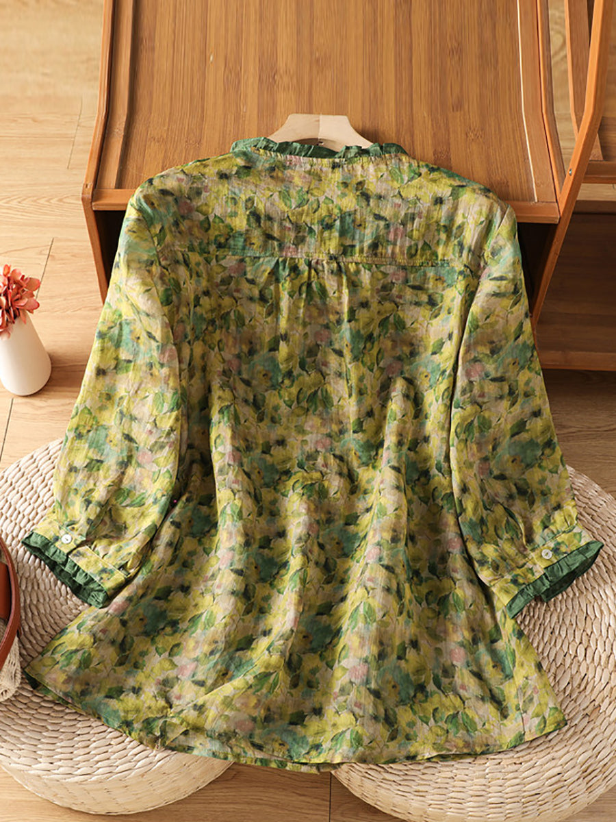 Dámská letní umělecká květinová halenka s výstřihem do O-neck