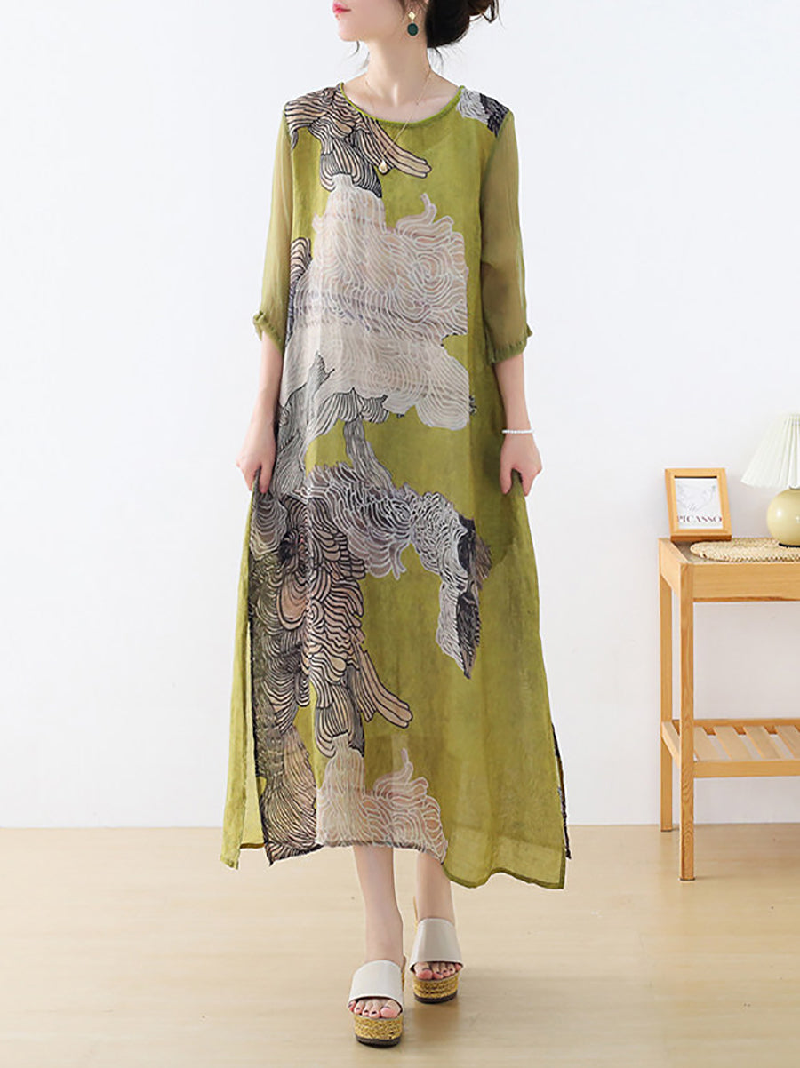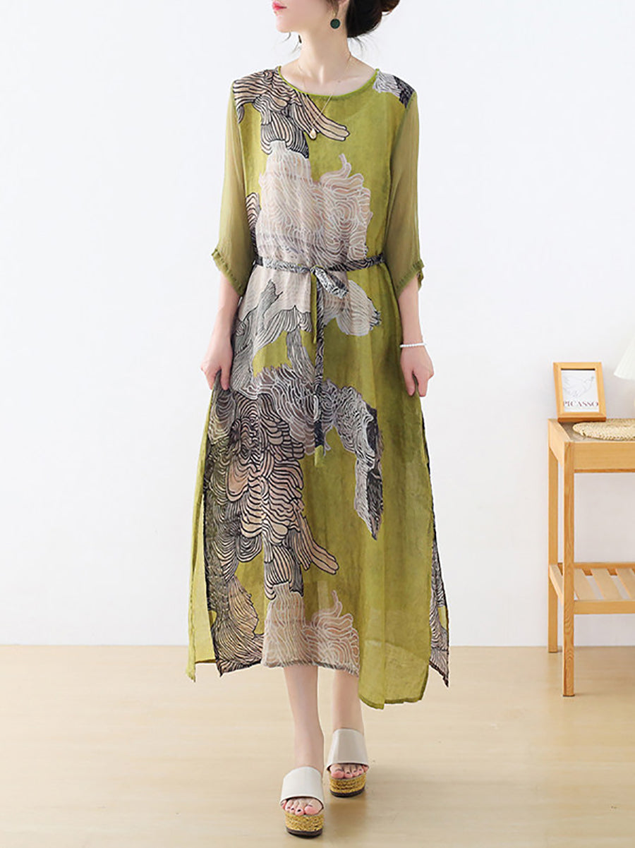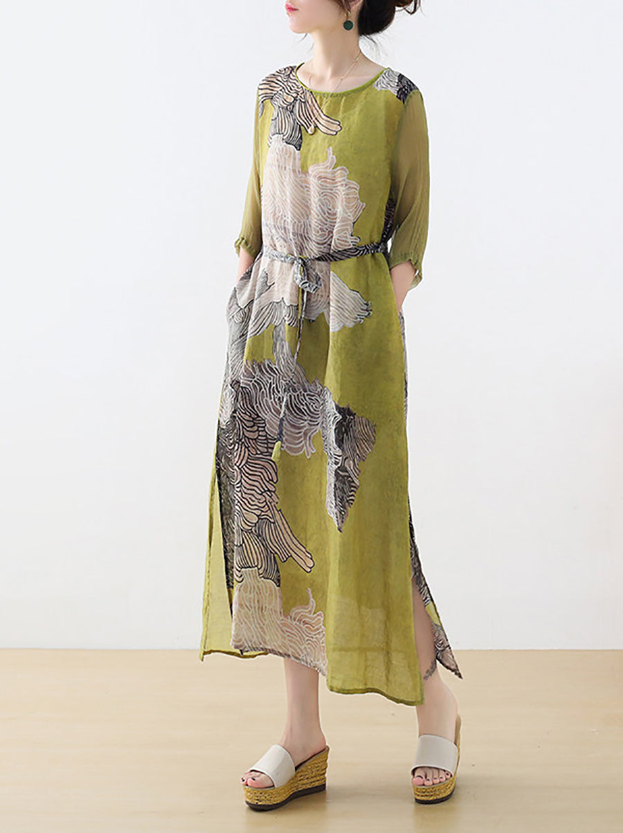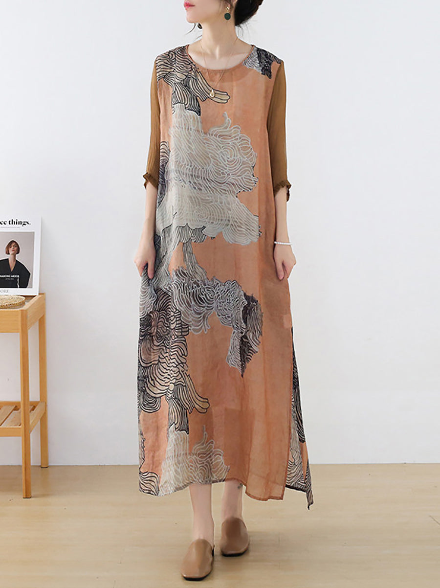 Dámské letní umělecké květinové šaty s výstřihem do V a výstřihem do V