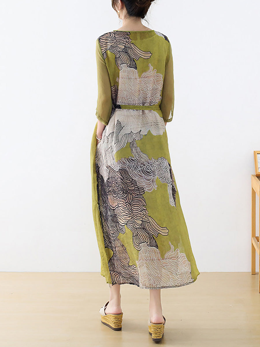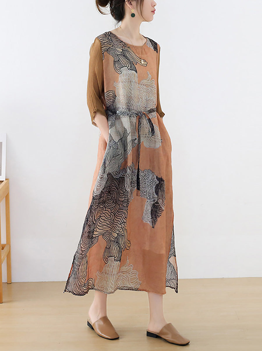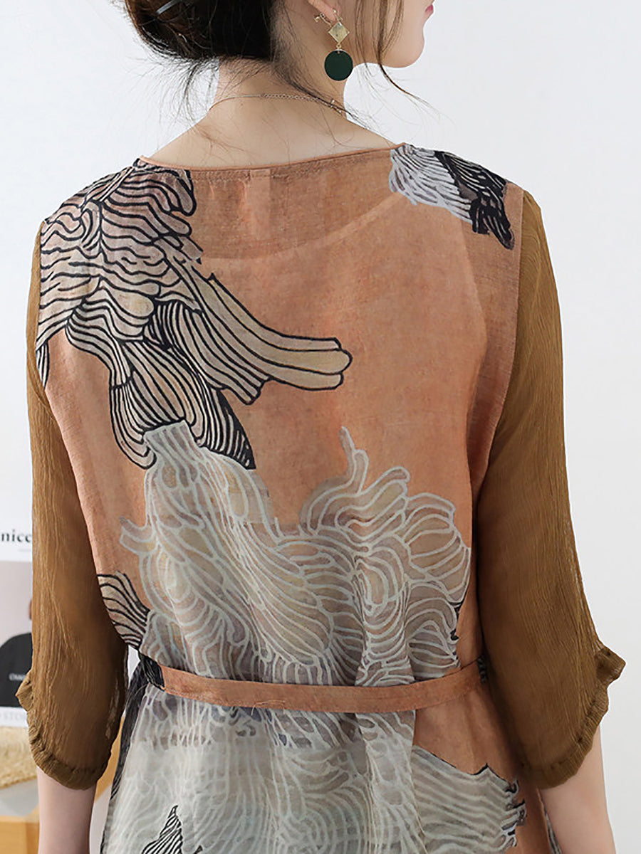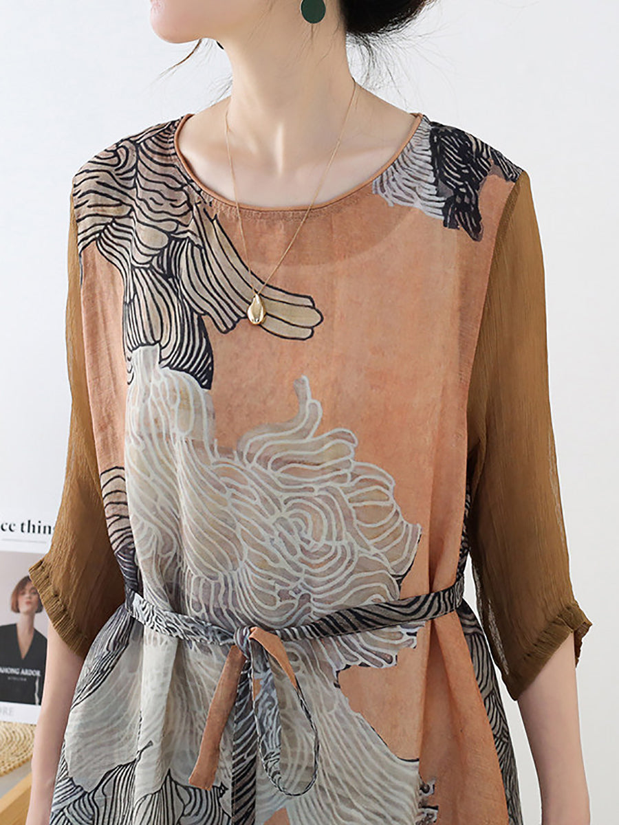 Dámské letní umělecké květinové šaty s výstřihem do V a výstřihem do V