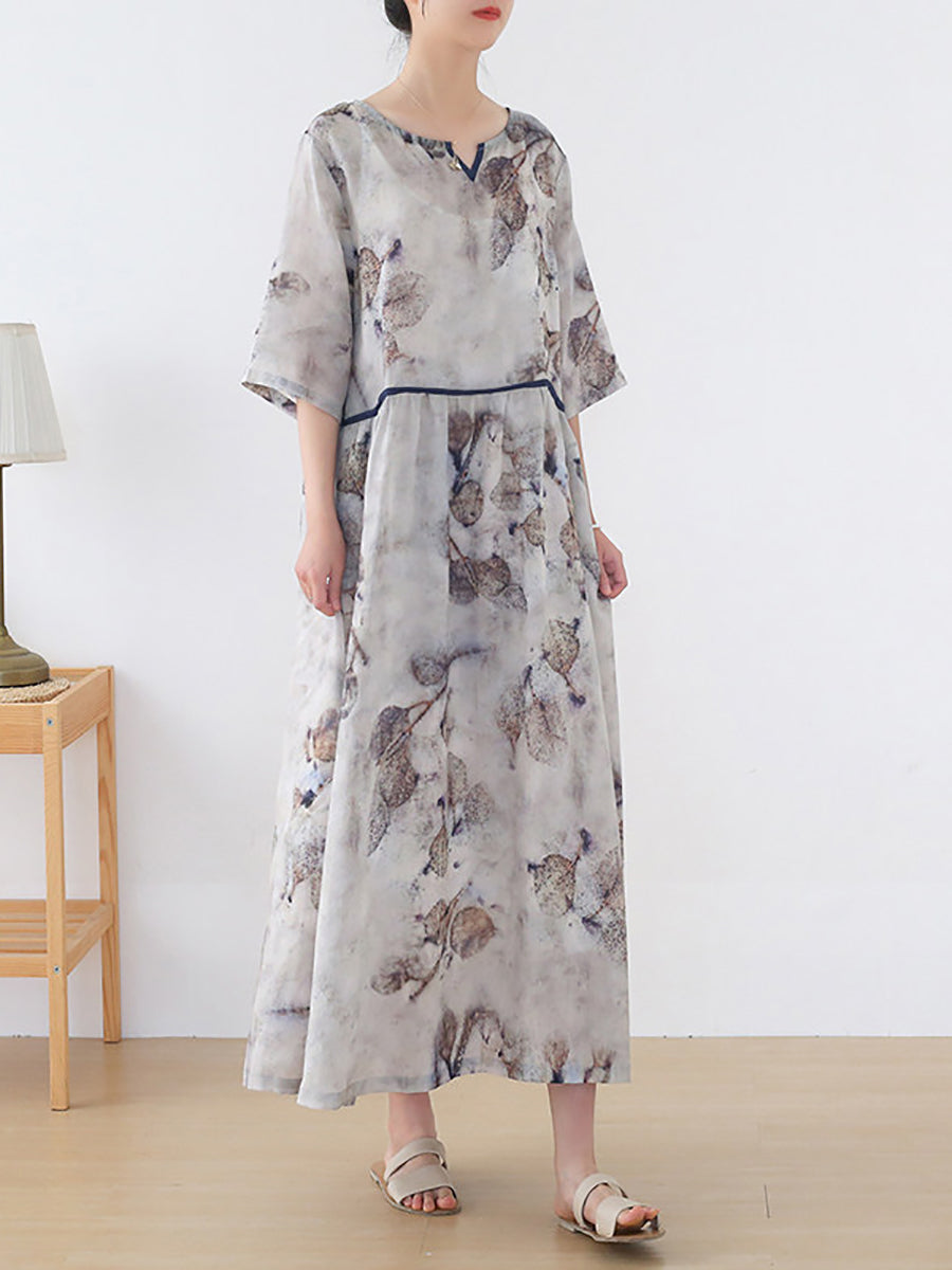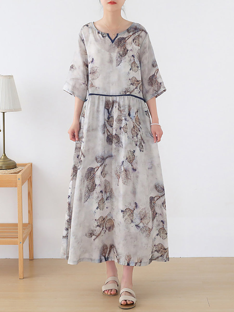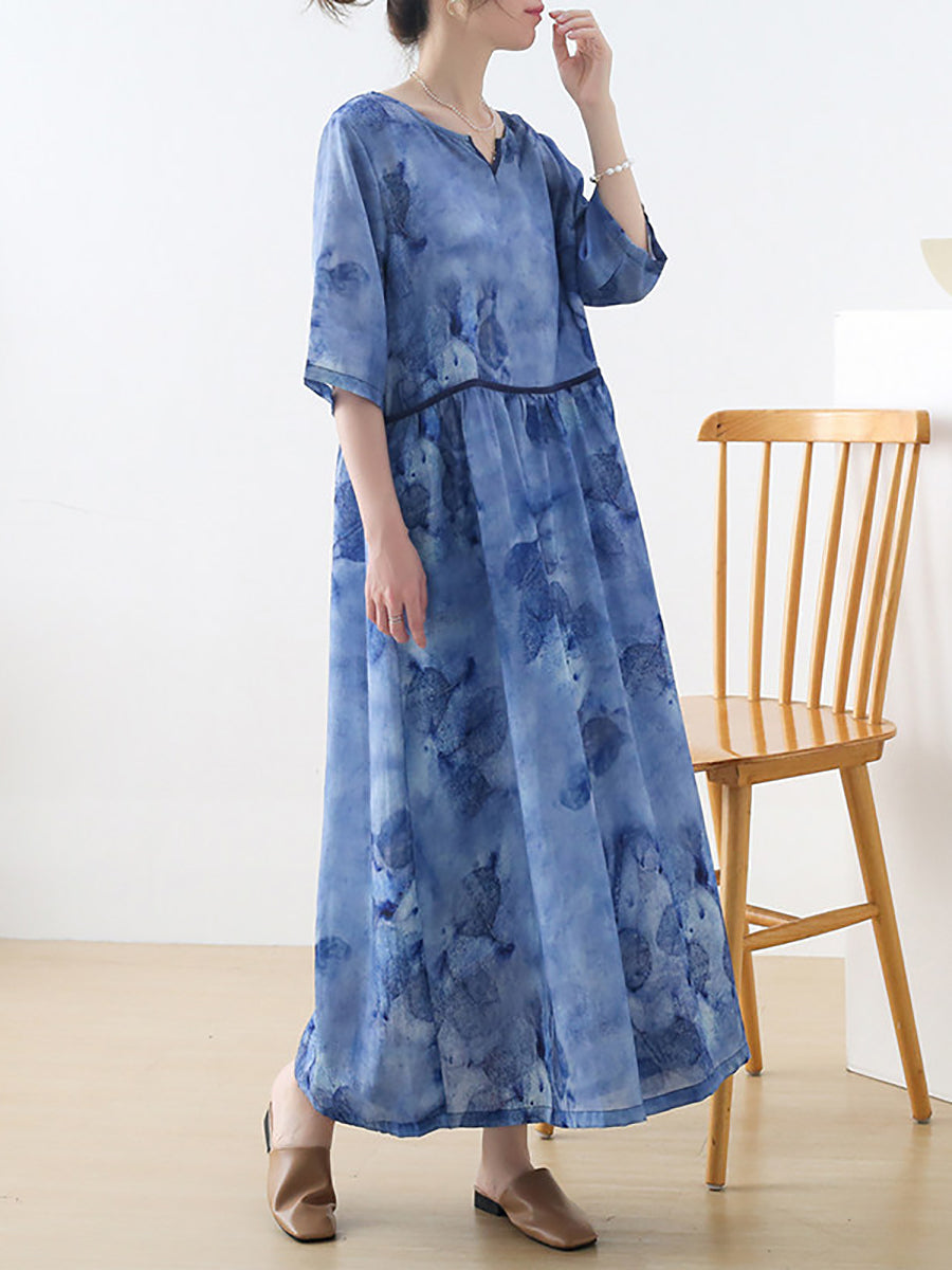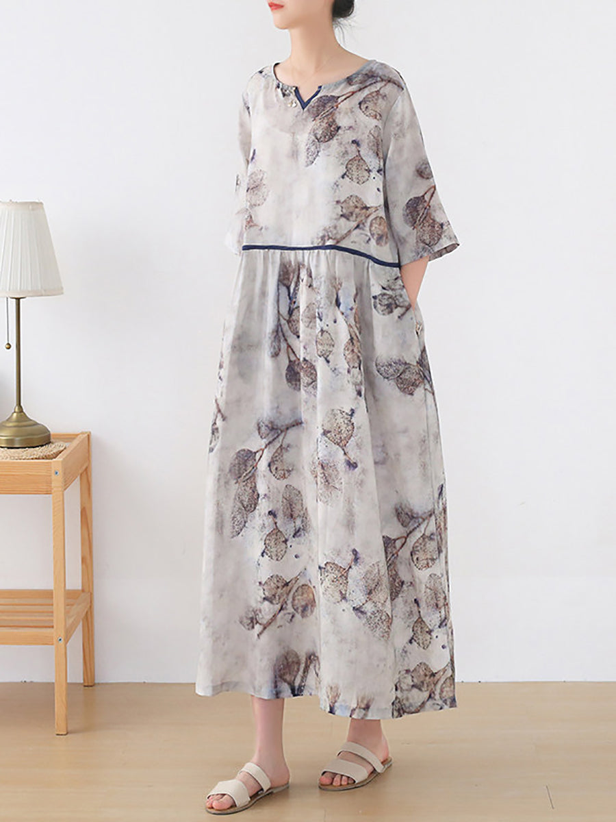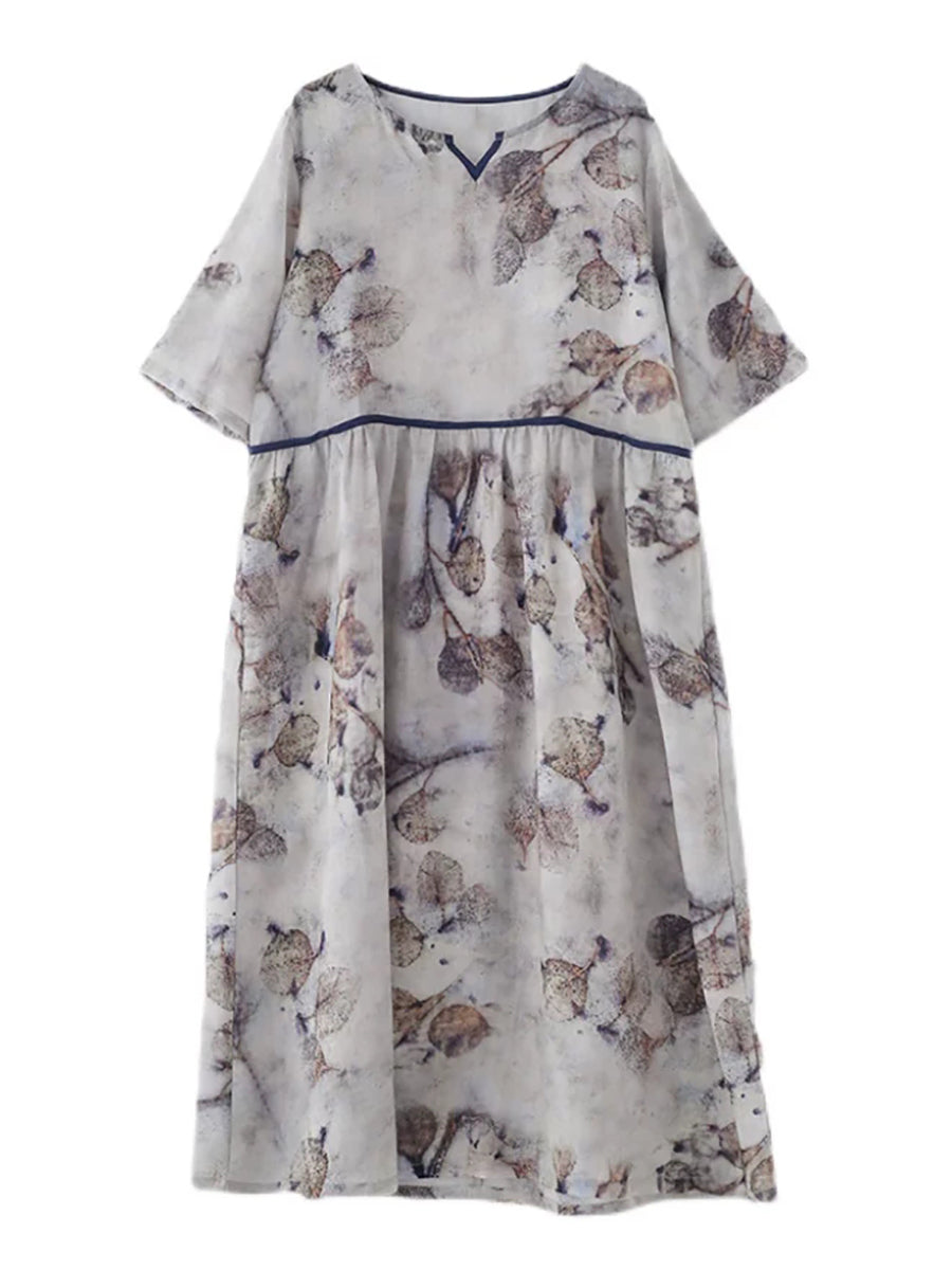 Dámské letní umělecké květinové šaty s výstřihem do V, 100% ramie