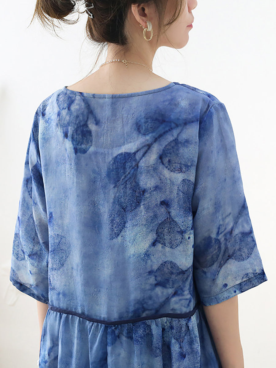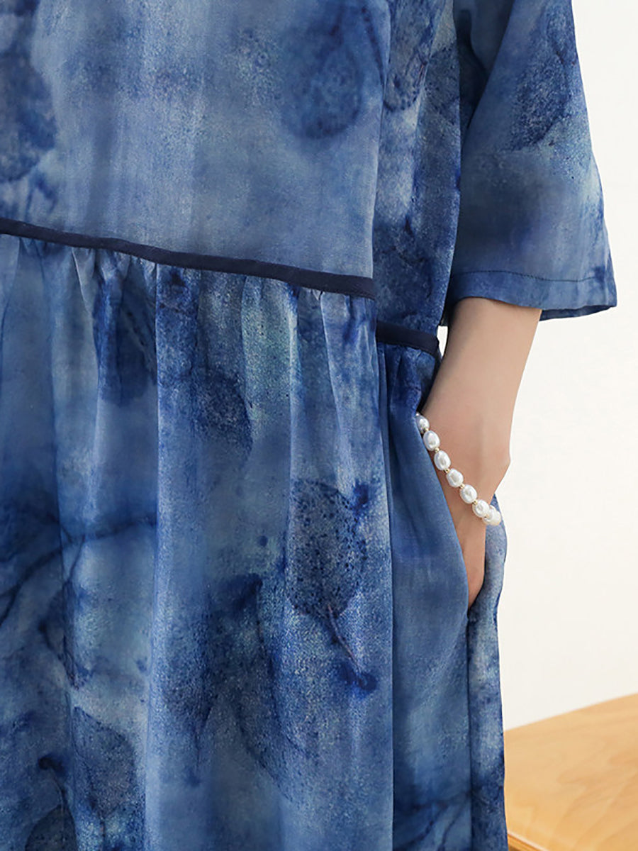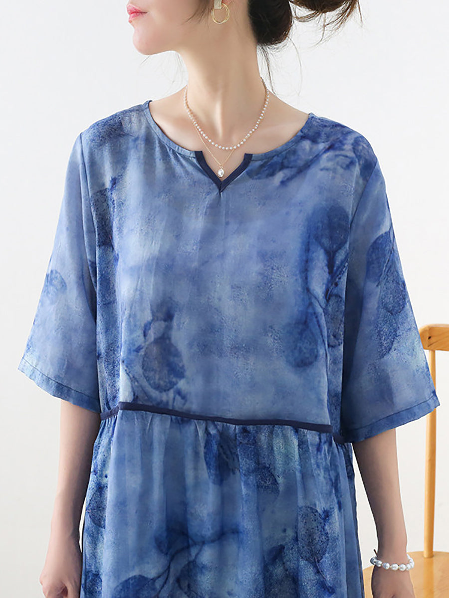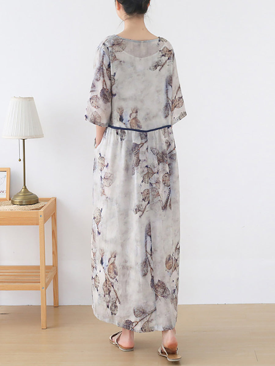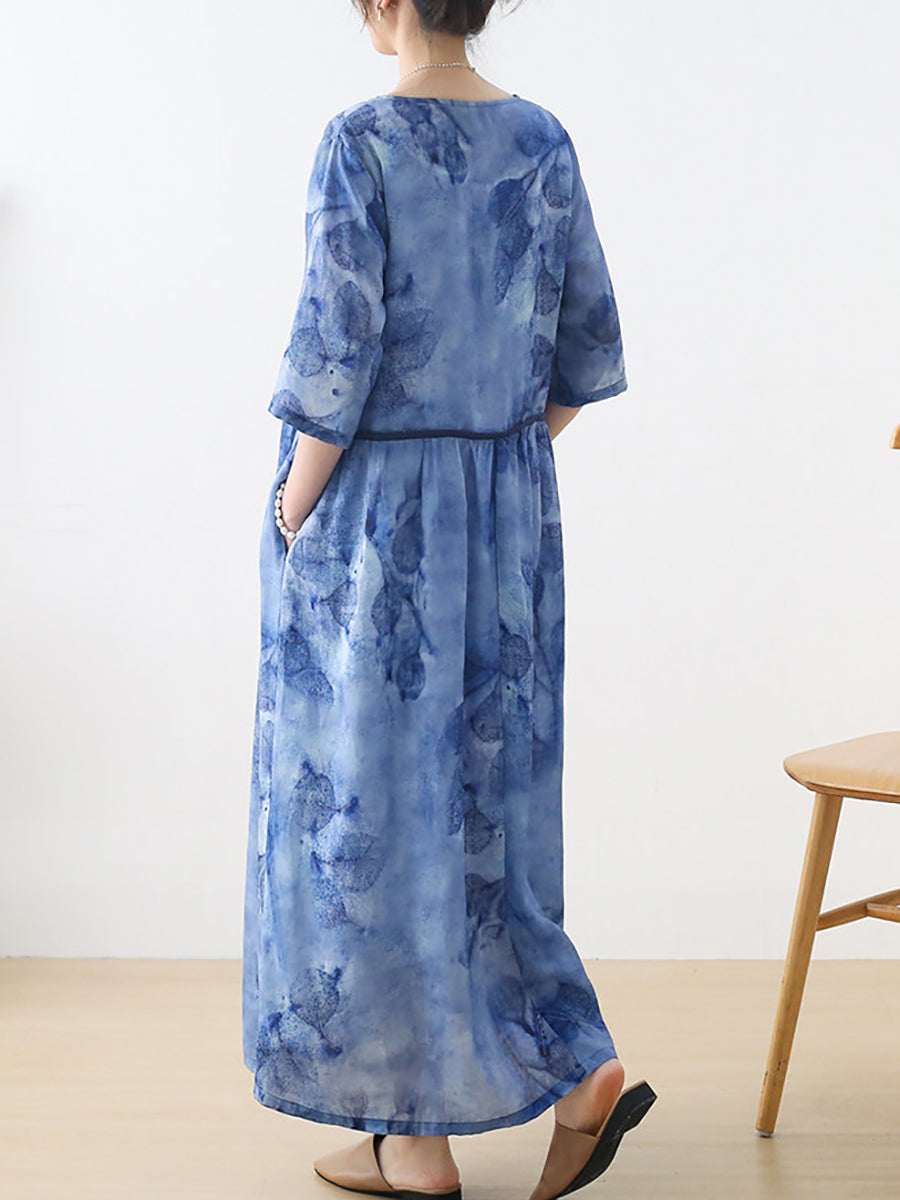 Dámské letní umělecké květinové šaty s výstřihem do V, 100% ramie