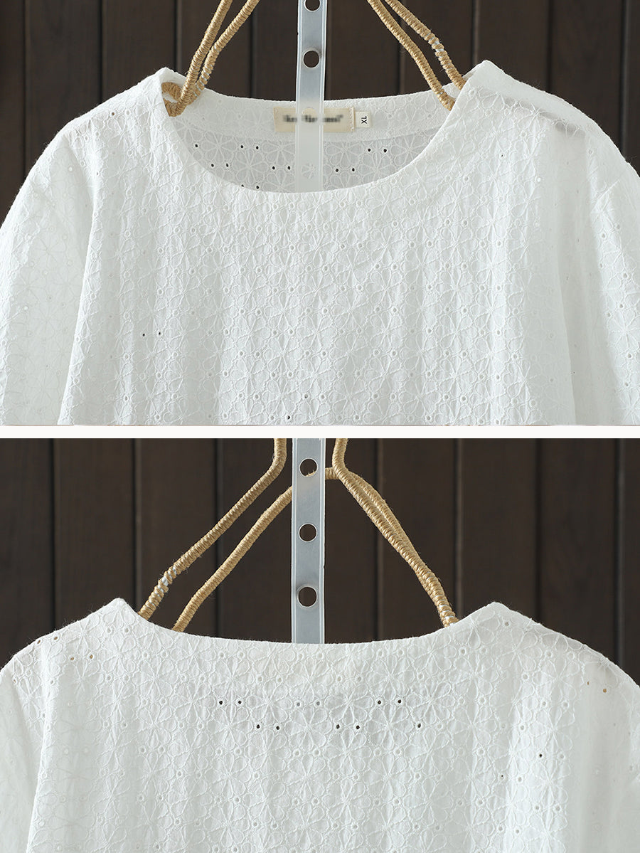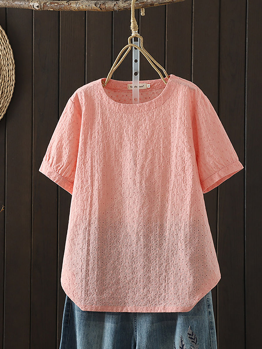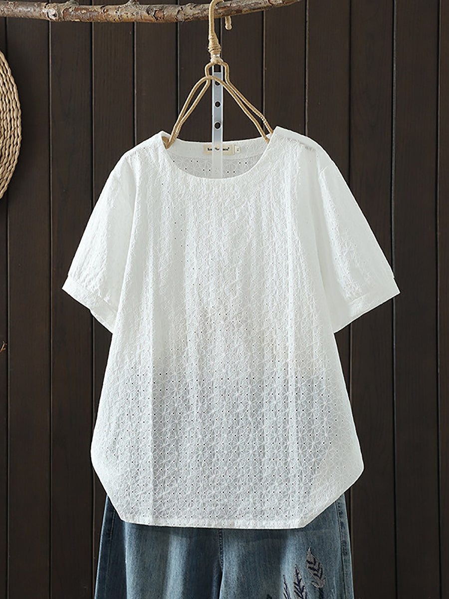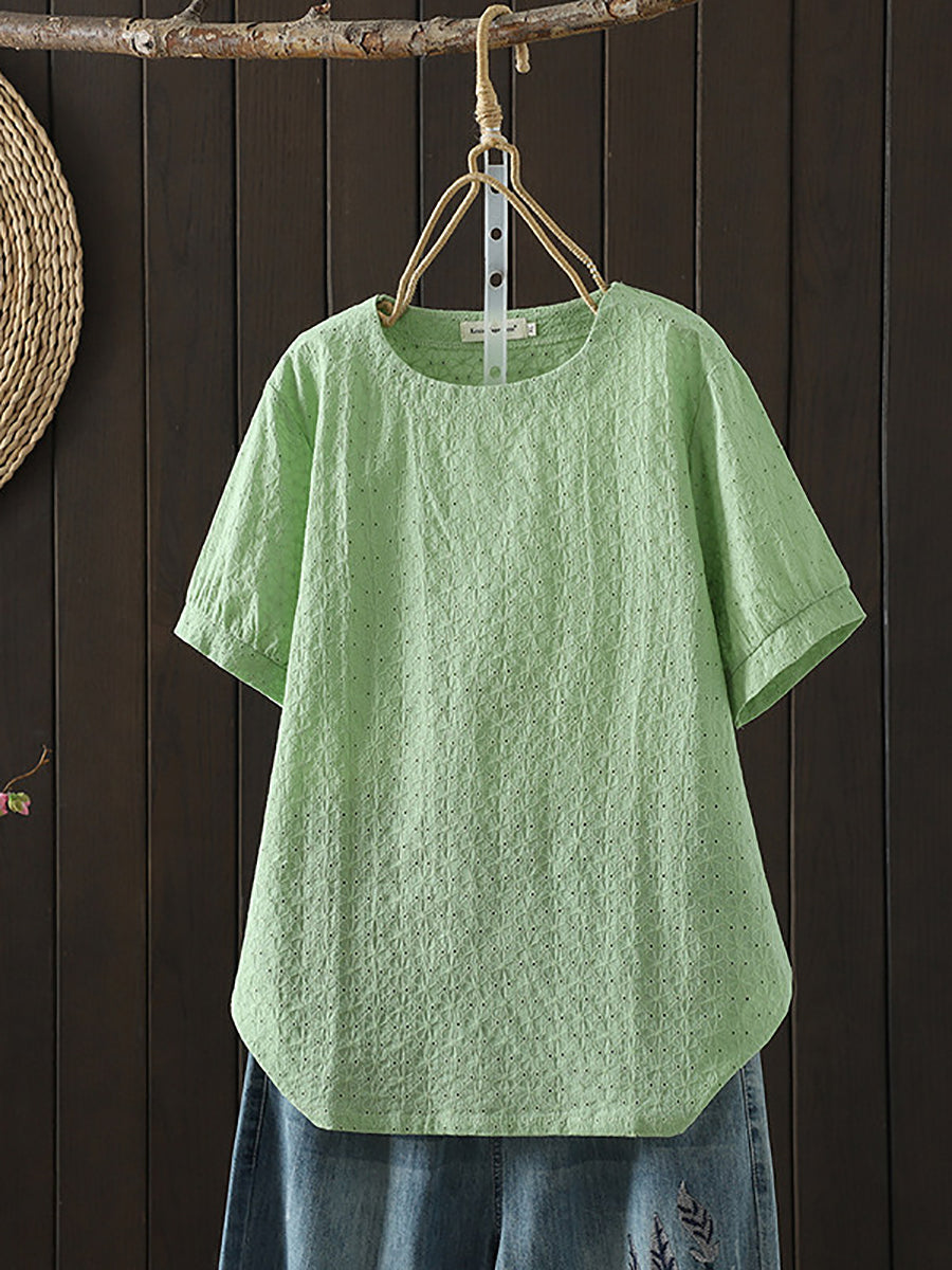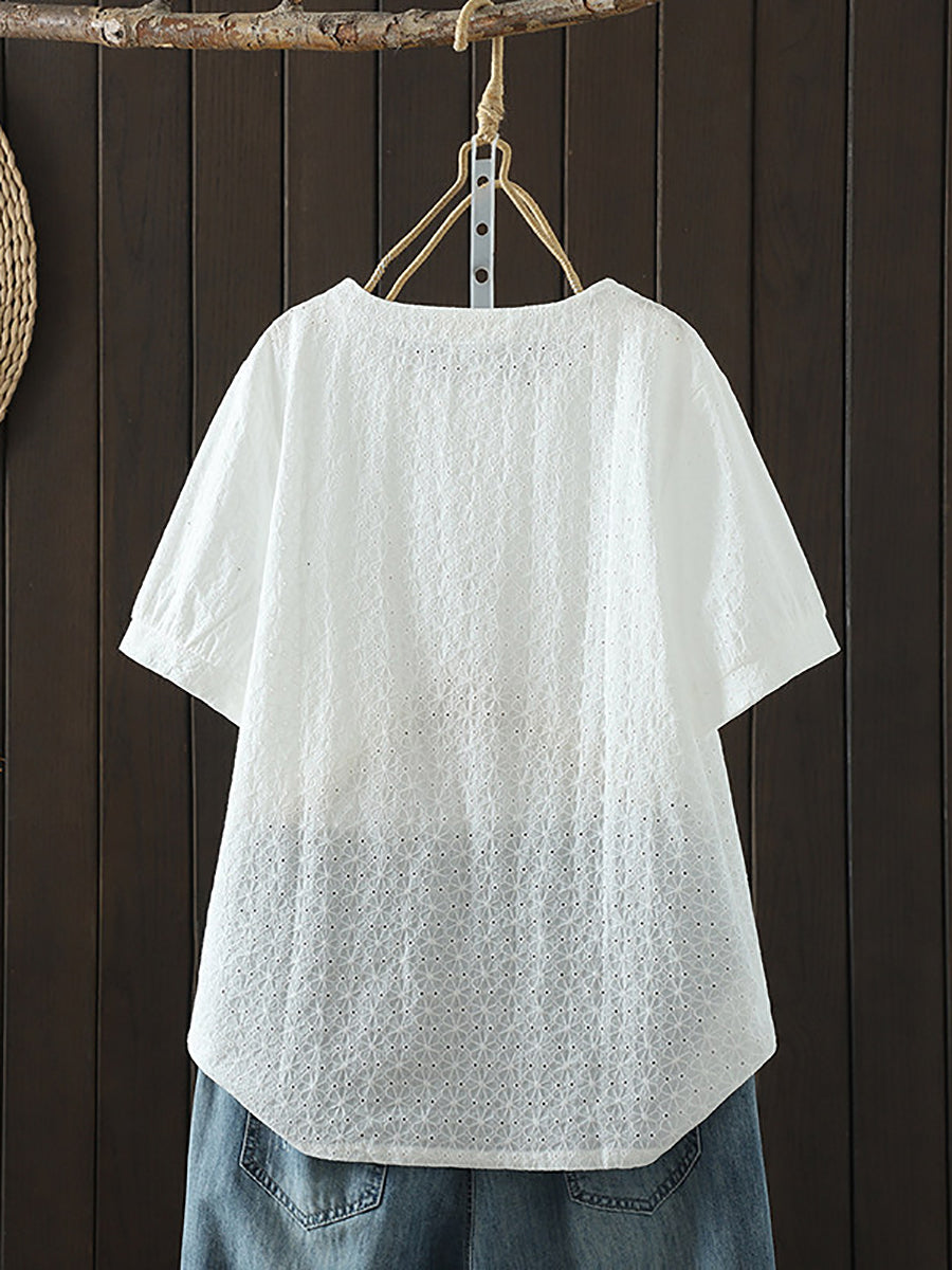 Dámská letní umělecká žakárová košile s výstřihem do O-neck, 100% bavlna