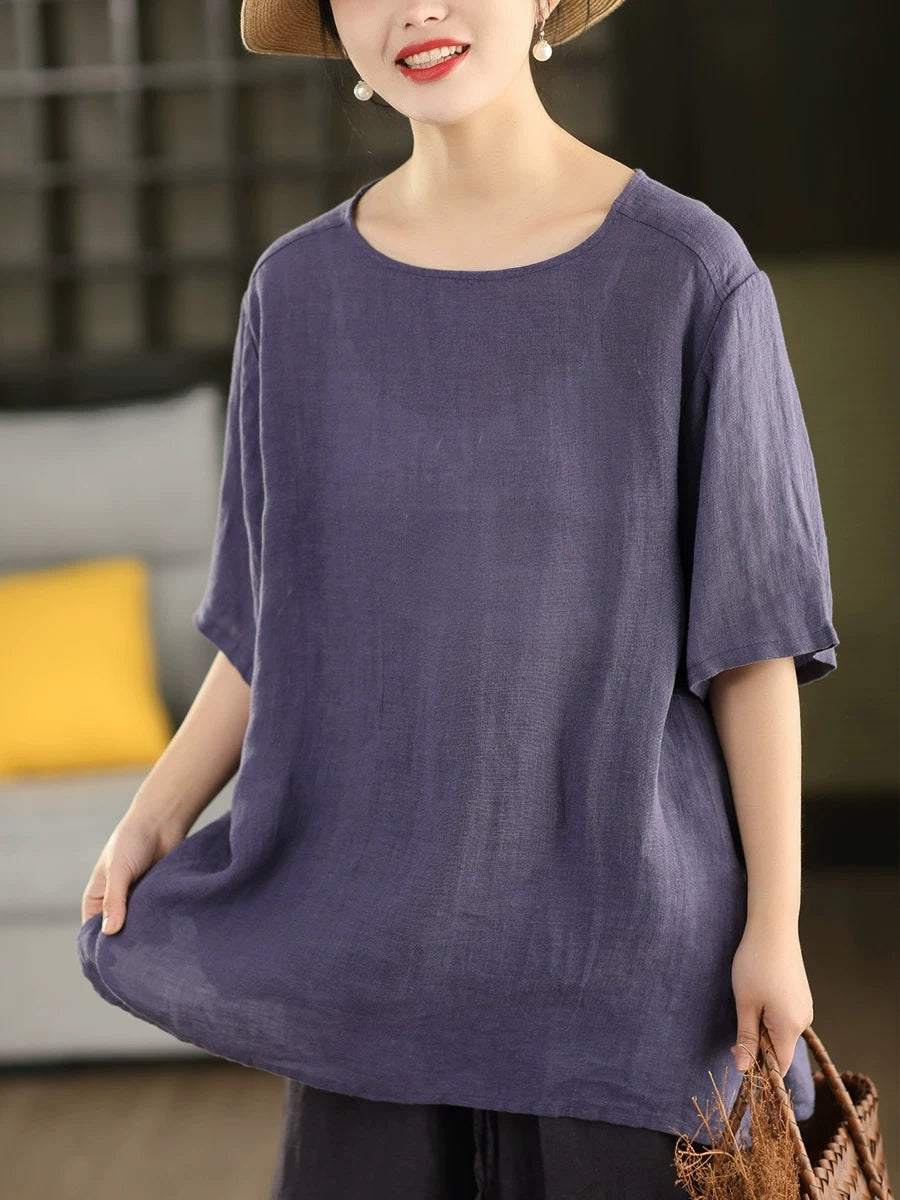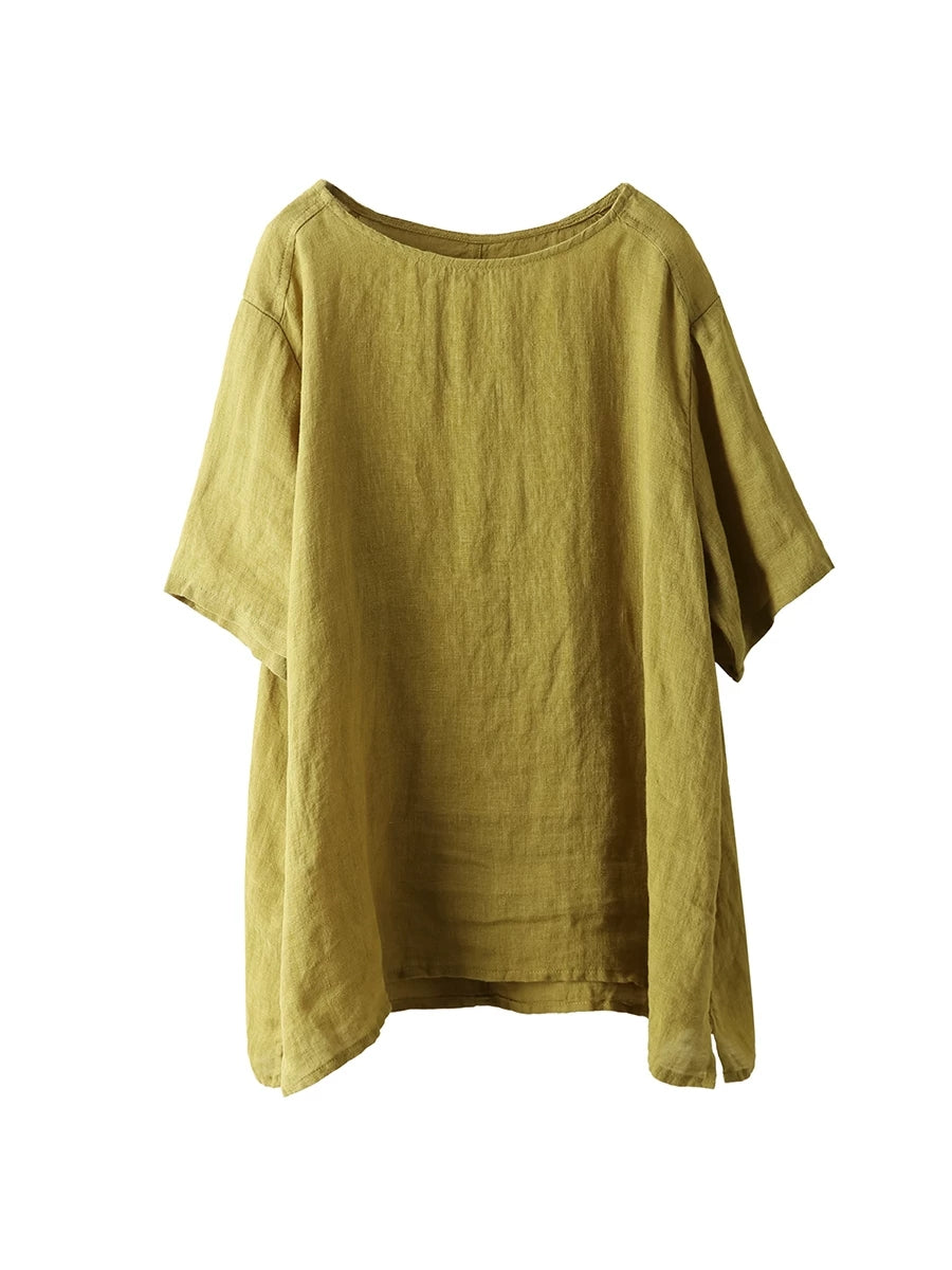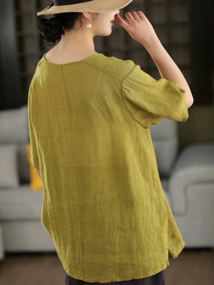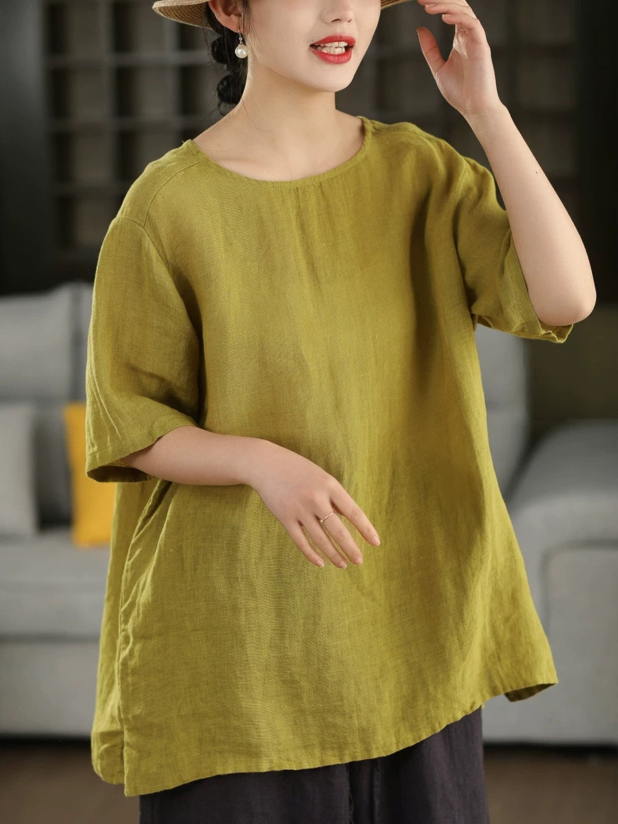 Dámská letní umělecká halenka z čistých barev, 100% lněný vzor