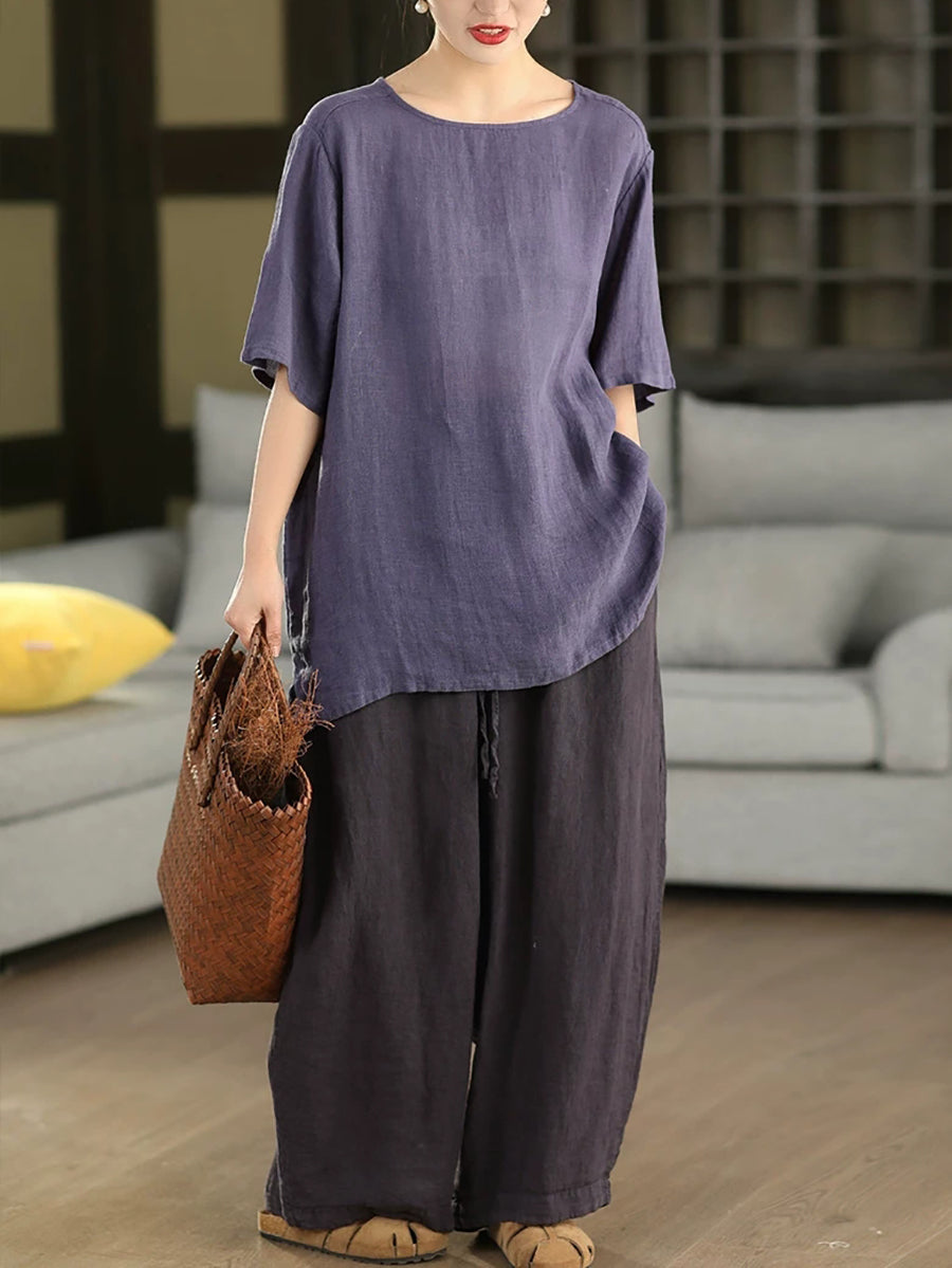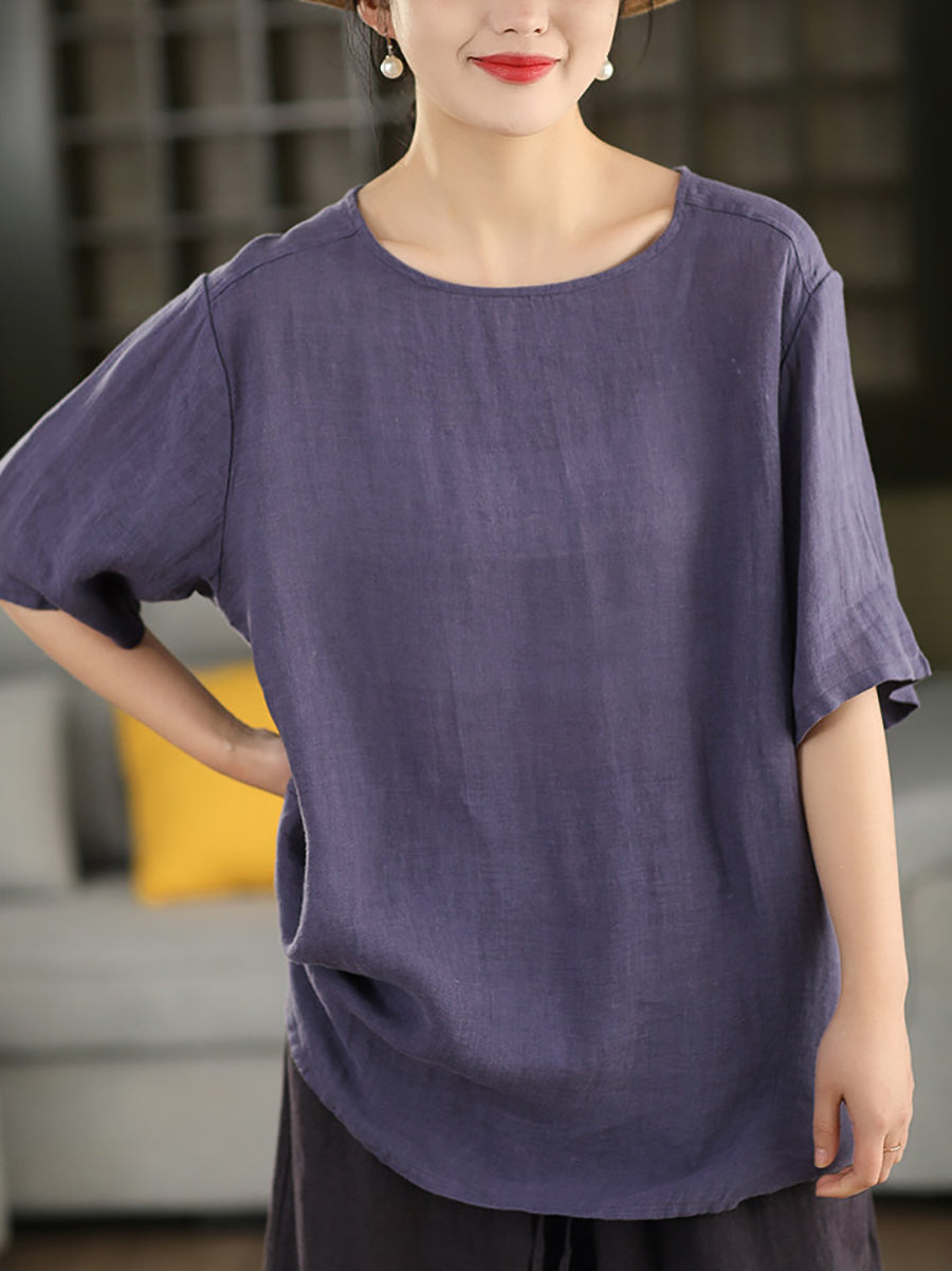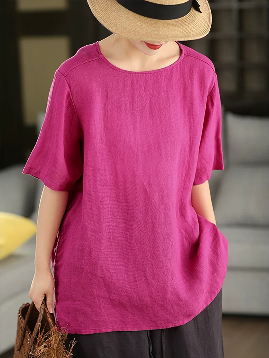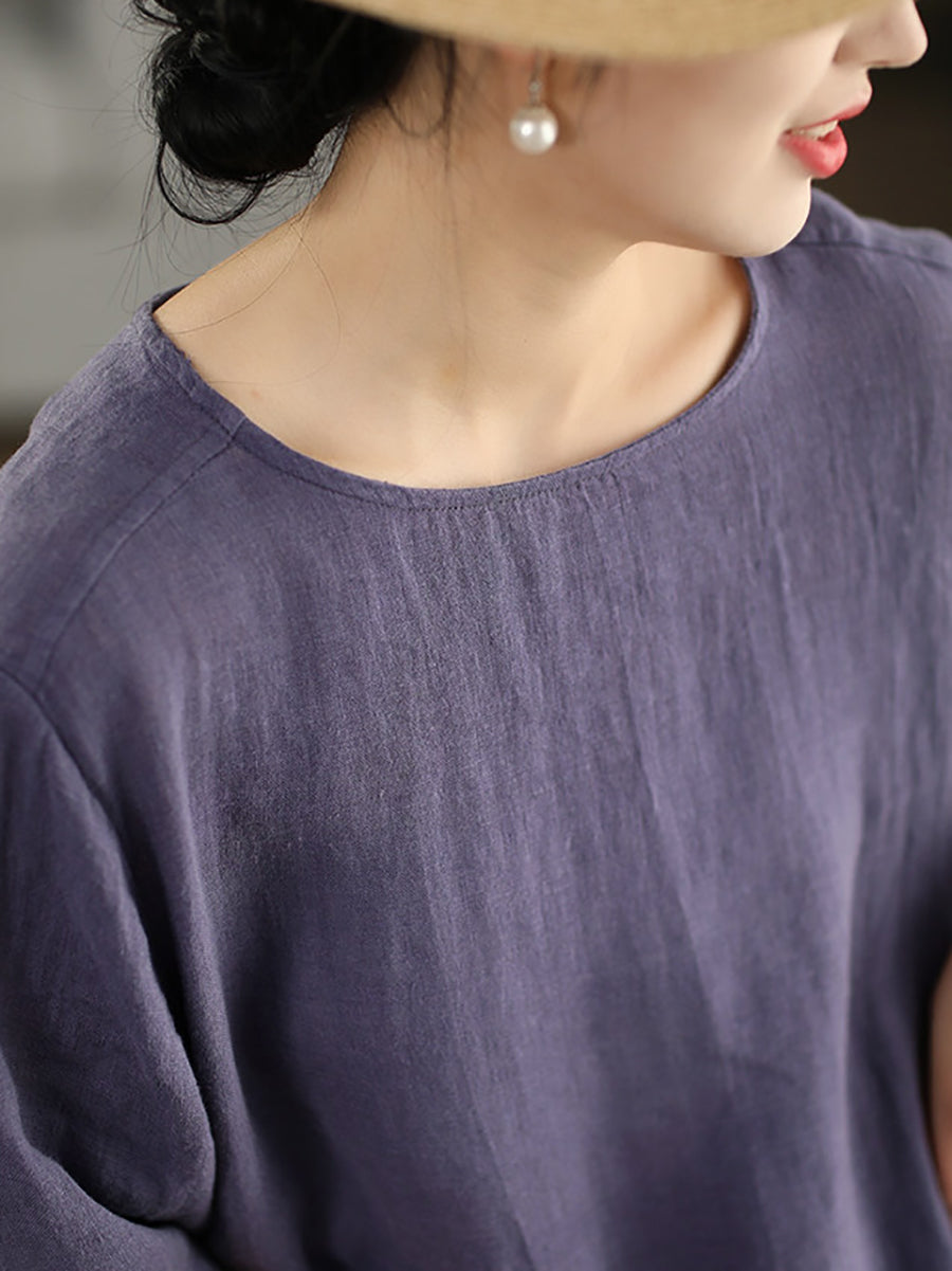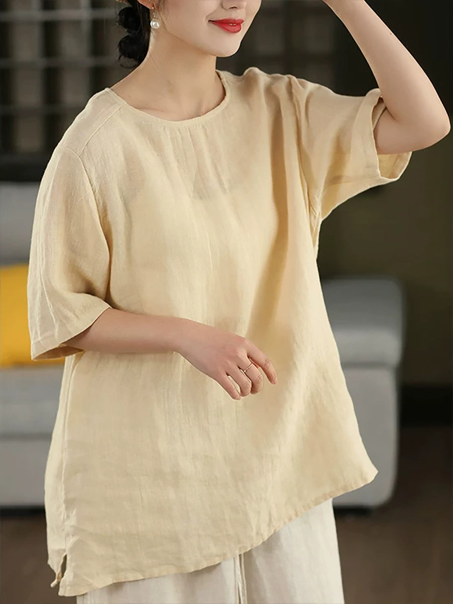 Dámská letní umělecká halenka z čistých barev, 100% lněný vzor