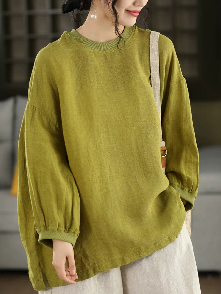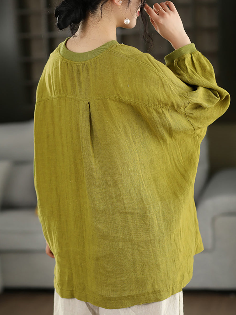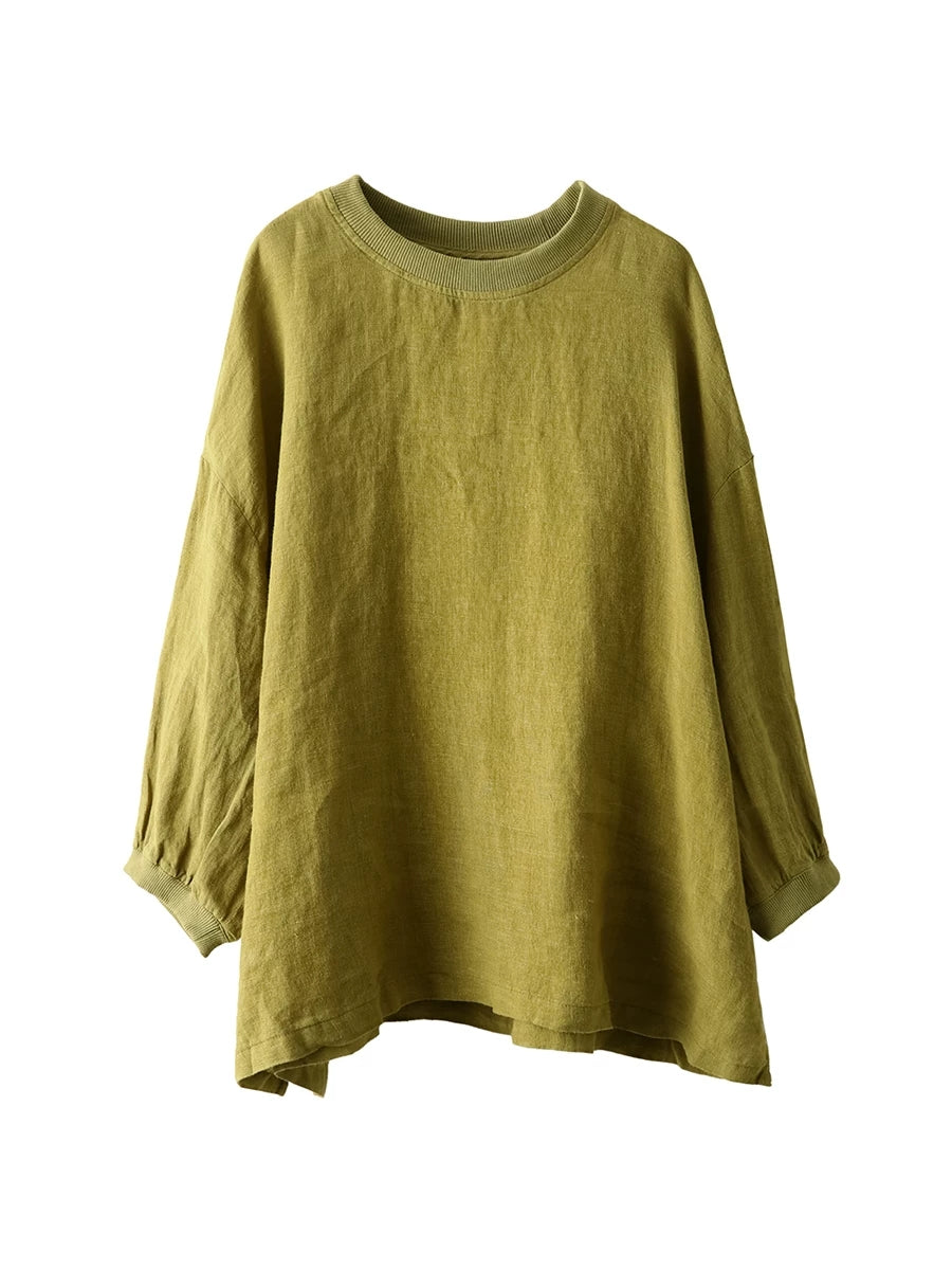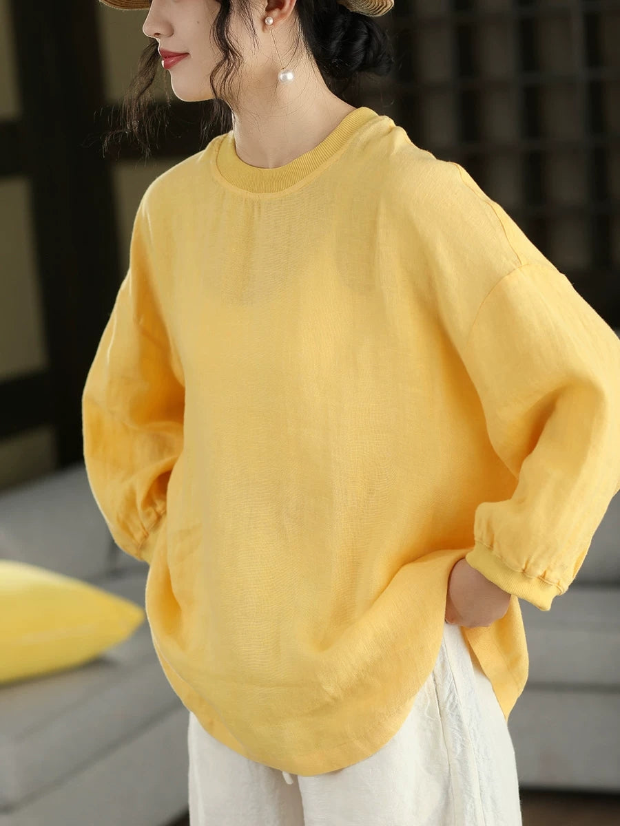 Dámská letní umělecká halenka z čistých barev, 100% lněný vzor