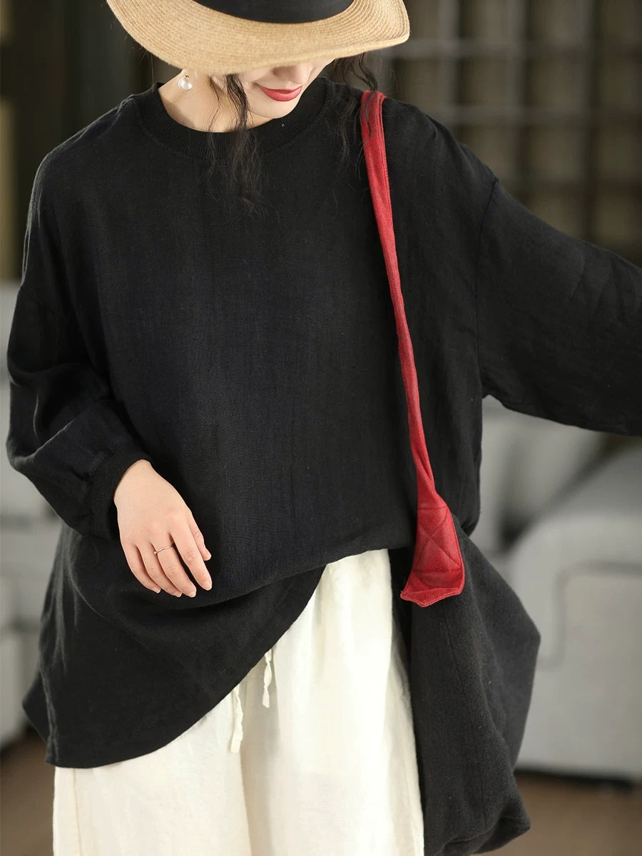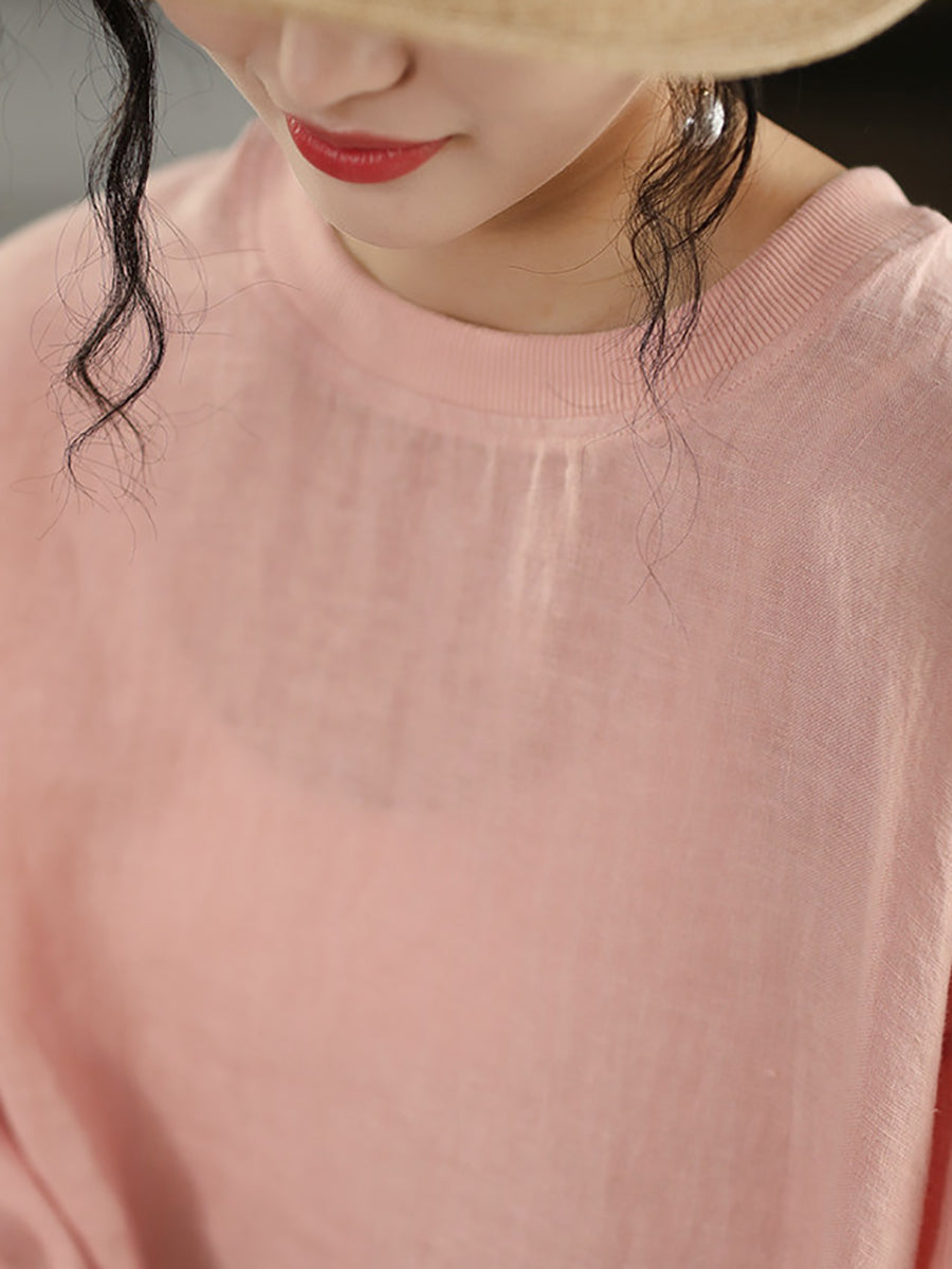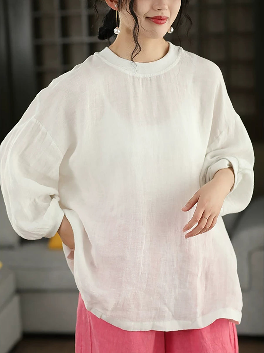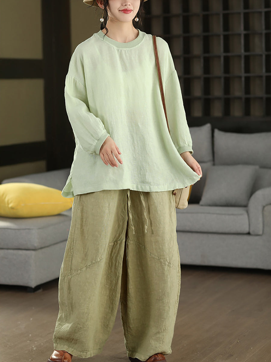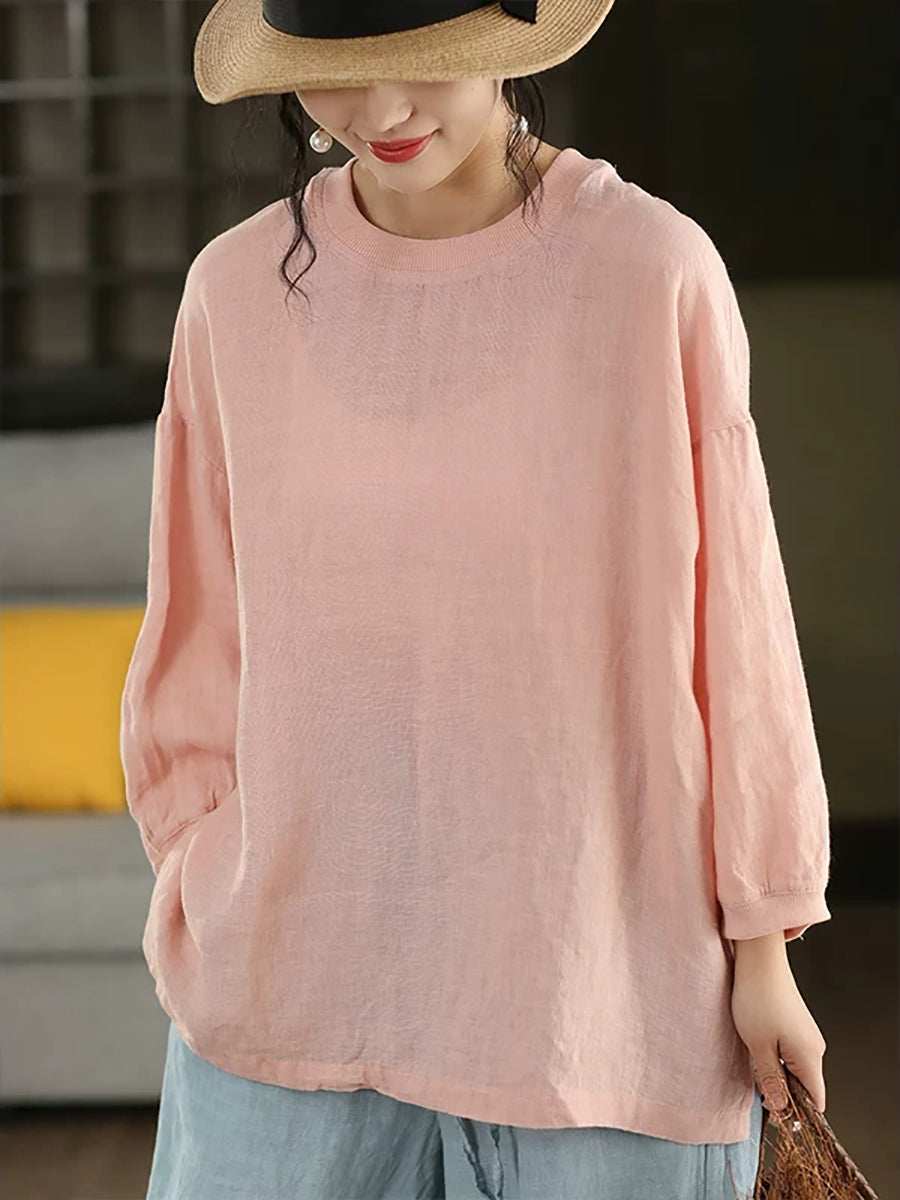 Dámská letní umělecká halenka z čistých barev, 100% lněný vzor