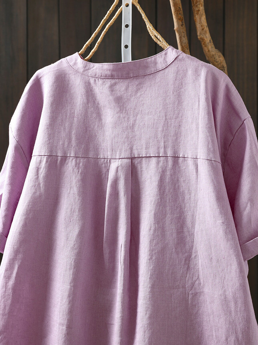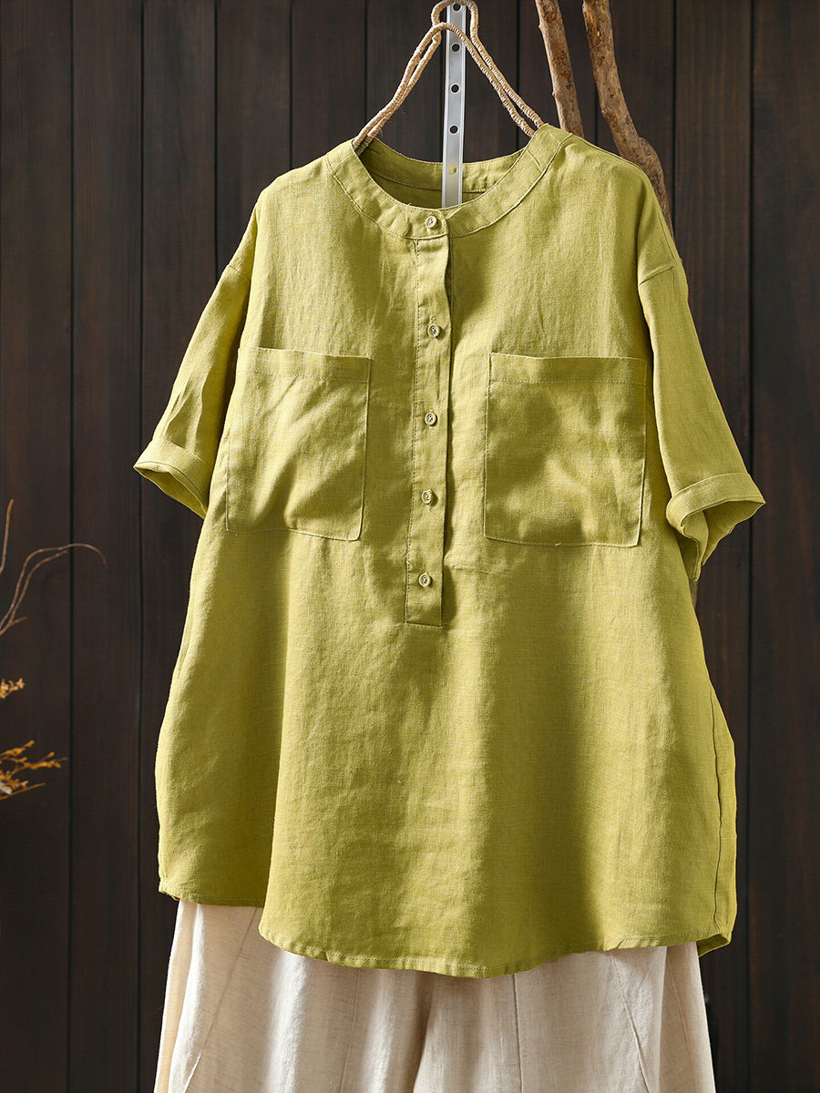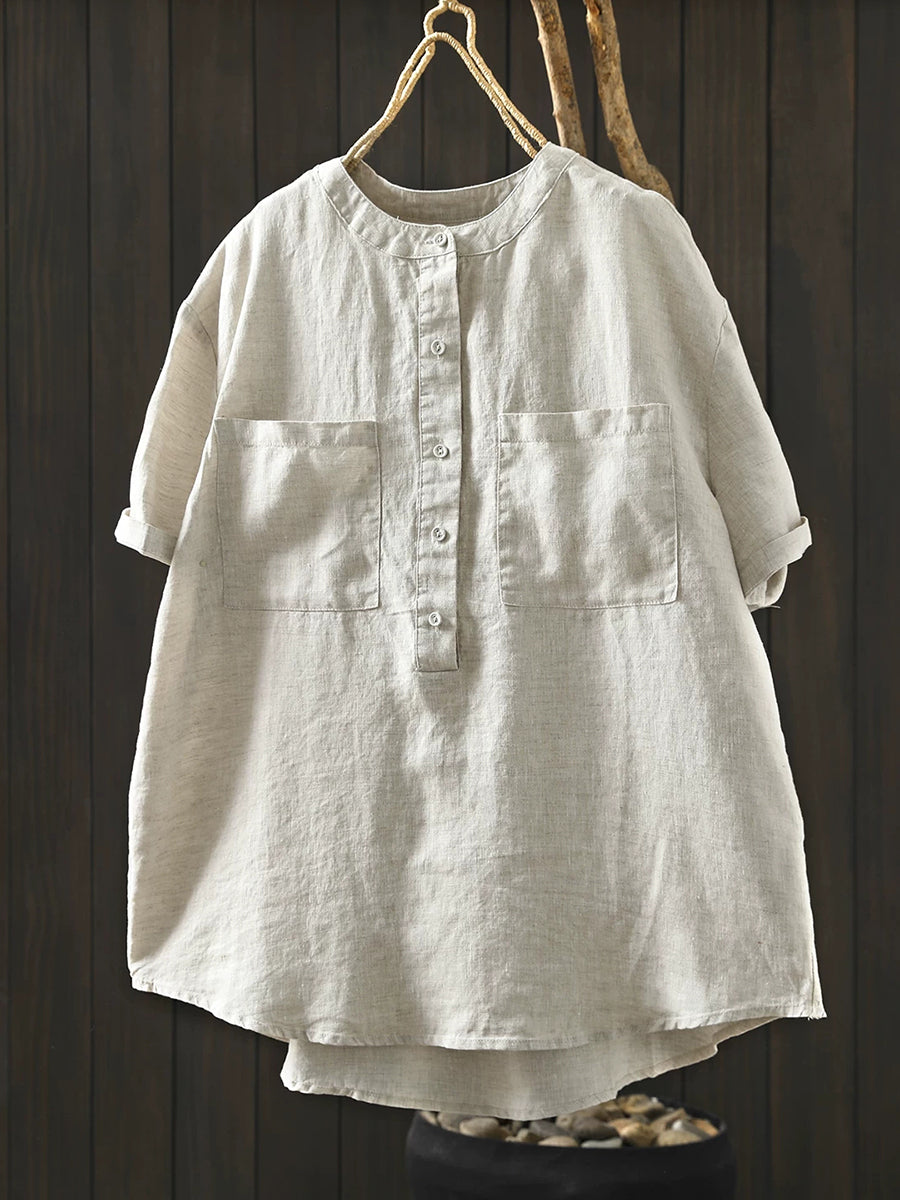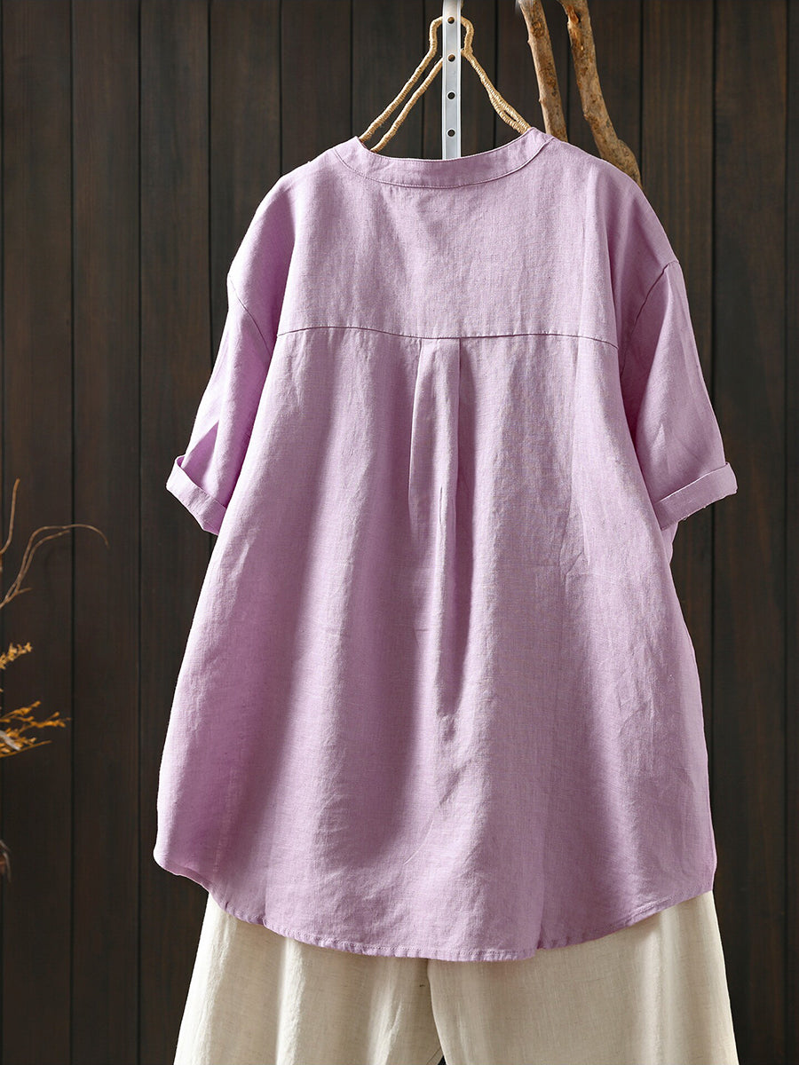 Dámská letní umělecká halenka z čistých barev, 100% lněný vzor