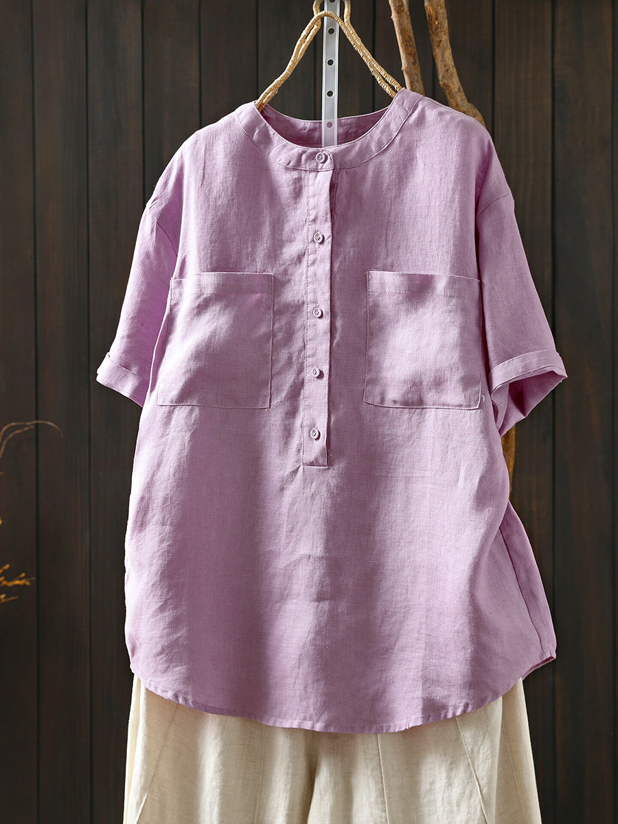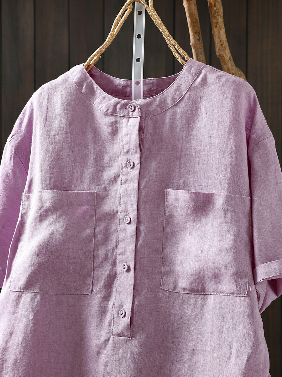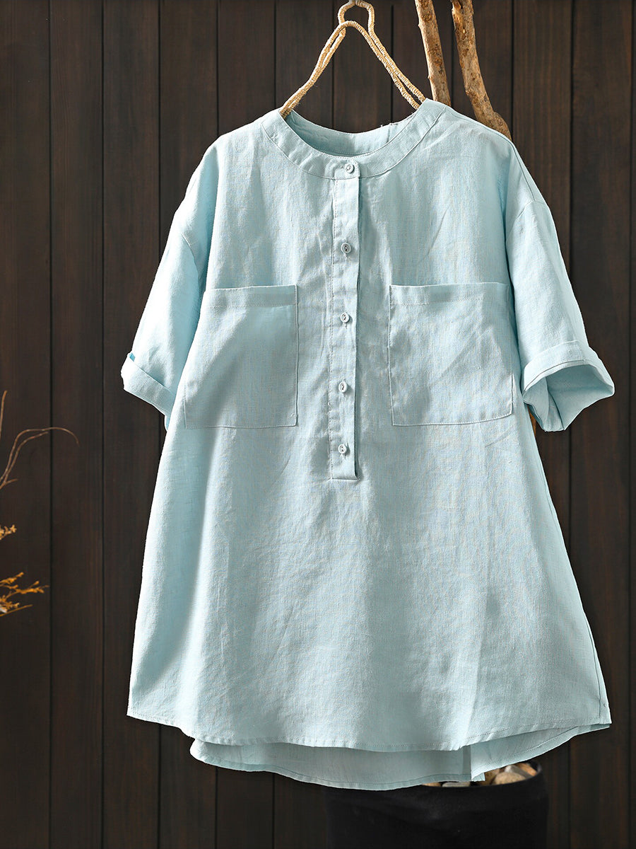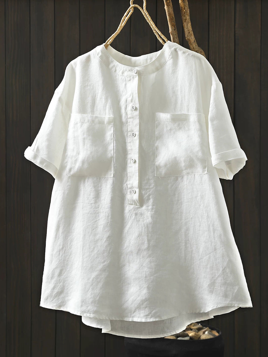 Dámská letní umělecká halenka z čistých barev, 100% lněný vzor