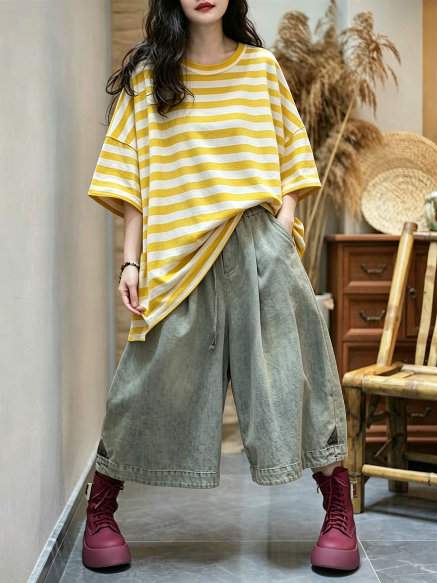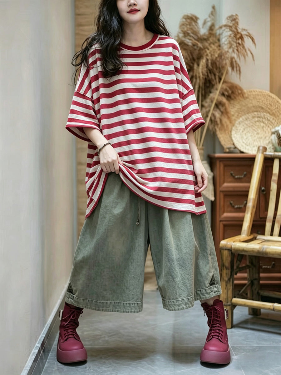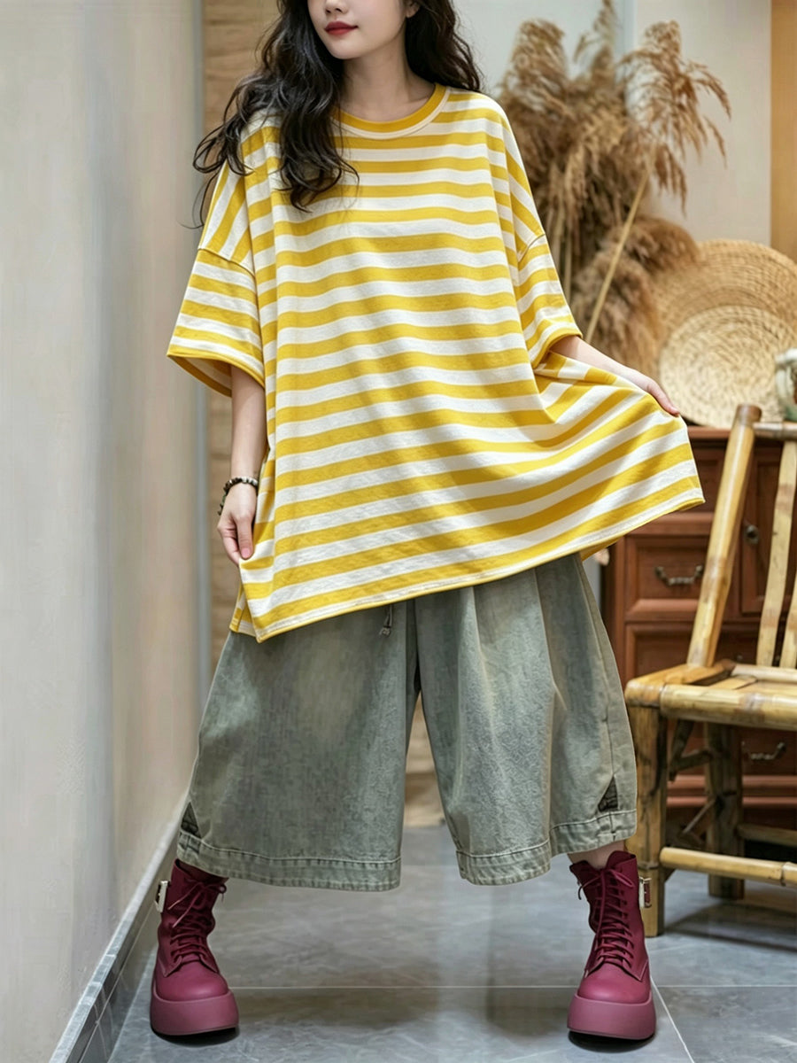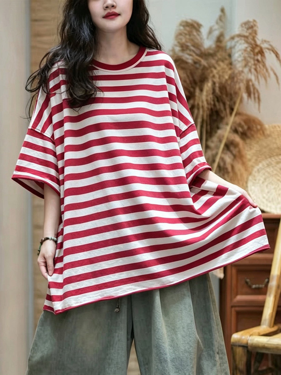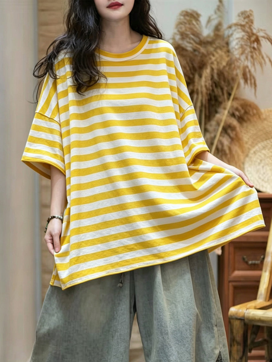 Dámské letní ležérní pruhované tričko s výstřihem do O-neck