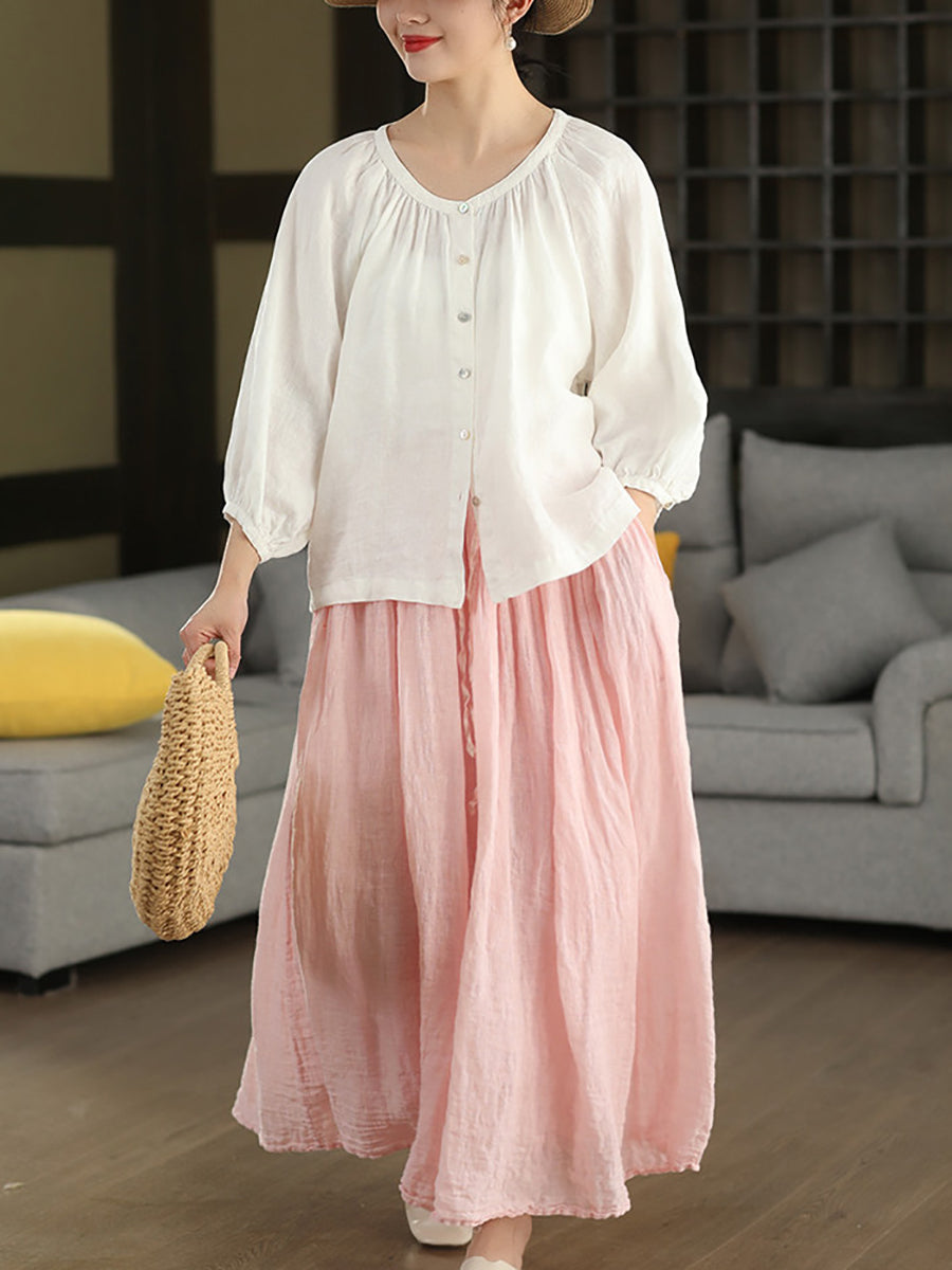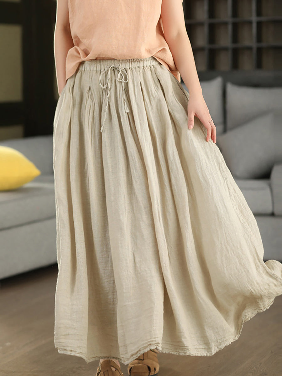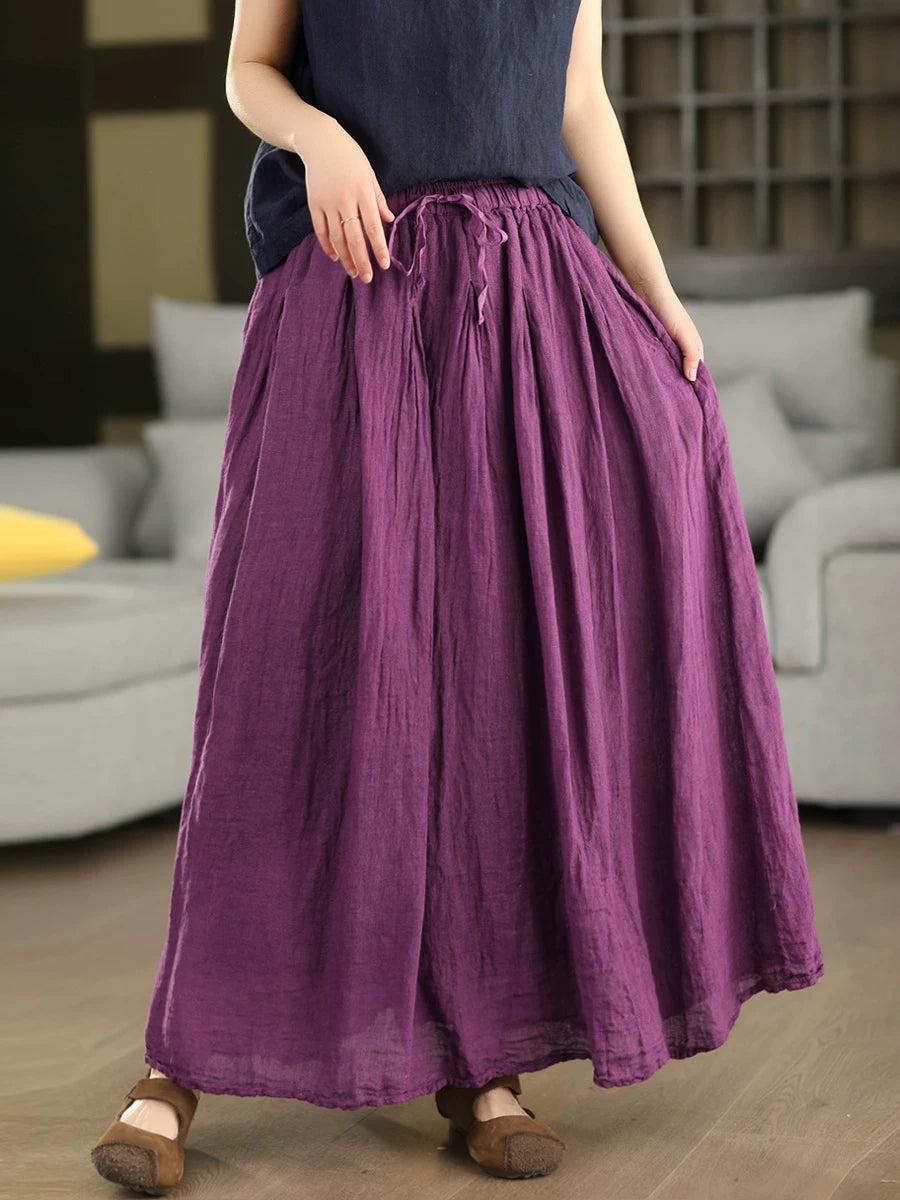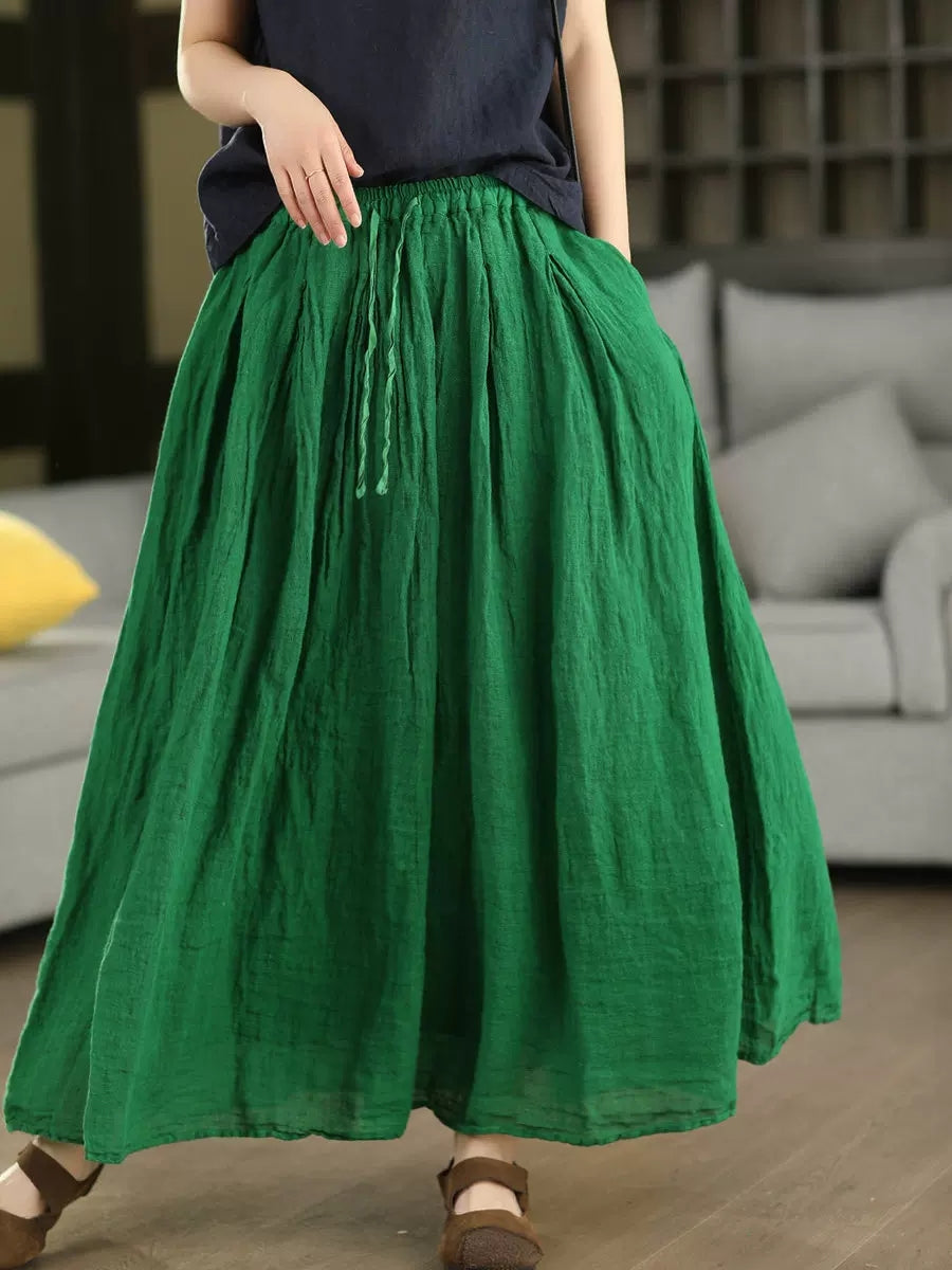 Dámská letní čistě barevná 100% lněná sukně