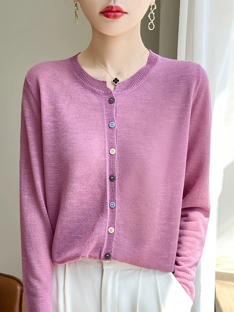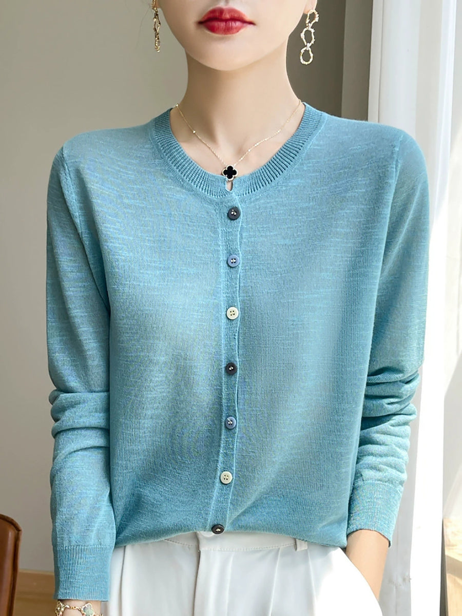 Dámská letní čistě barevná halenka s výstřihem do O-neck