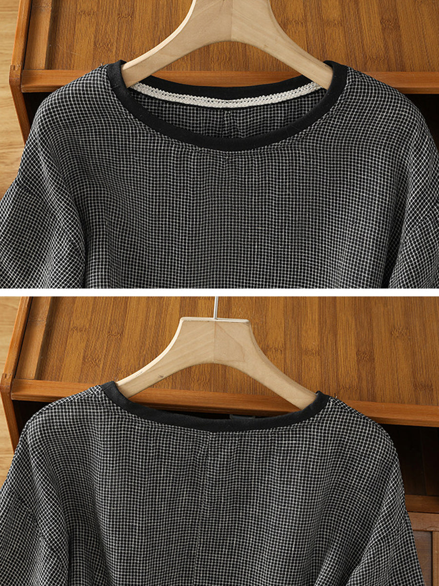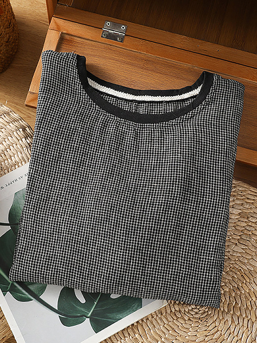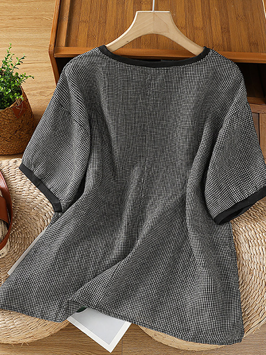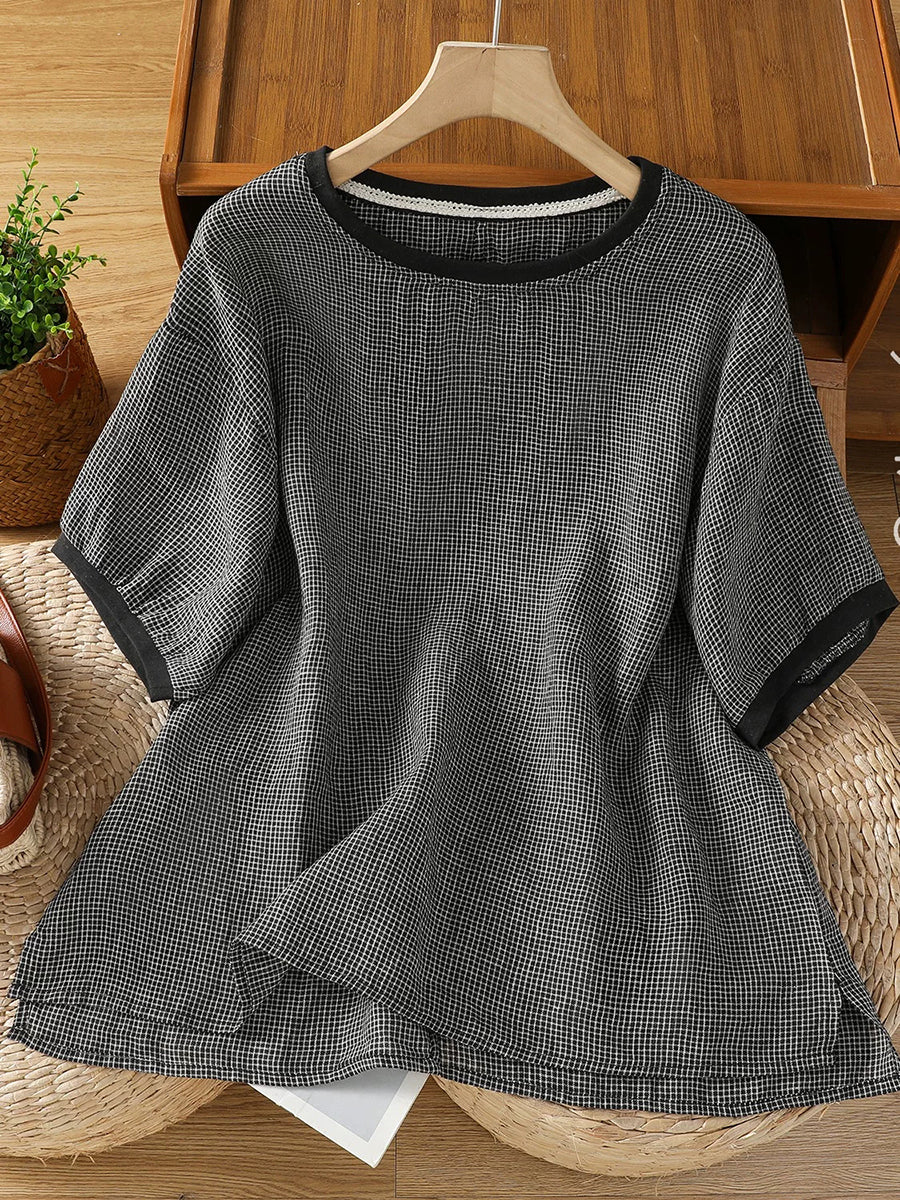 Dámské letní retro tričko s mřížkovaným výstřihem do O-neck